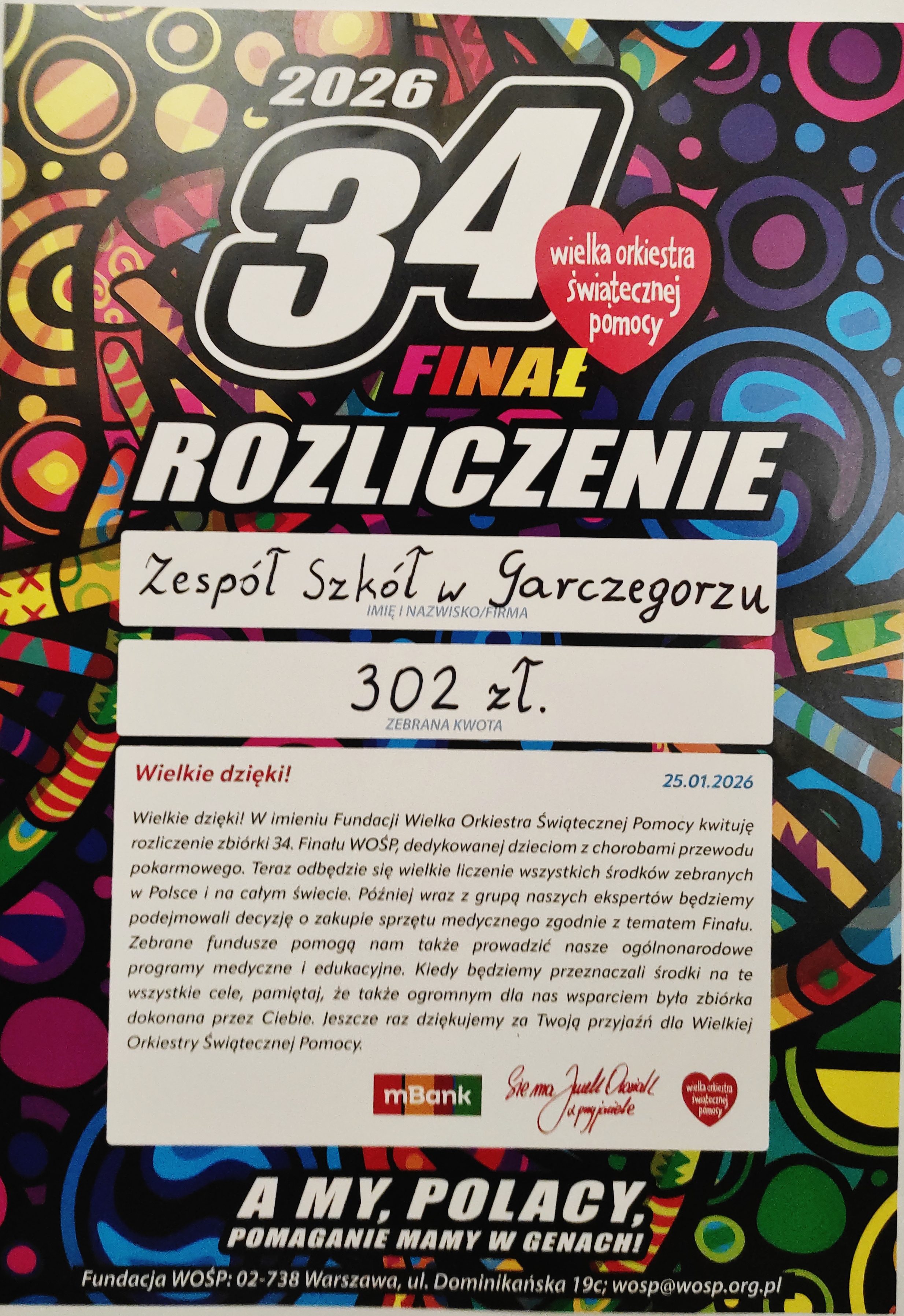 Dziękujemy wszystkim, którzy okazali serce podczas tegorocznego 34 FINAŁU WOŚP.