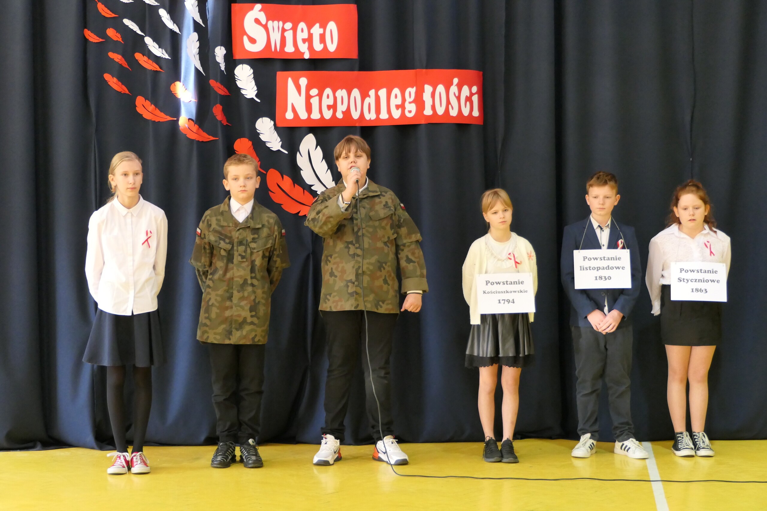 Dnia 10 listopada 2023 r. w naszej szkole odbył się uroczysty apel poświęcony 105. rocznicy odzyskania przez Polskę niepodległości. Klasa V pod kierunkiem p. Karoliny Naczk przygotowała prawdziwą lekcję historii i patriotyzmu. Całość dopełnił śpiew uczniów klasy 3 prowadzony przez p. Annę Polską. Akademia miała na celu przybliżenie wydarzeń poprzedzających datę 11 listopada 1918 roku oraz refleksję nad losem ludzi, którzy oddali swoje życie za Ojczyznę. Cieszymy się, że występ młodych wykonawców, którzy włożyli wiele wysiłku w przygotowania, spotkał się z dużym aplauzem zarówno ze strony ich kolegów, nauczycieli i zaproszonych gości. Na zakończenie Pani Dyrektor przeprowadziła test wiedzy historycznej, z którym uczniowie doskonale sobie poradzili poprawnie odpowiadając na zadawane im pytania.