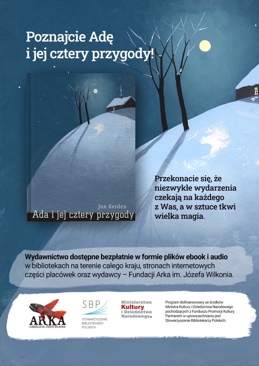 Opowiadanie „Ada i jej cztery przygody" Jana Kerdena jest przeznaczona dla dzieci w wieku szkolnym. To chwila gdy ich naturalna ciekawość i spontaniczna twórczość zderza się z zupełnie nowymi wymaganiami, rutyną dorosłego świata i wpływami komercji. Z myślą o tym powstała książka, a składające się na nią cztery opowieści mają być pomostem, dzięki któremu dziecięca wrażliwość i chęć kreacji odnajdzie się wśród nowych doznań i wyzwań. Ważną wartością jest też użycie klasycznego języka literackiego, bez współczesnych naleciałości – rzecz o którą coraz trudniej w literaturze i codzienności.