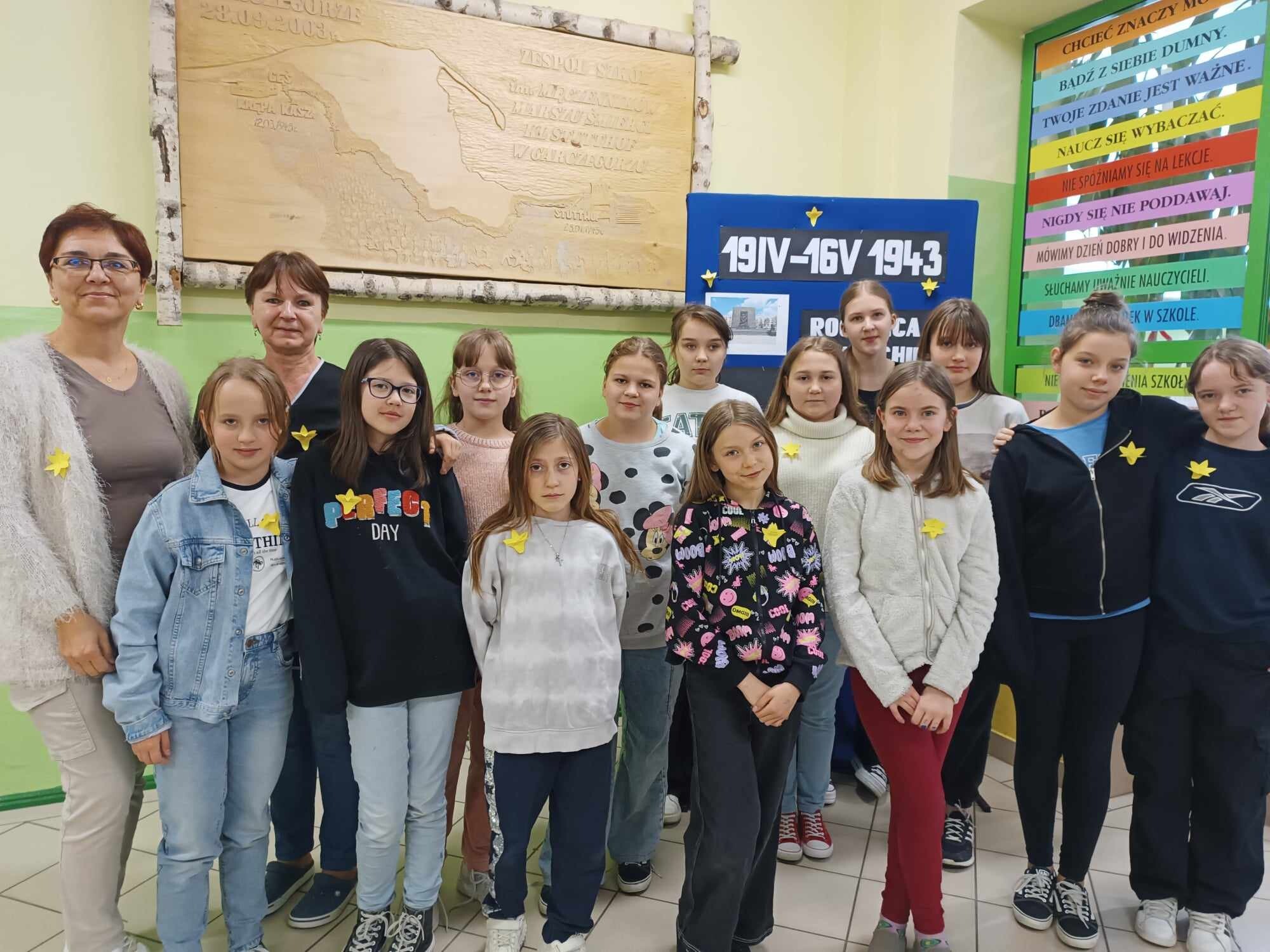 Dnia 19 kwietnia br. nasza szkoła dołączyła do akcji społeczno-edukacyjnej Żonkile, upamiętniającej rocznicę wybuchu powstania w getcie warszawskim. W organizację akcji najbardziej zaangażowały się uczennice klasy VII: Wiktoria Bemowska, Marcjanna Itrych a także Małgorzata Krotoszyńska. Wiktoria i Marcysia przygotowane żonkile wręczały uczniom i pracownikom.
