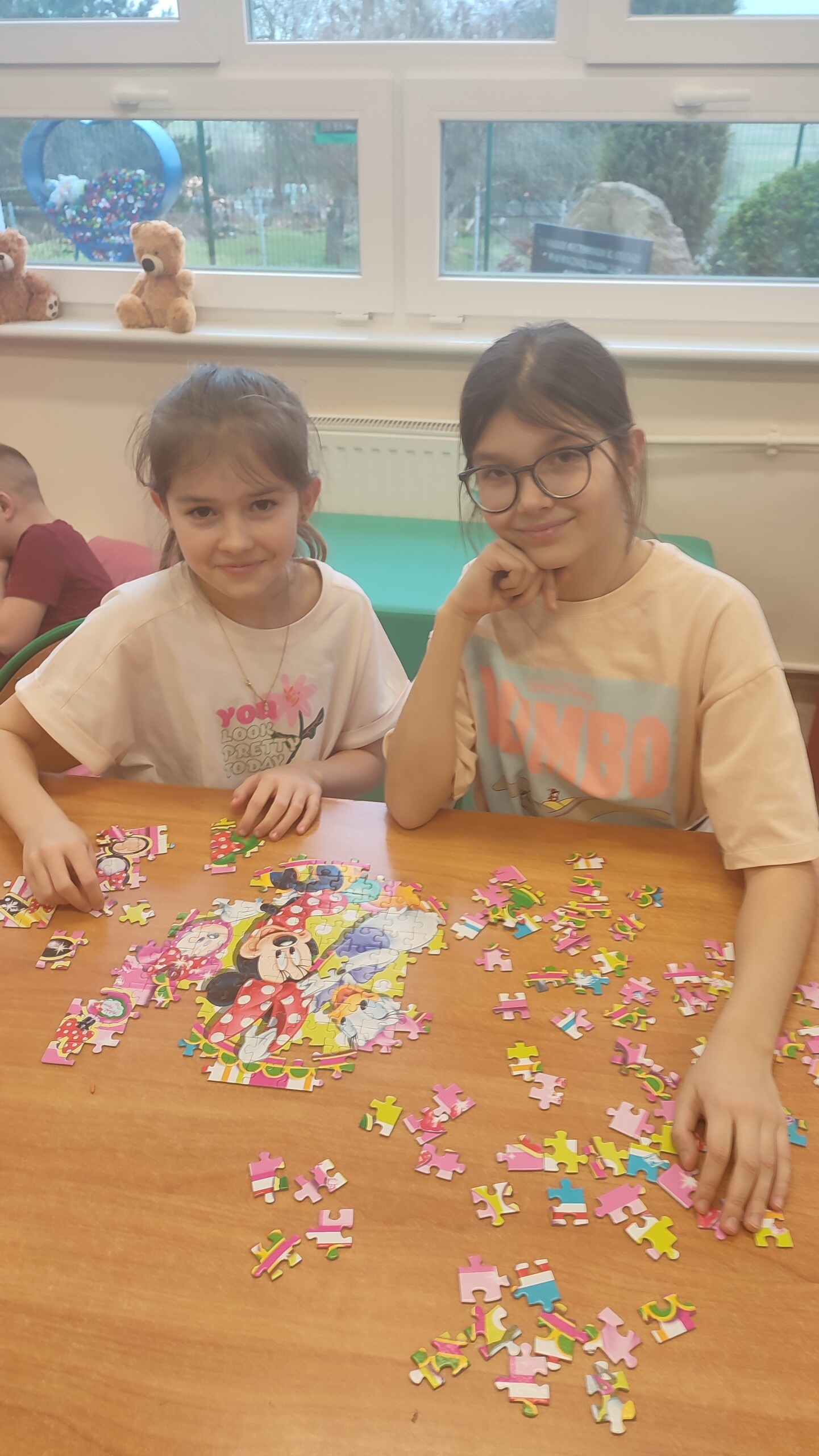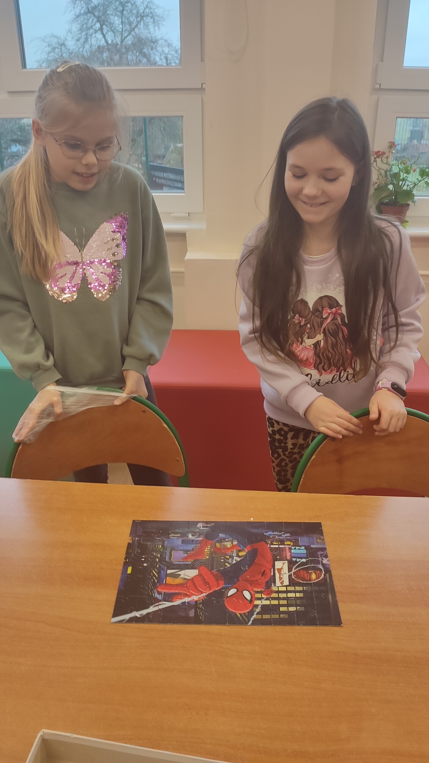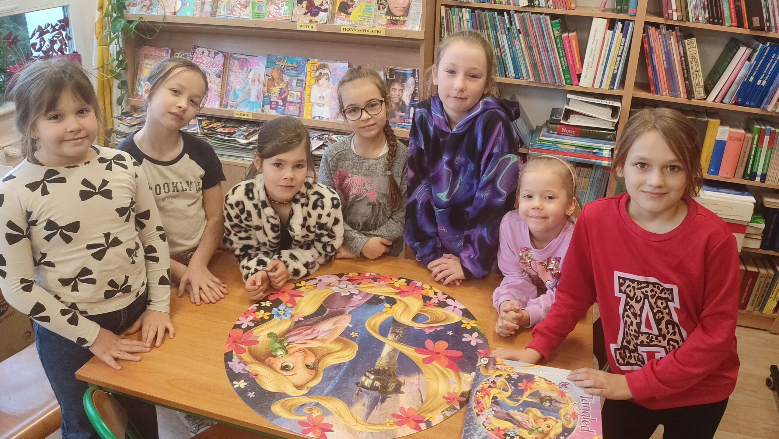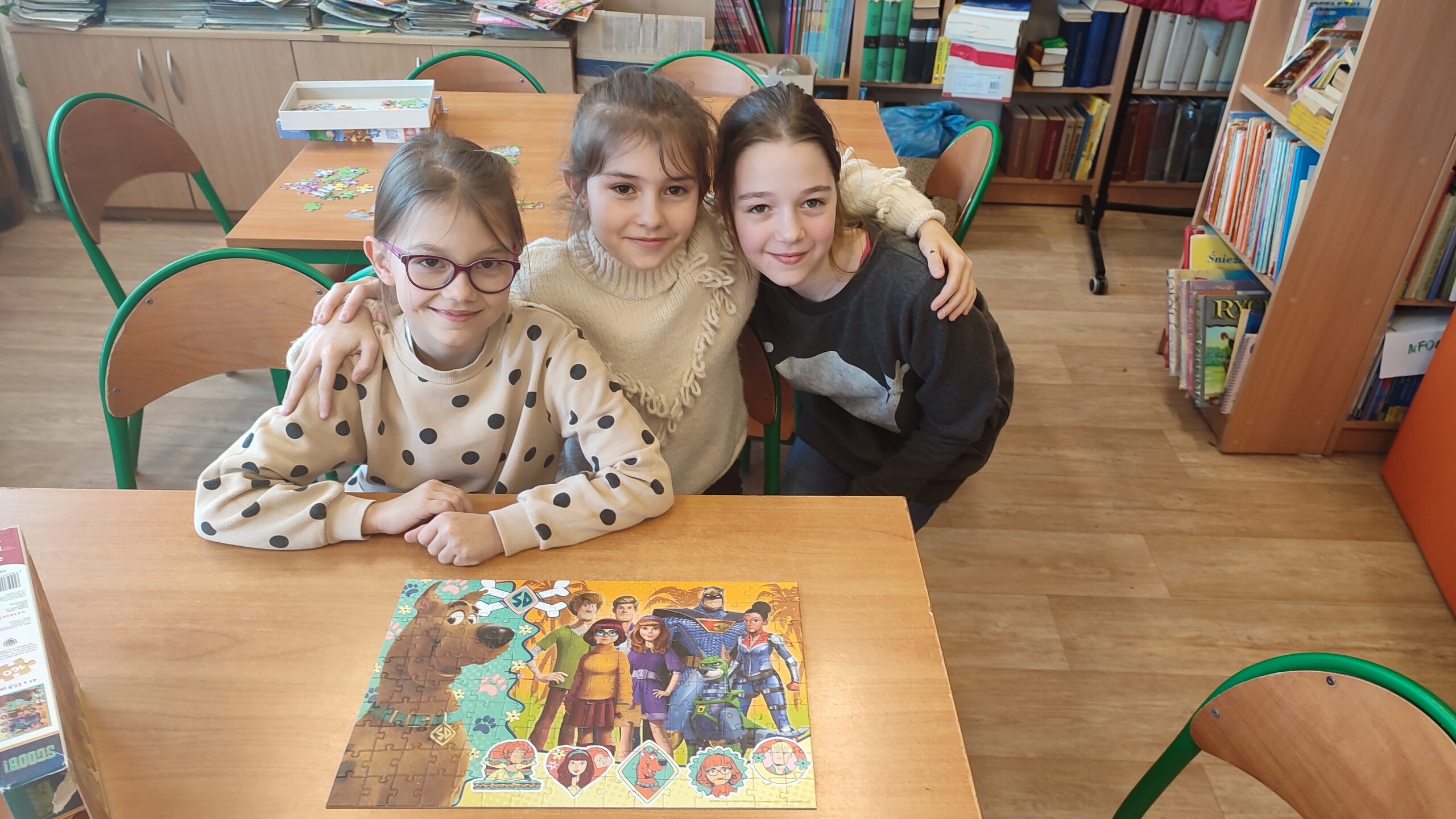 W czasie przerw uczniowie naszej szkoły się nie nudzą. W bibliotece wyciszają się i rozwijają swoją pamięć układając puzzle.
