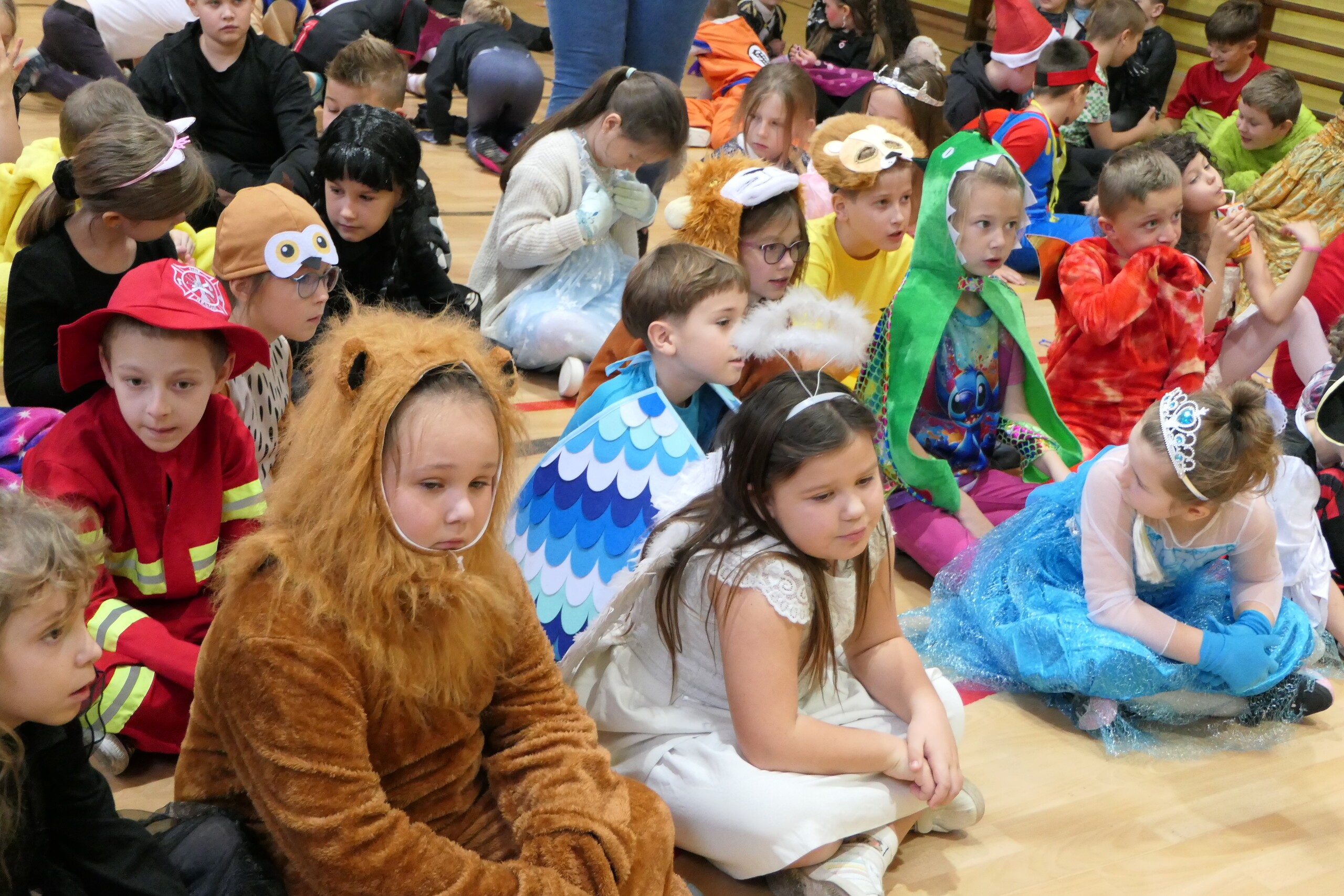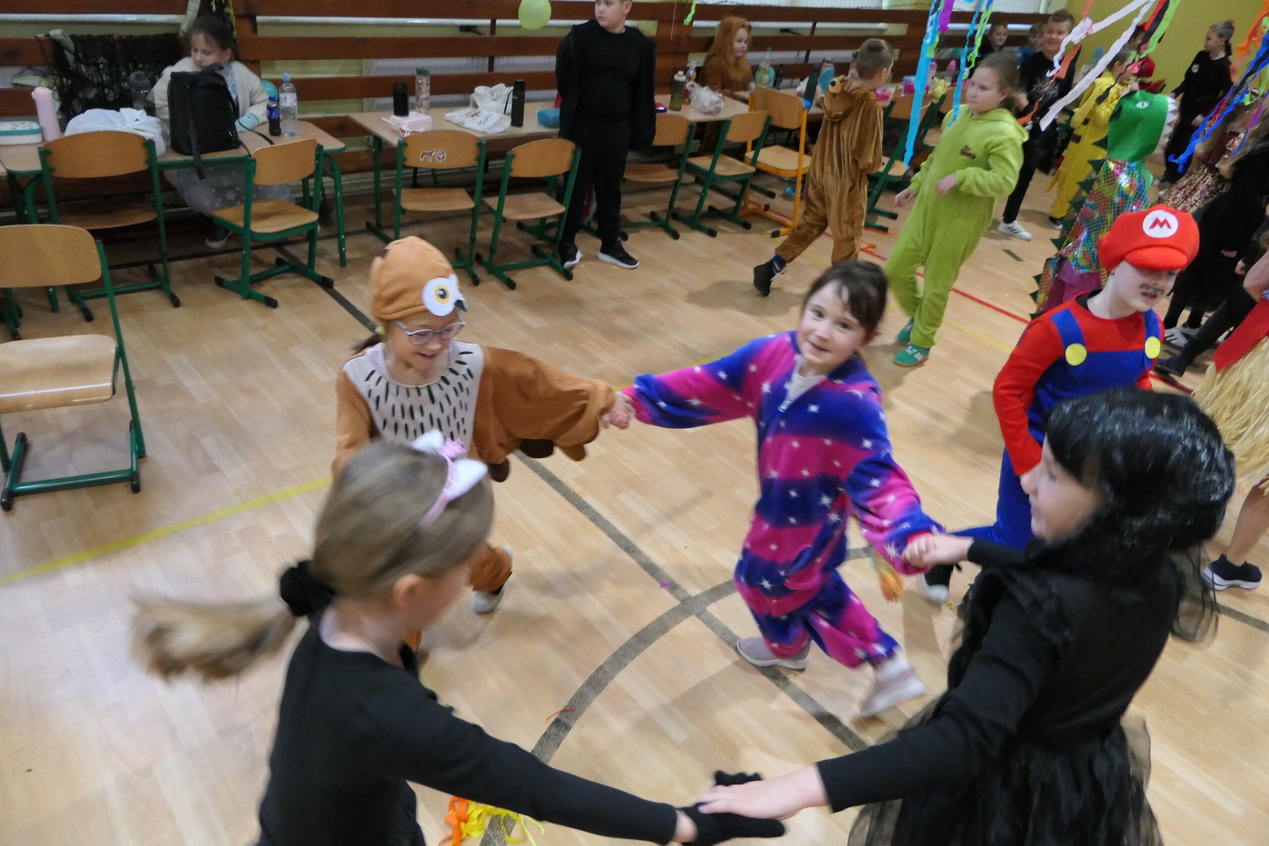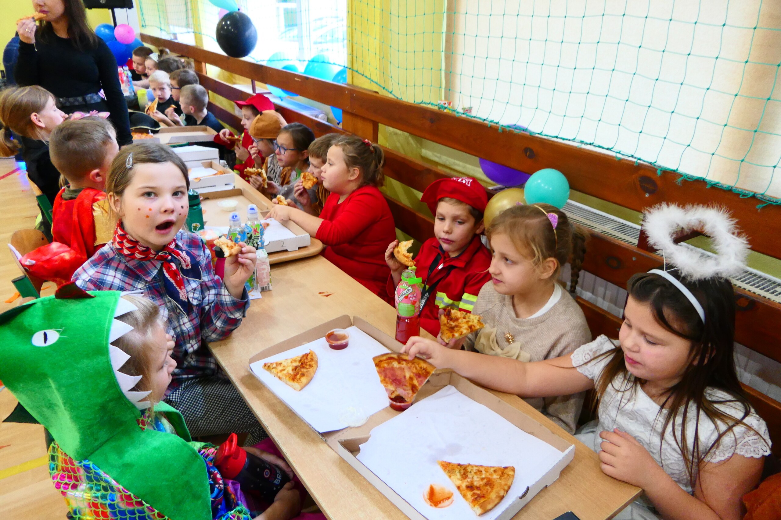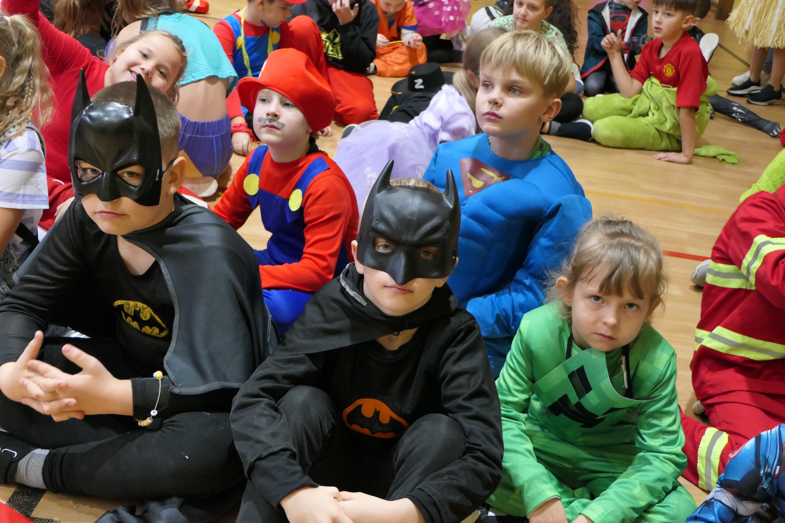 Dzień Postaci z Bajek w klasach 0–3. Dziś klasy 0–3 wspaniale bawiły się wspólnie, świętując Dzień Postaci z Bajek. Dzieci przyszły przebrane za swoich ulubionych bohaterów, a szkołę wypełniła kolorowa, baśniowa atmosfera. Odbył się także konkurs piosenki bajkowej, podczas którego uczniowie zaprezentowali swoje talenty wokalne i muzyczne. Występy były pełne radości, kreatywności i pozytywnej energii. Po wspólnej zabawie wszyscy zasiedli do stołów, aby zjeść pyszną pizzę, która była idealnym zakończeniem tego wyjątkowego dnia. To był magiczny i pełen uśmiechów czas!