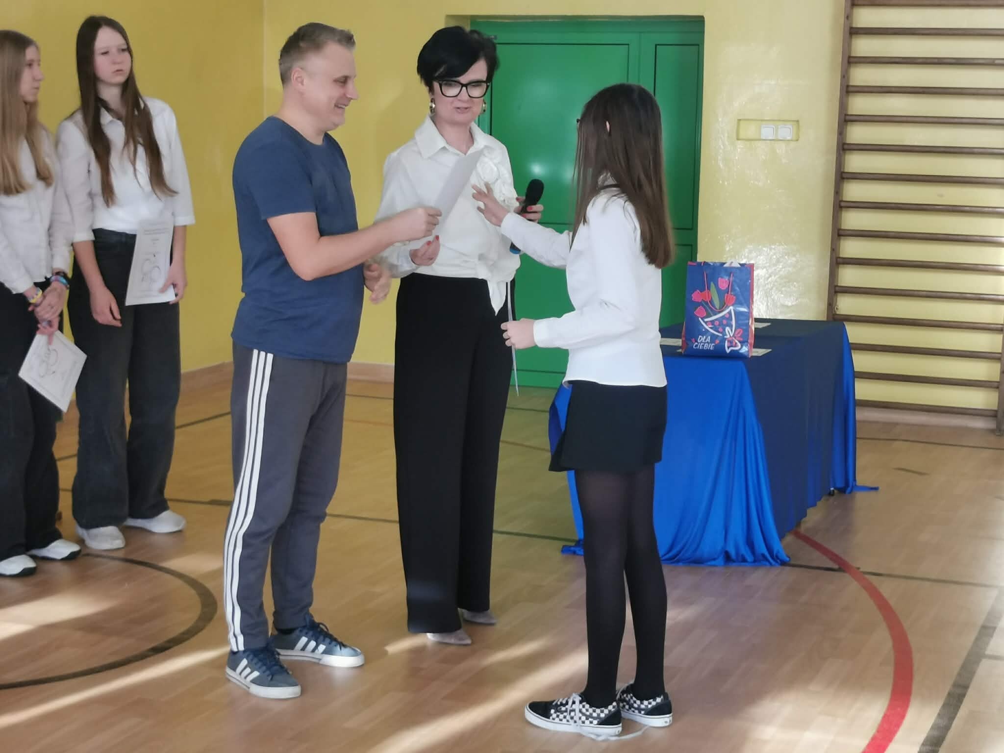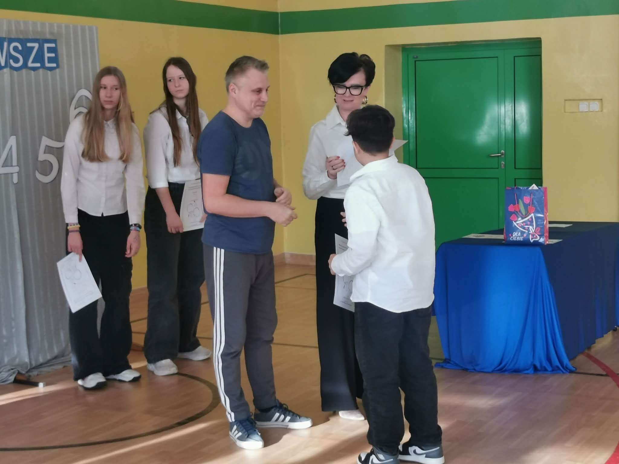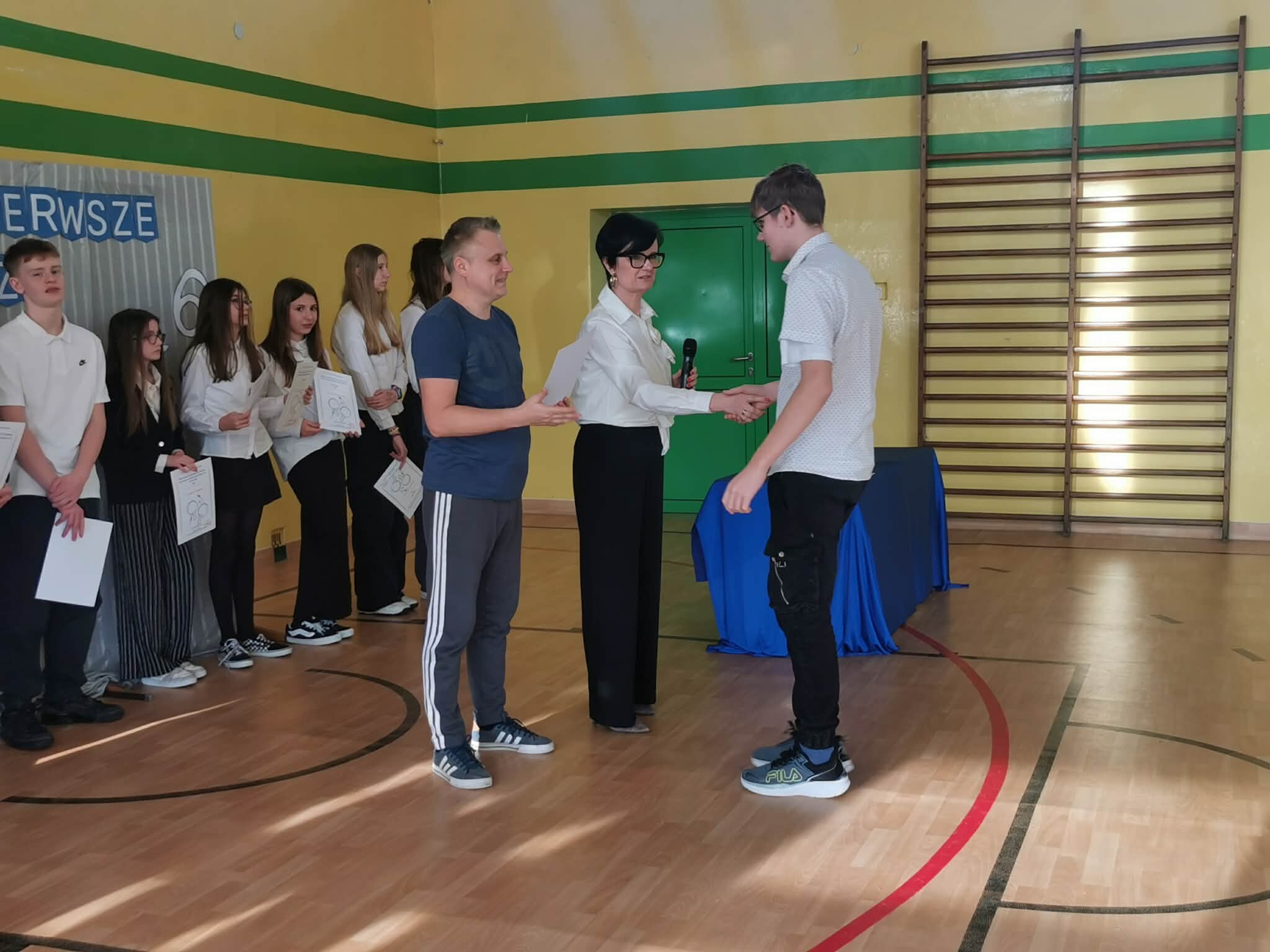 Pan Michał Górski zaprezentował najlepszych sportowców szkoły, którzy zostali nagrodzeni dyplomami.