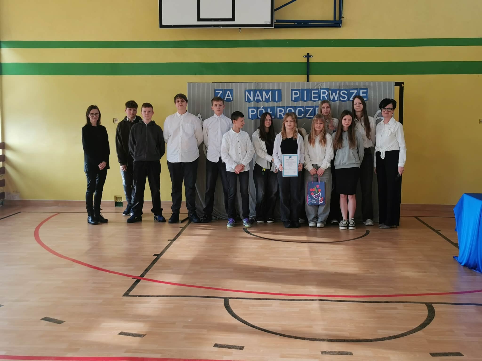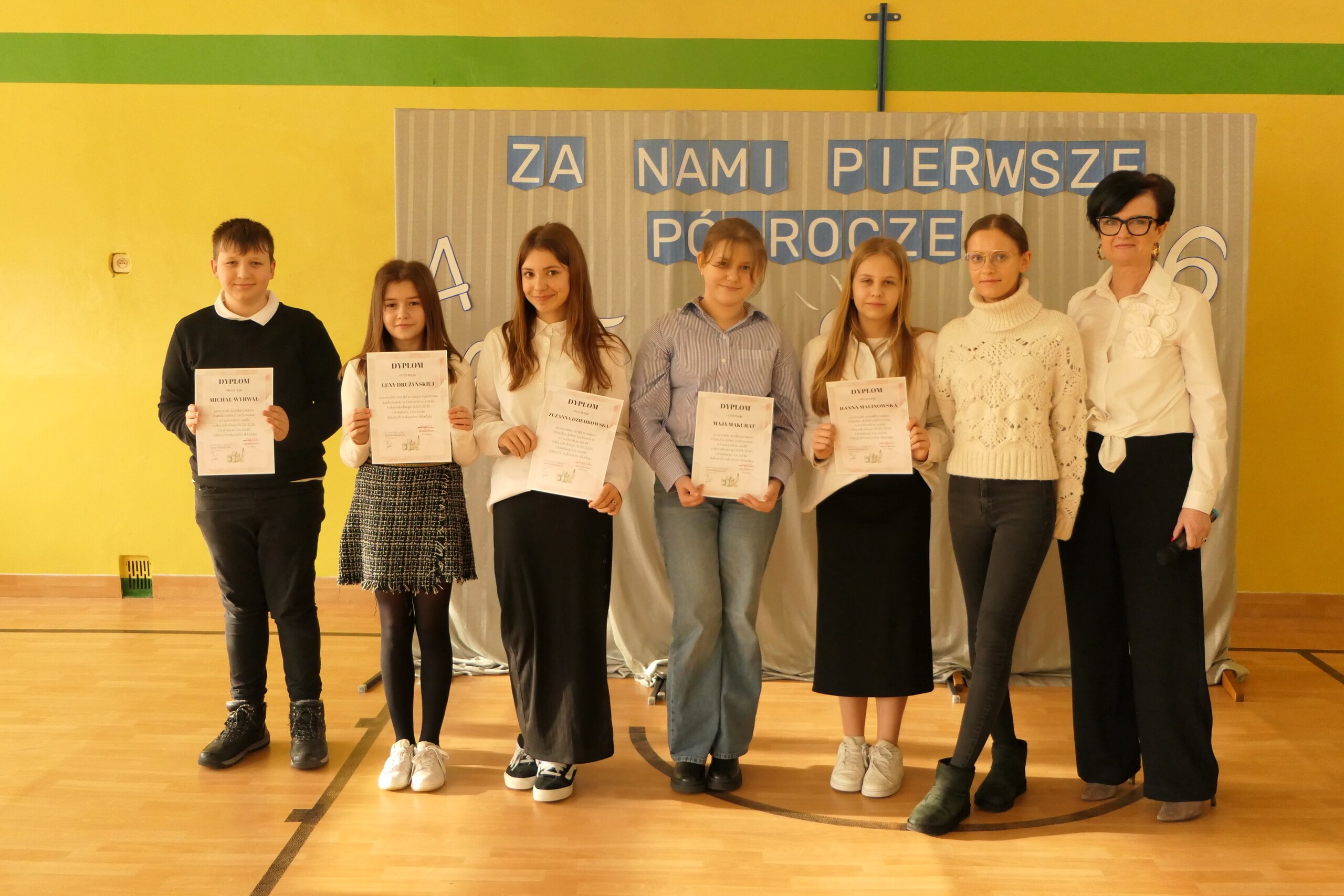 Dnia 15 stycznia odbył się apel podsumowujący I półrocze roku szkolnego 2025/2026 dla klas IV–VIII. Pani dyrektor Alicja Guźniczak pogratulowała uczniom osiągniętych wyników w nauce, sporcie, wysokiej frekwencji oraz zaangażowania w życie szkoły.