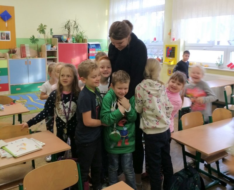 Klasę I odwiedziła koleżanka ze starszej klasy, która przeczytała dzieciom bajkę na temat dokuczania i przezywania innych. Odbyła się również pogadanka z psychologiem szkolnym na temat usłyszanej historii. Wszystkie dzieci były zaangażowane i chętnie słuchały bajki czytanej przez uczennicę. Celem spotkania było kształtowanie nawyku słuchania i opowiadania, nauka zachowań prospołecznych oraz uwrażliwienie na skutki dokuczania i przezywania innych.