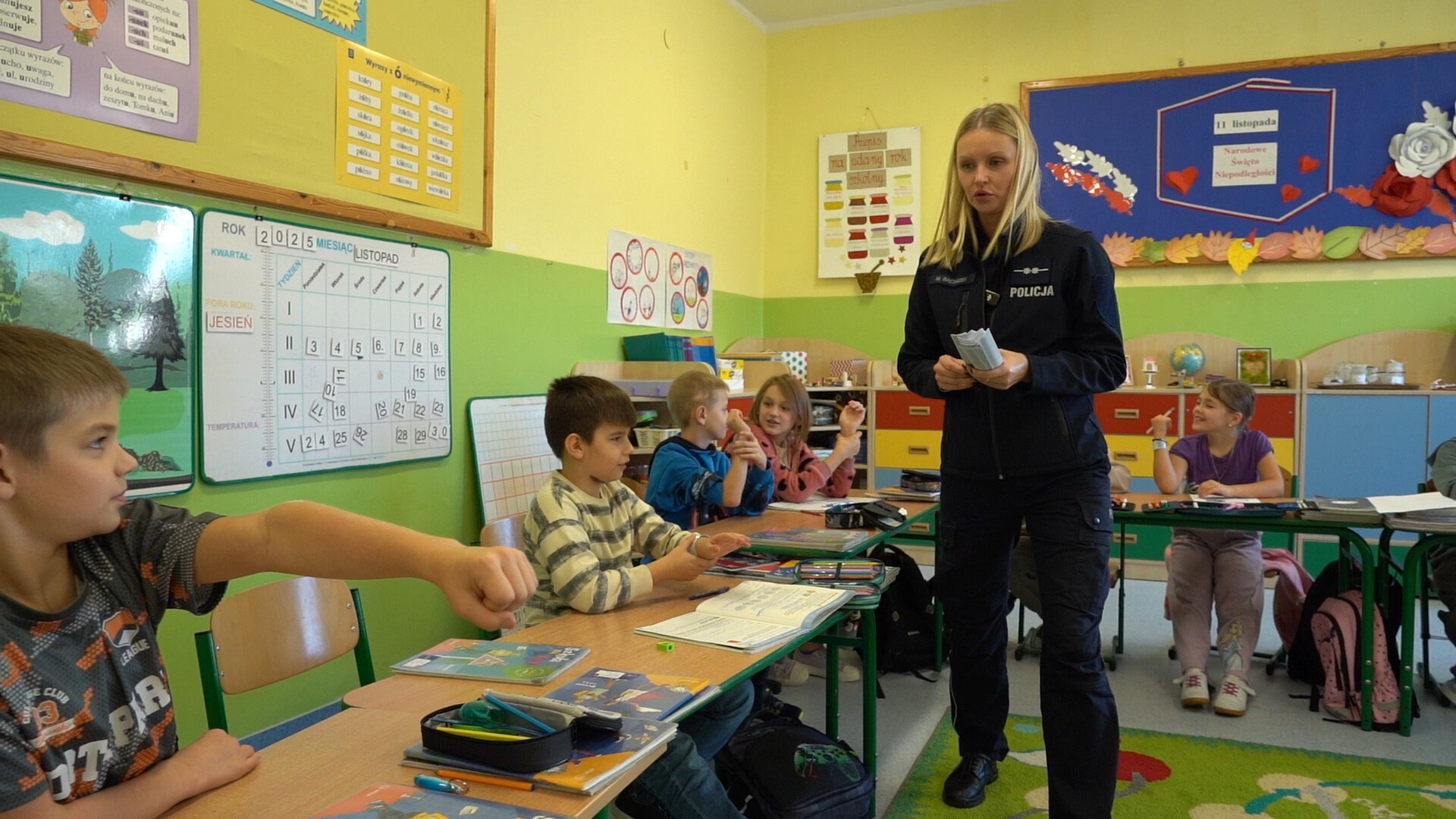 Podczas zajęć uczniowie dowiedzieli się, dlaczego noszenie elementów odblaskowych jest tak ważne, szczególnie w okresie jesienno-zimowym. Asp. Marta Bąciaszek omówiła zasady prawidłowego wyposażenia się w odblaski, wskazała miejsca ich najlepszego umieszczenia oraz wyjaśniła, w jaki sposób zwiększają one widoczność i bezpieczeństwo pieszego. Dzieci miały również możliwość zadawania pytań oraz uczestniczenia w krótkich pokazach praktycznych.