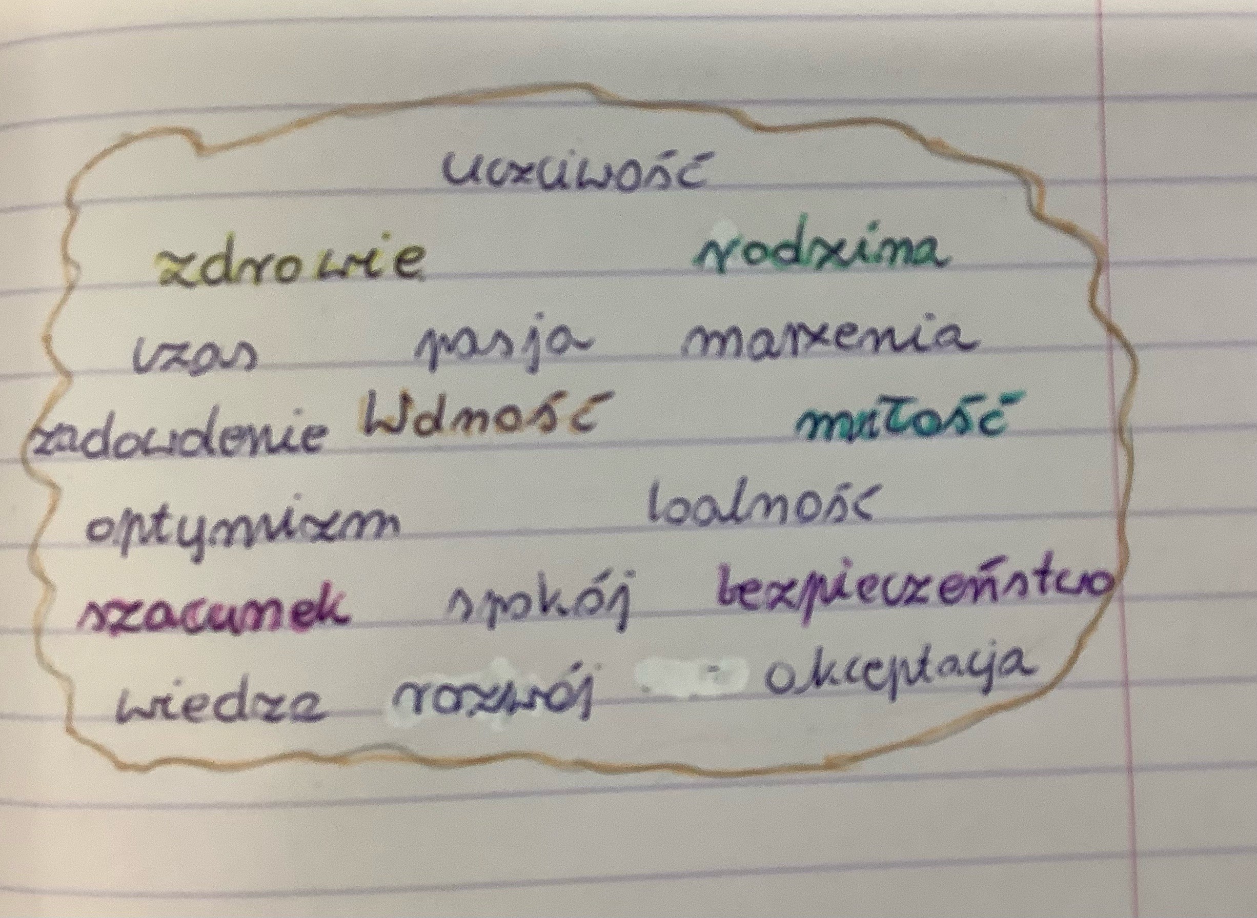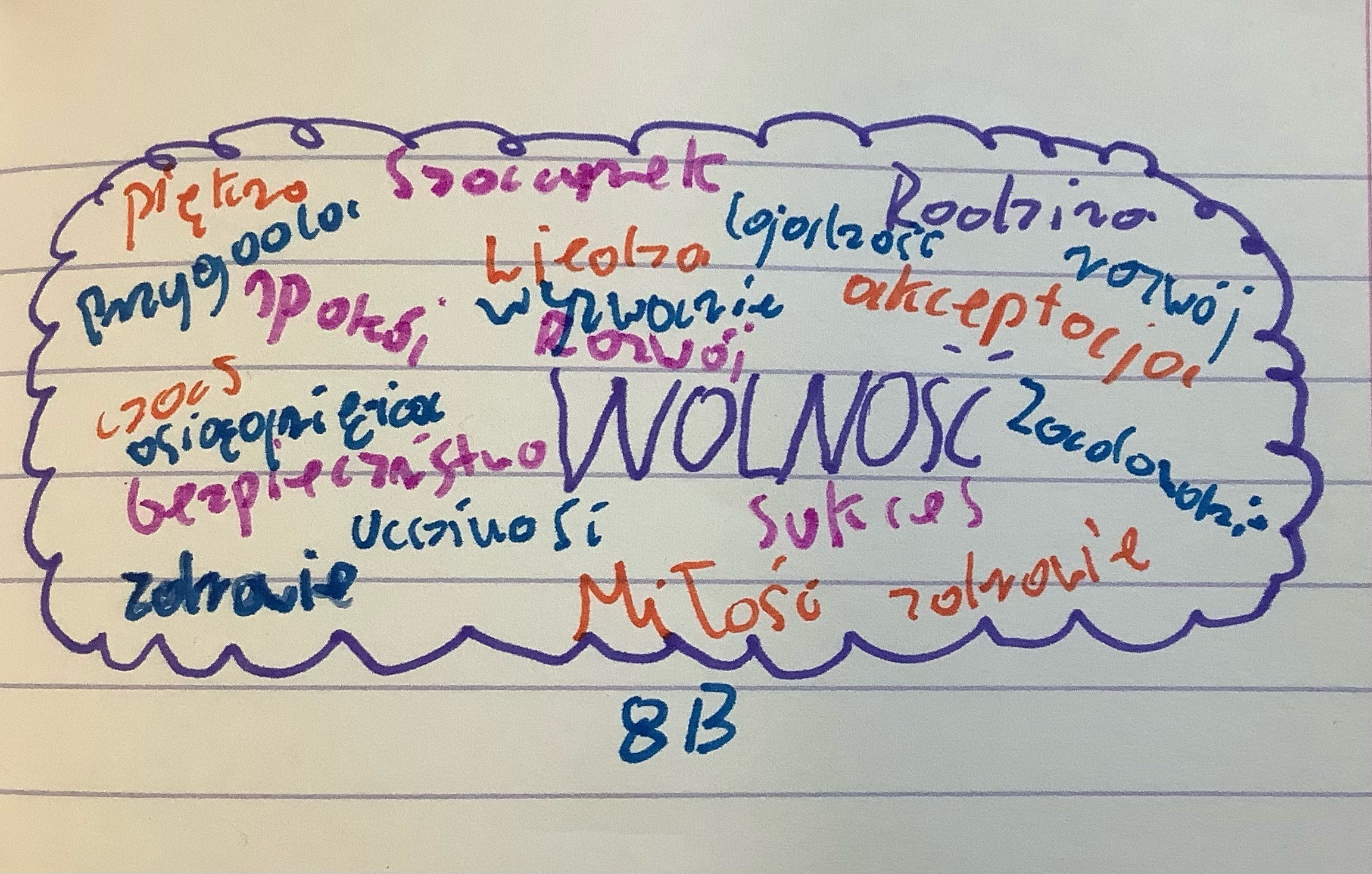 Klasy 8 pracowały ostatnio na języku polskim nad chmurą wartości. Uczniowie zastanawiali się co jest dla nich ważne, co potrzebne, jakie wartości są dla nich najistotniejsze. Mamy bardzo świadomą młodzież. Oto wyniki niektórych prac.