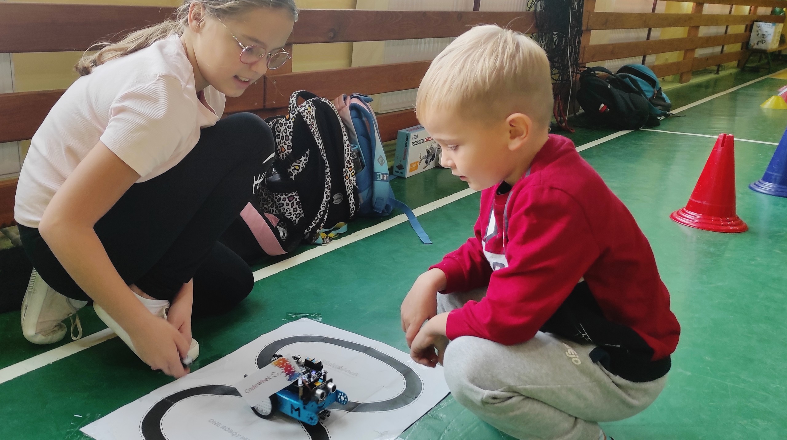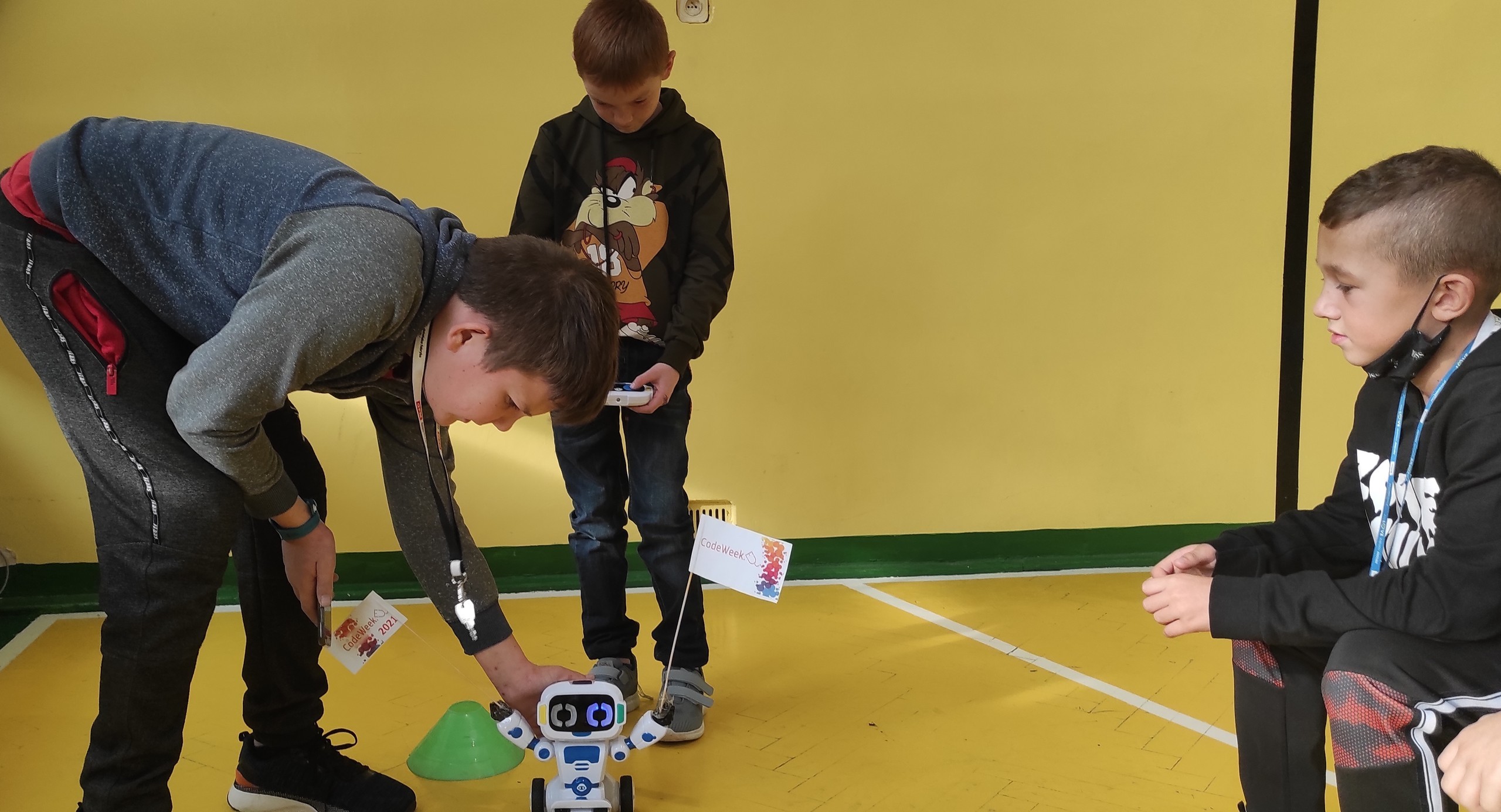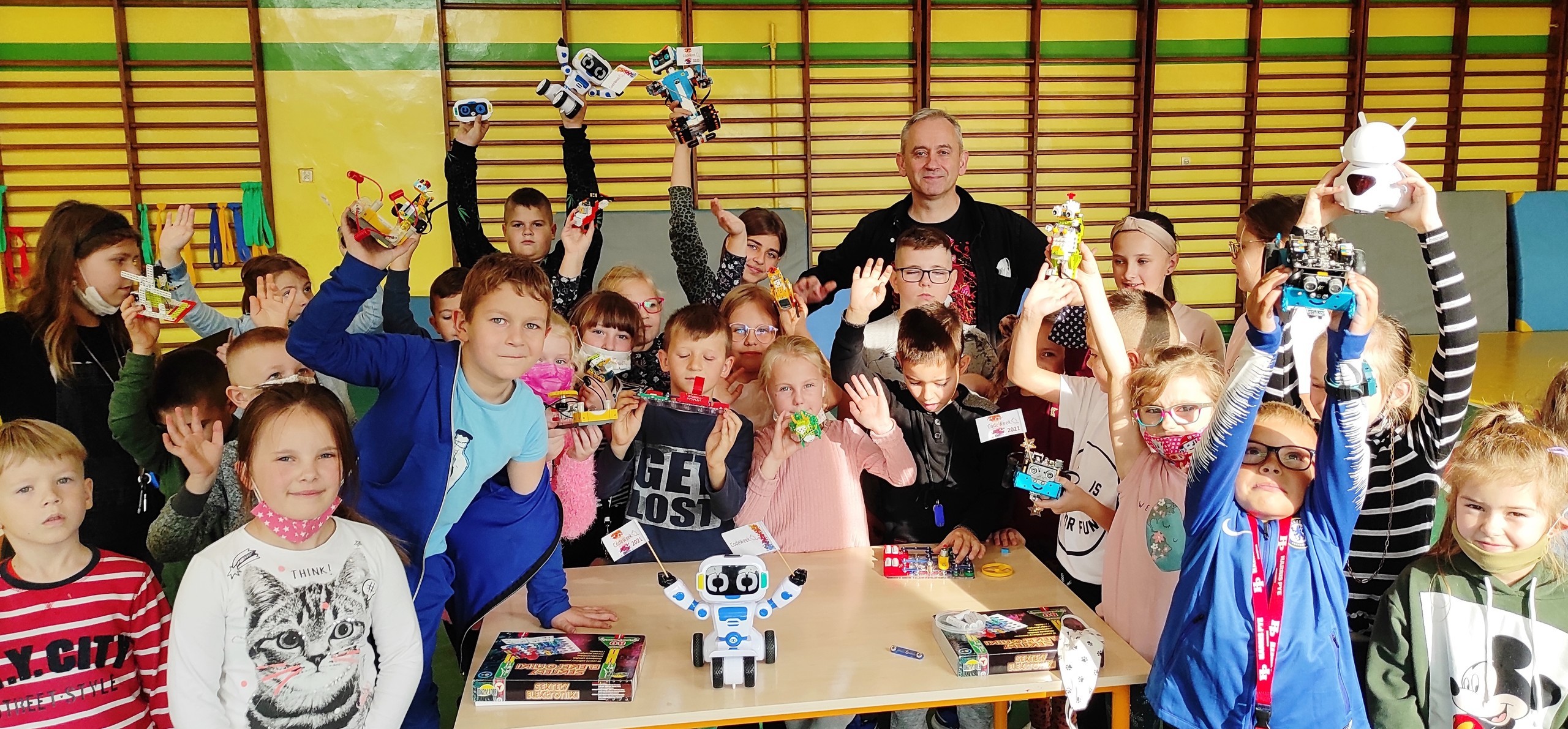 Dnia 20.10.21r. naszą szkołę odwiedziły ROBOTY. Pokazy dla najmłodszych uczniów zostały przygotowane z okazji międzynarodowego tygodnia kodowania - CODE WEEK 2021.