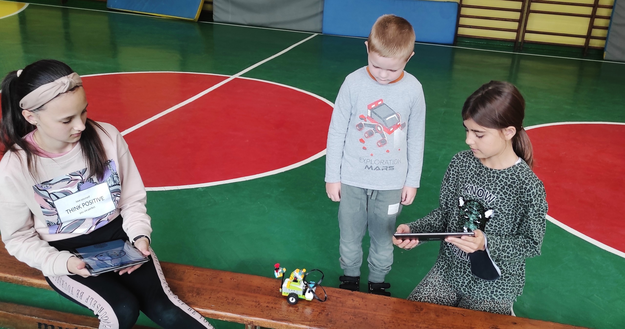 Starsi uczniowie zaprezentowali w działaniu roboty różnego typu (mBot, Photon Edu, Blue-Bot, Robotis DreamII, Tipster, Lego Boost) podczas pokazów i zabaw w klasach 0-3.