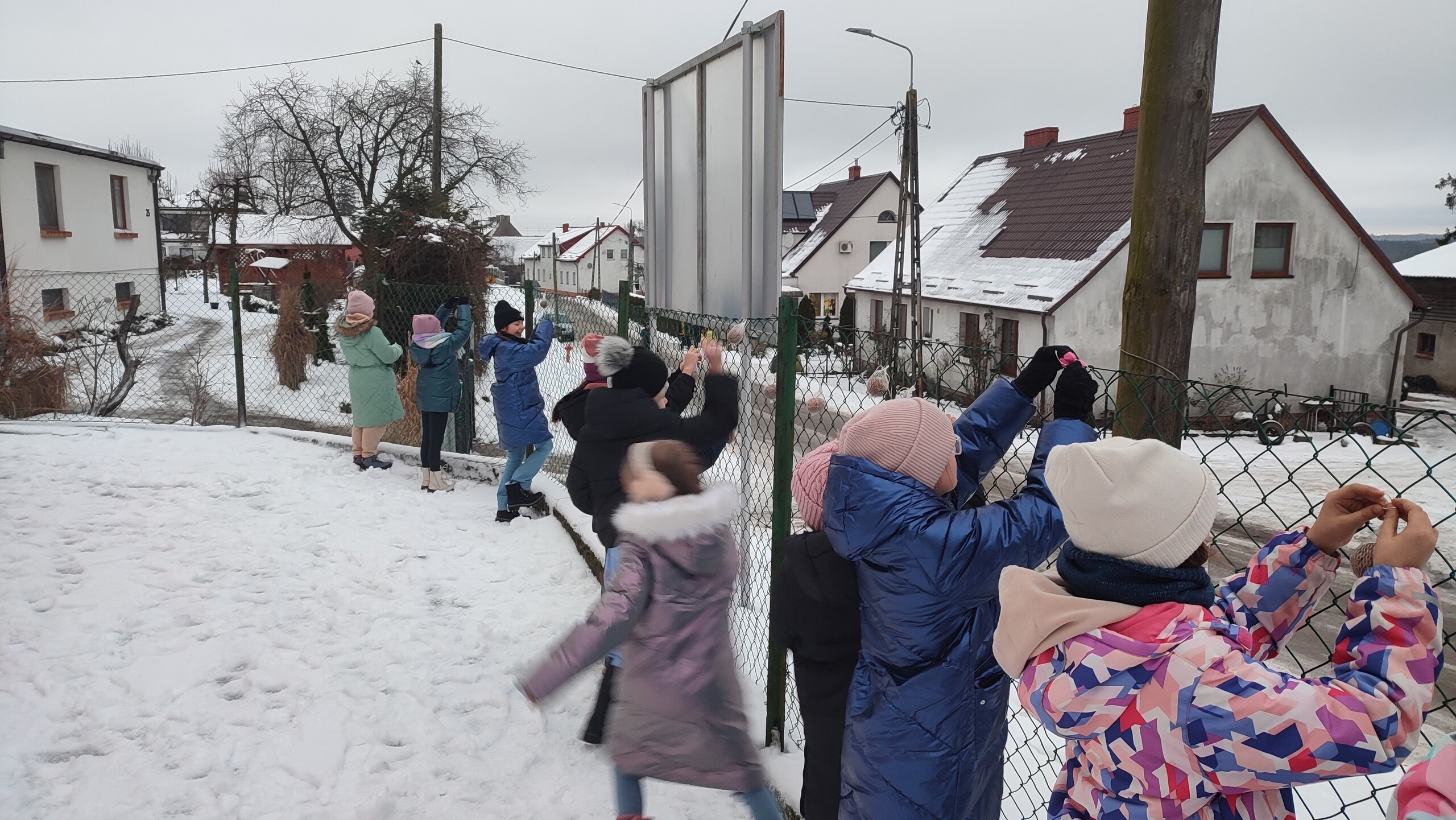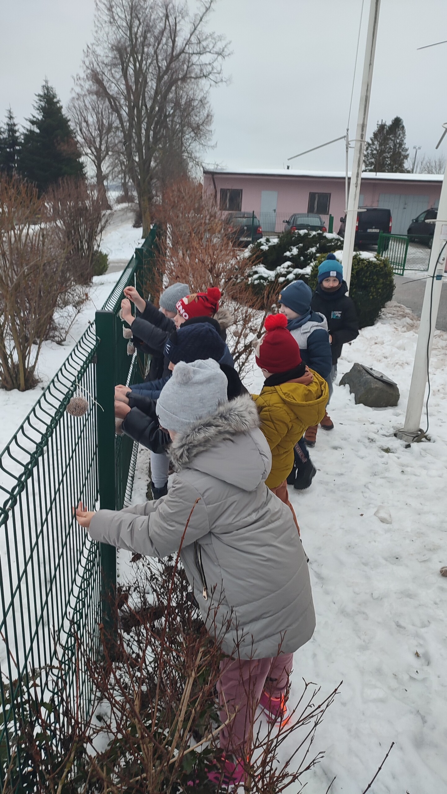 W czasie zimy wiele osób chętnie dokarmia ptaki. Niestety, nie zawsze robimy to umiejętnie i zamiast pomagać ptakom, niechcący im szkodzimy. Zanim rozpocznie się dokarmianie ptaków, warto dowiedzieć się co nieco na ten temat, zwłaszcza gdy angażuje się do tego dzieci. Uczniowie klas: Ia, II i III uczęszczający na zajęcia języka kaszubskiego dowiedzieli się jakiego rodzaju pokarmu potrzebują poszczególne ptaki, poznali zasady ich dokarmiania. Wykonali zawieszki do kulek z ziarnami. Tak przygotowane smakołyki zawiesiły na krzaczkach i na siatce przed szkołą. Teraz pozostaje już tylko obserwować, kto będzie odwiedzać tę ptasią stołówkę.