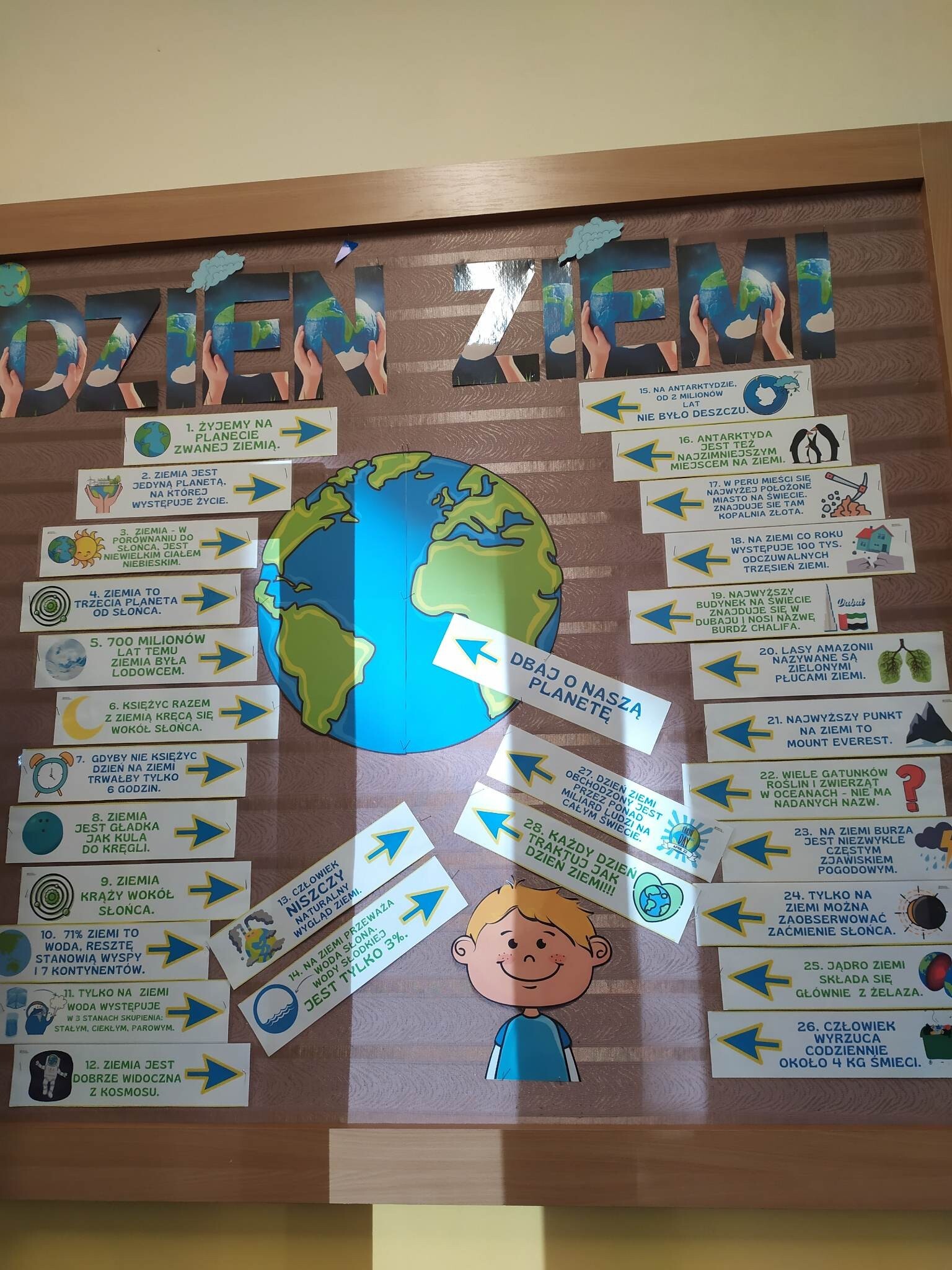22 kwietnia setki milionów ludzi na całym świecie będzie świętować Dzień Ziemi. Obecnie jest to największe ekologiczne święto świata, organizowane w 192 krajach - od Singapuru do Rzymu… od Alaski po Australię. Dzień Ziemi to doskonała okazja do organizowania różnego rodzaju wydarzeń promujących ekologię. Jest to również szansa na poprawę świadomości dotyczącej efektów niszczenia środowiska naturalnego, do których zaliczyć można zanieczyszczenie powietrza, wody, czy globalne ocieplenie. Nasza szkoła również aktywnie zaangażowała się w obchody tego święta. Dzieci robiły plakaty, rozwiązywały quizy, zwiększając tym samym wiedzę ekologiczną.
