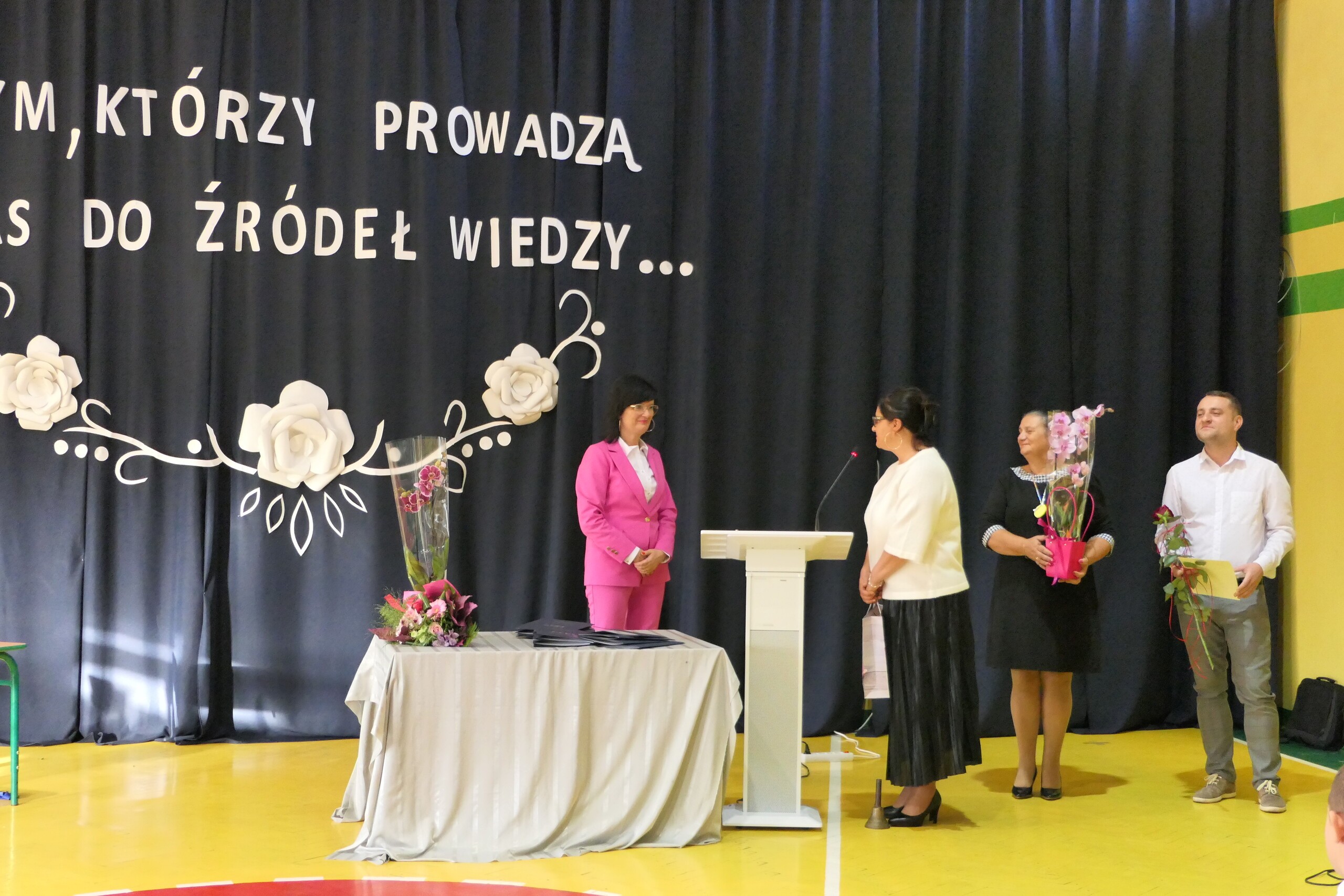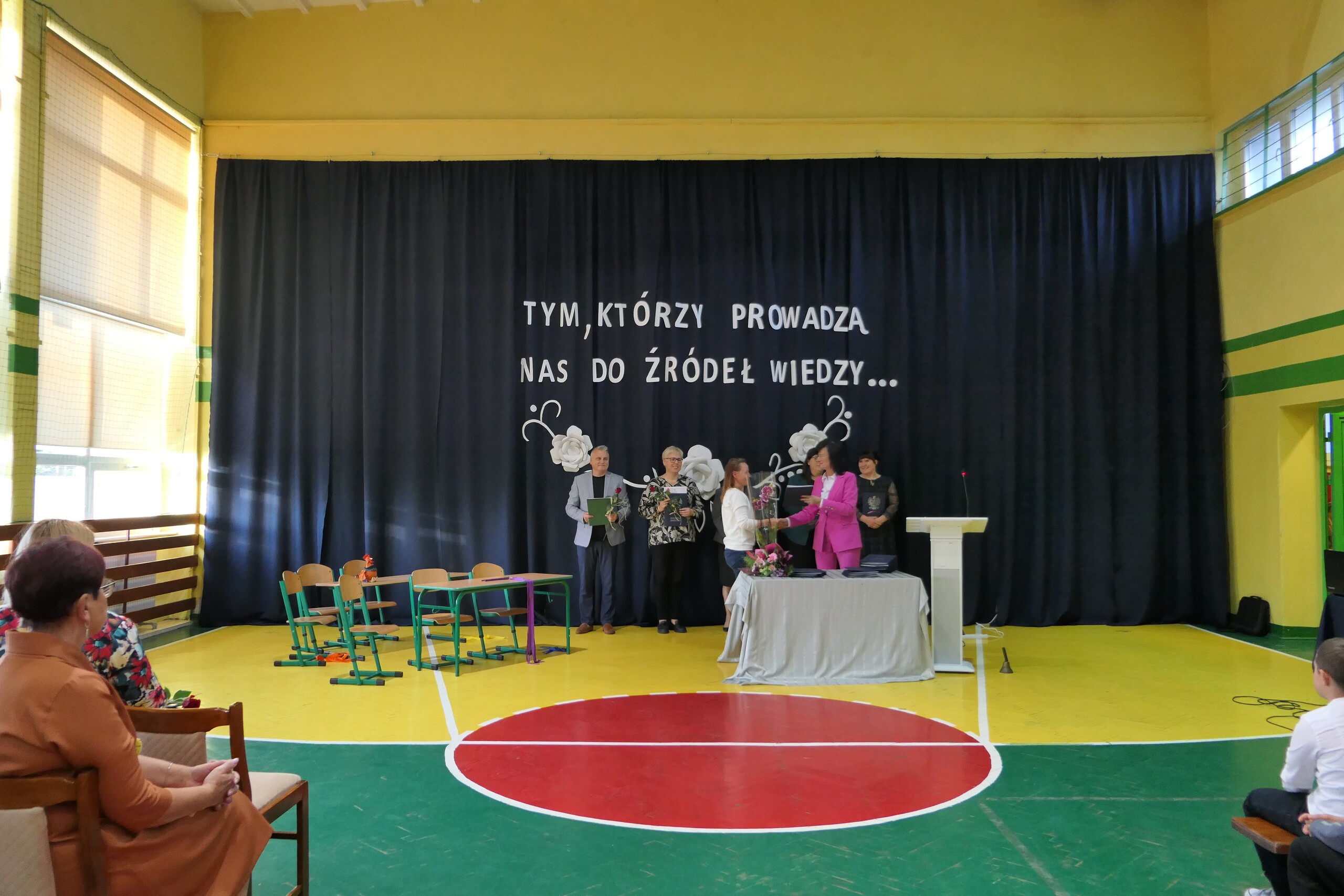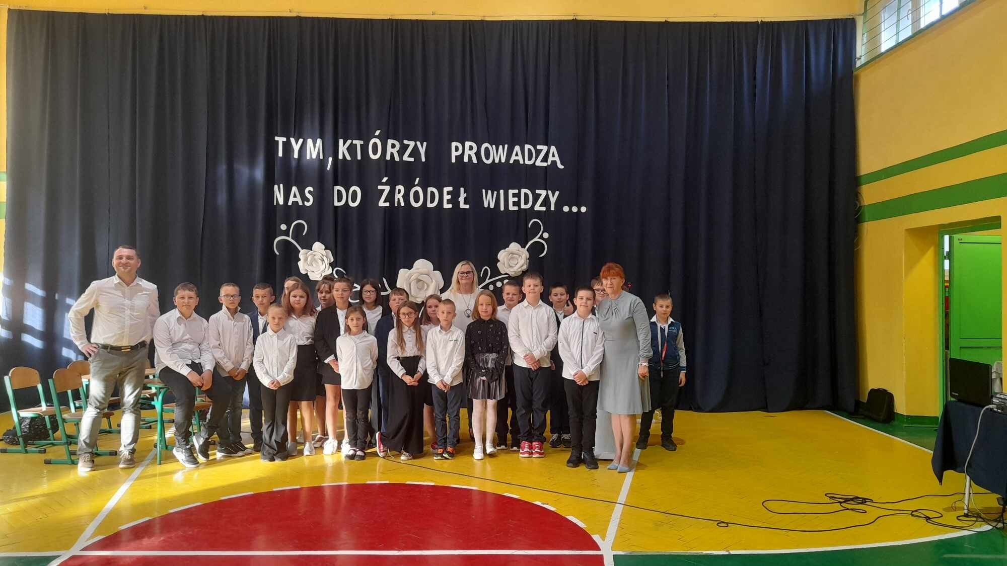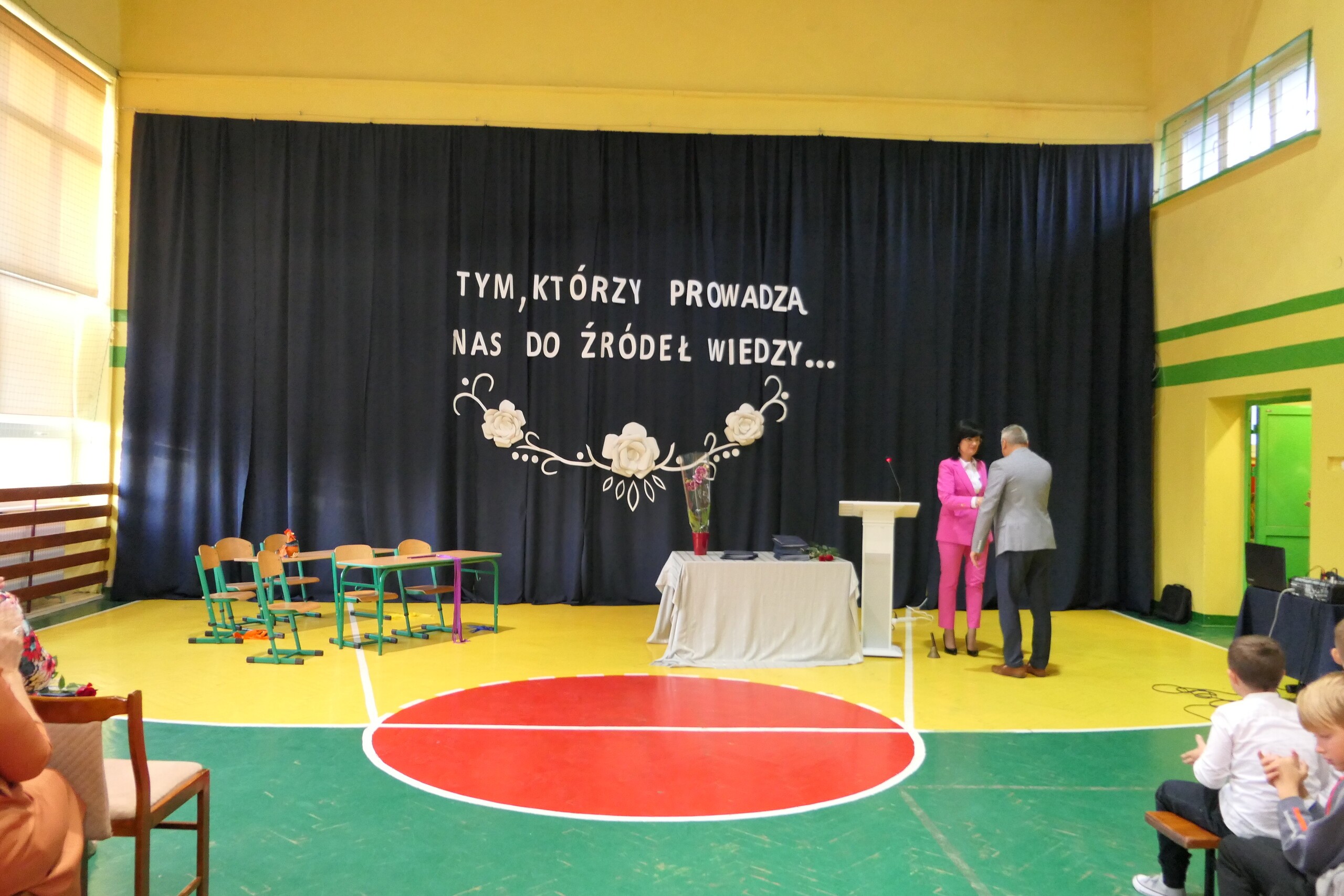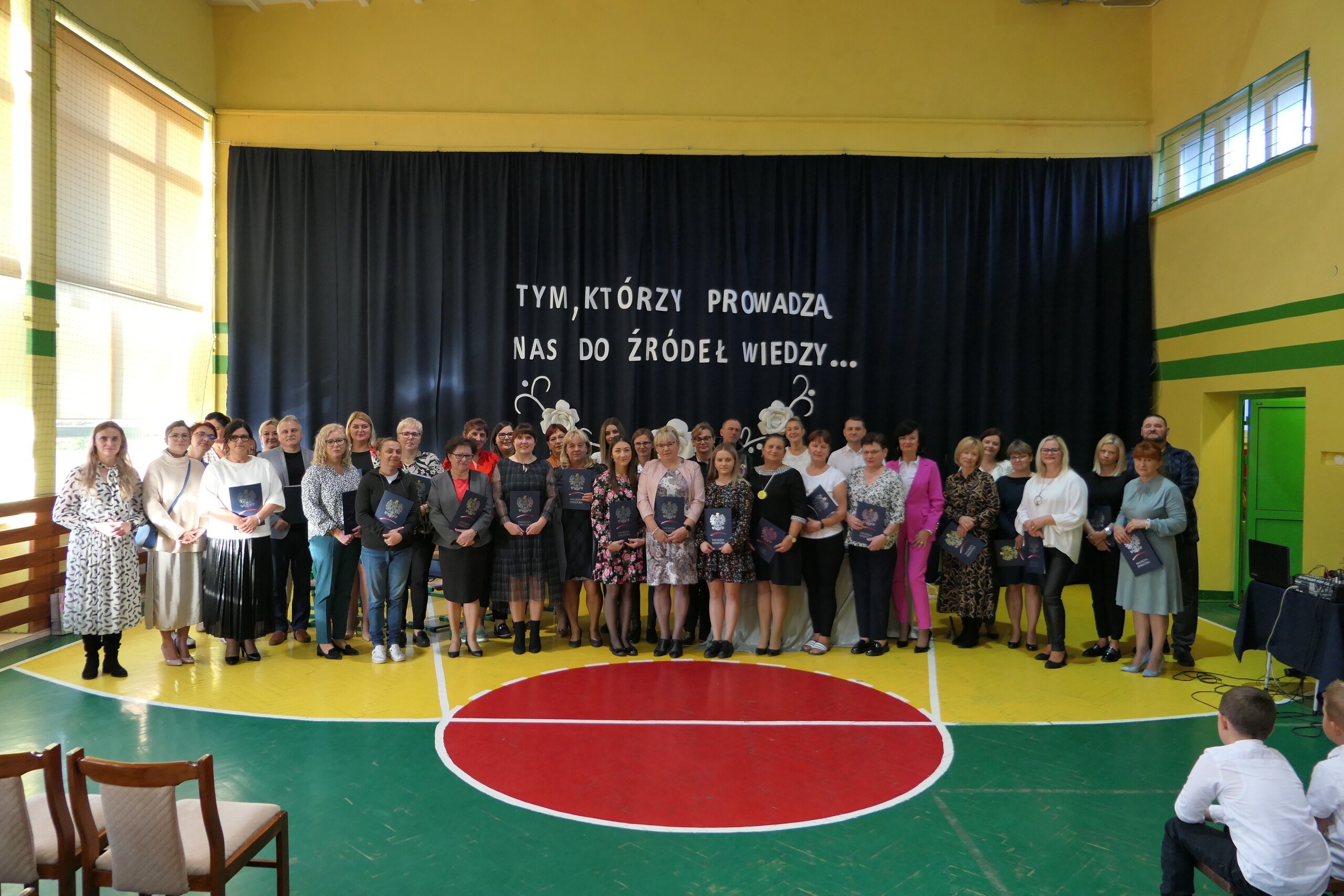 13 października w naszej szkole świętowaliśmy wspólnie Dzień Edukacji Narodowej. Z tej okazji cała społeczność szkoły wzięła udział w uroczystej akademii. Gościliśmy u nas Zastępcę Wójta Gminy Nowa Wieś Lęborska panią Monikę Włusek, przedstawicieli rady Rodziców panie Annę Gibuła i Angelikę Oborzyńską. W części oficjalnej głos zabrała Pani Dyrektor Alicja Guźniczak, która złożyła serdeczne życzenia wszystkim pracownikom szkoły, podziękowała za trud wkładany w kształcenie i wychowanie młodych ludzi. Wszyscy pracownicy szkoły zostali uhonorowani z okazji dzisiejszego święta. Była to także okazja do świętowania jubileuszów : 35. lecia pracy p. dyr. Alicji Guźniczak, 30. lecia pracy p. Marii Cieszkowskiej oraz 20. lecia pracy p. Michała Górskiego. Oprócz tego p. Michał Górski otrzymał nagrodę Wójta Gminy Nowa Wieś Lęborska za szczególne osiągnięcia.