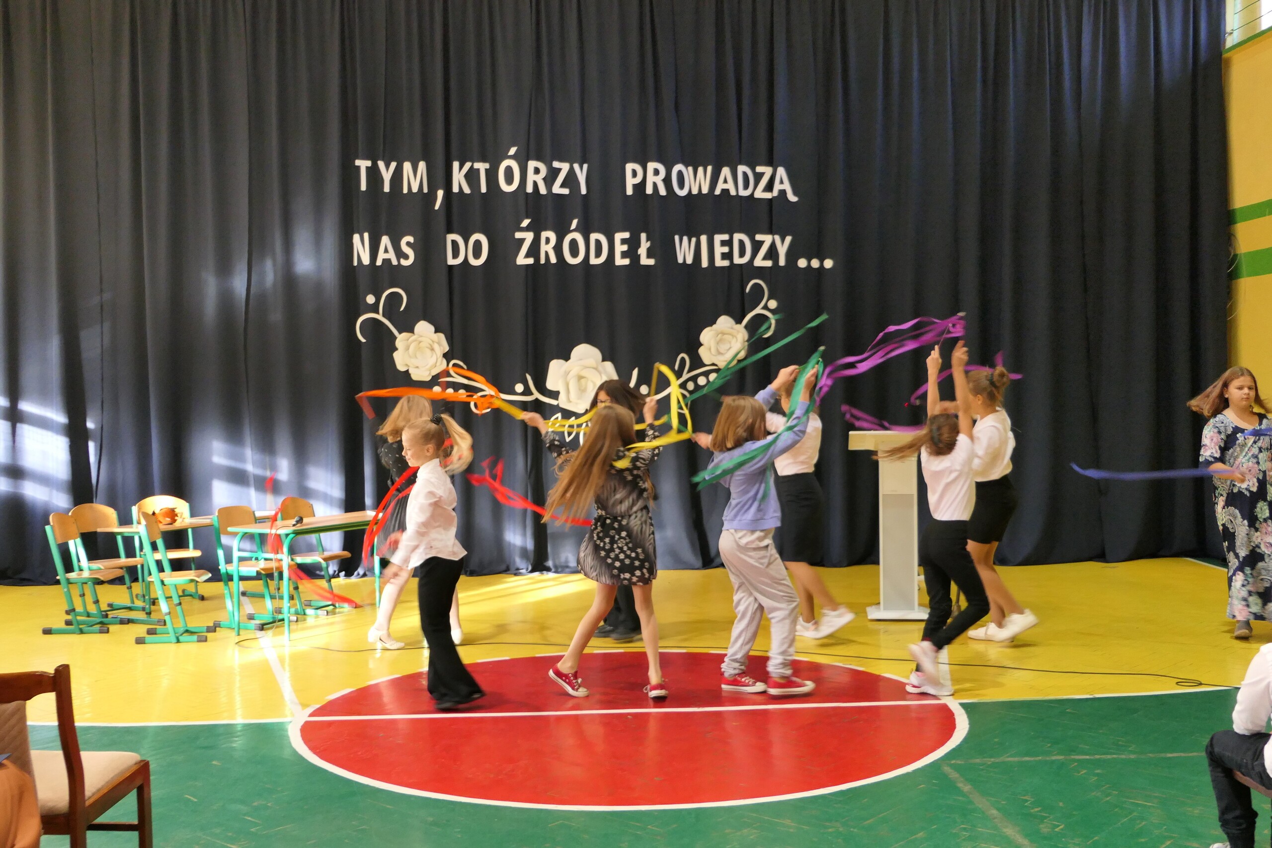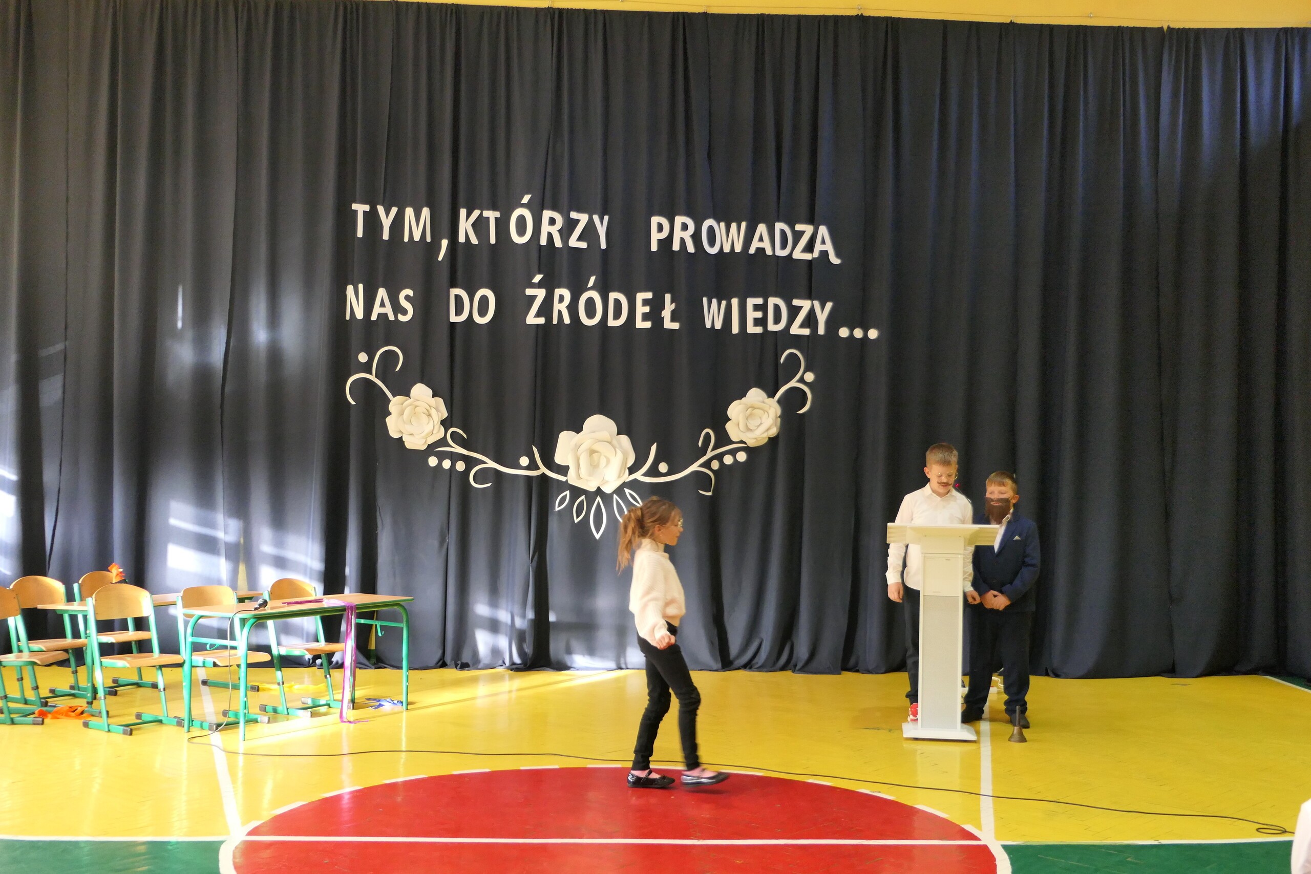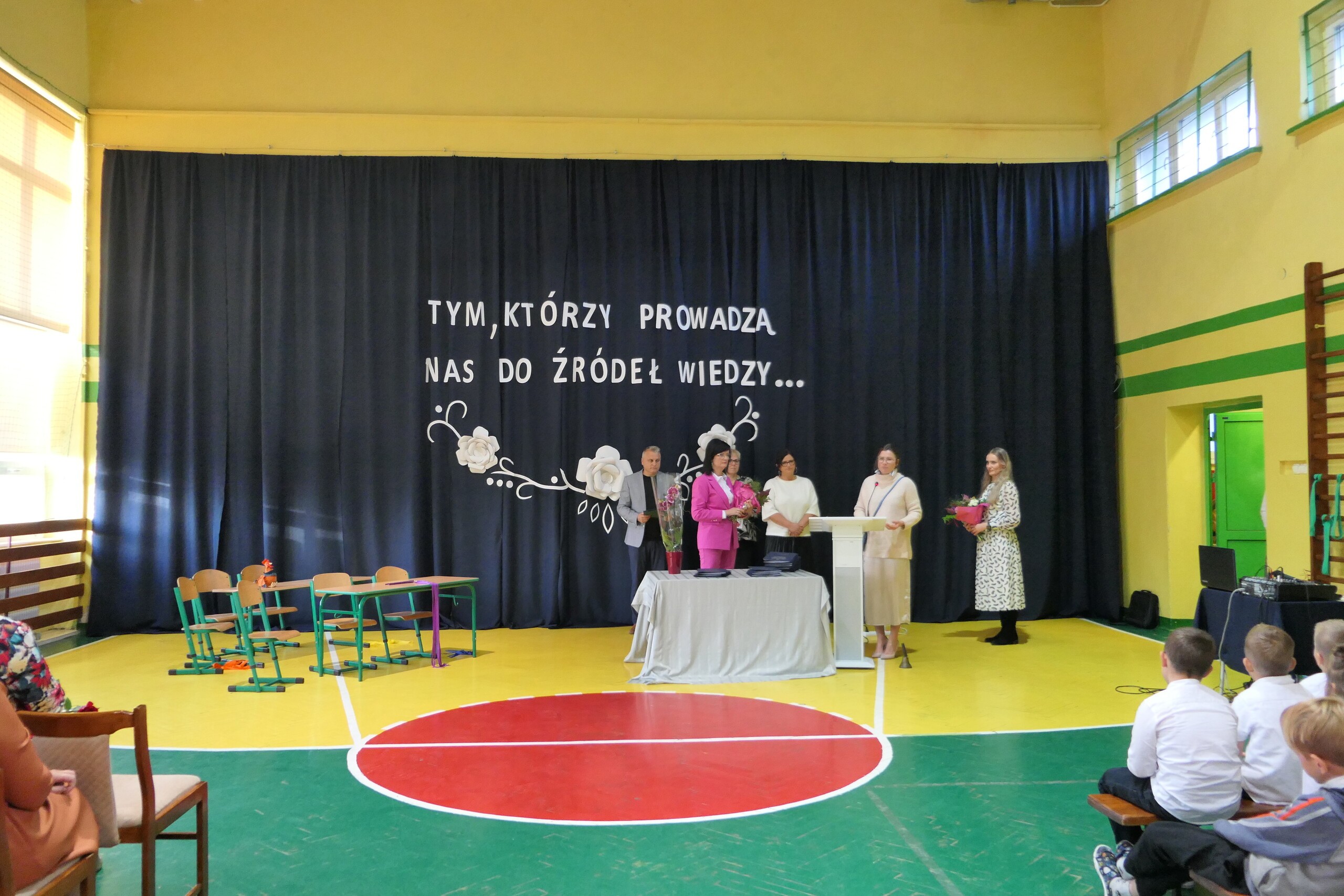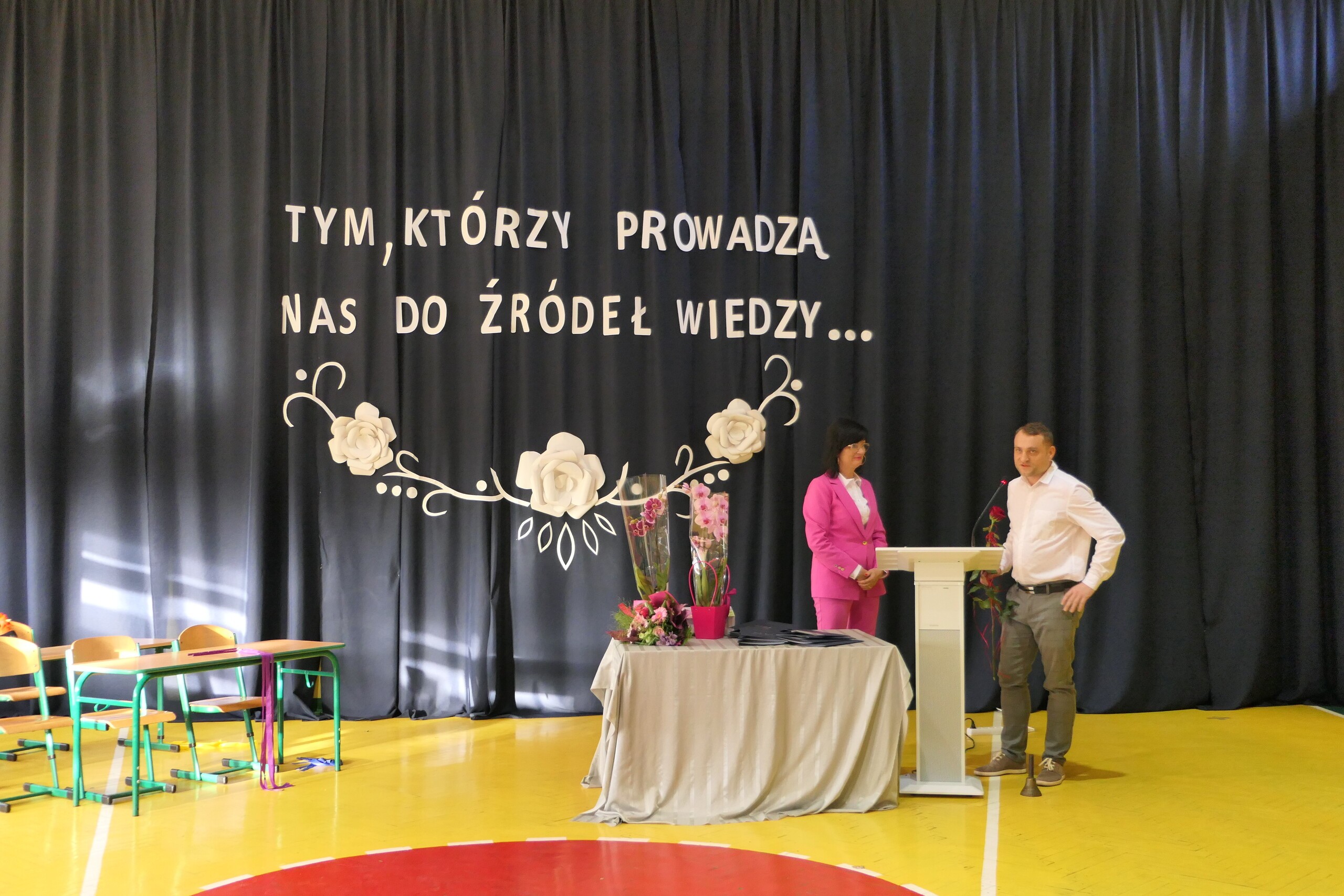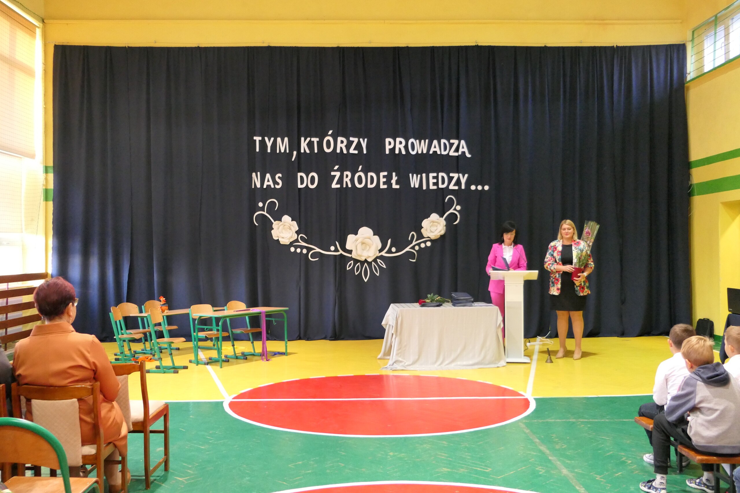 13 października w naszej szkole świętowaliśmy wspólnie Dzień Edukacji Narodowej. Z tej okazji cała społeczność szkoły wzięła udział w uroczystej akademii. Gościliśmy u nas Zastępcę Wójta Gminy Nowa Wieś Lęborska panią Monikę Włusek, przedstawicieli rady Rodziców panie Annę Gibuła i Angelikę Oborzyńską. W części oficjalnej głos zabrała Pani Dyrektor Alicja Guźniczak, która złożyła serdeczne życzenia wszystkim pracownikom szkoły, podziękowała za trud wkładany w kształcenie i wychowanie młodych ludzi. Wszyscy pracownicy szkoły zostali uhonorowani z okazji dzisiejszego święta. Była to także okazja do świętowania jubileuszów : 35. lecia pracy p. dyr. Alicji Guźniczak, 30. lecia pracy p. Marii Cieszkowskiej oraz 20. lecia pracy p. Michała Górskiego. Oprócz tego p. Michał Górski otrzymał nagrodę Wójta Gminy Nowa Wieś Lęborska za szczególne osiągnięcia.