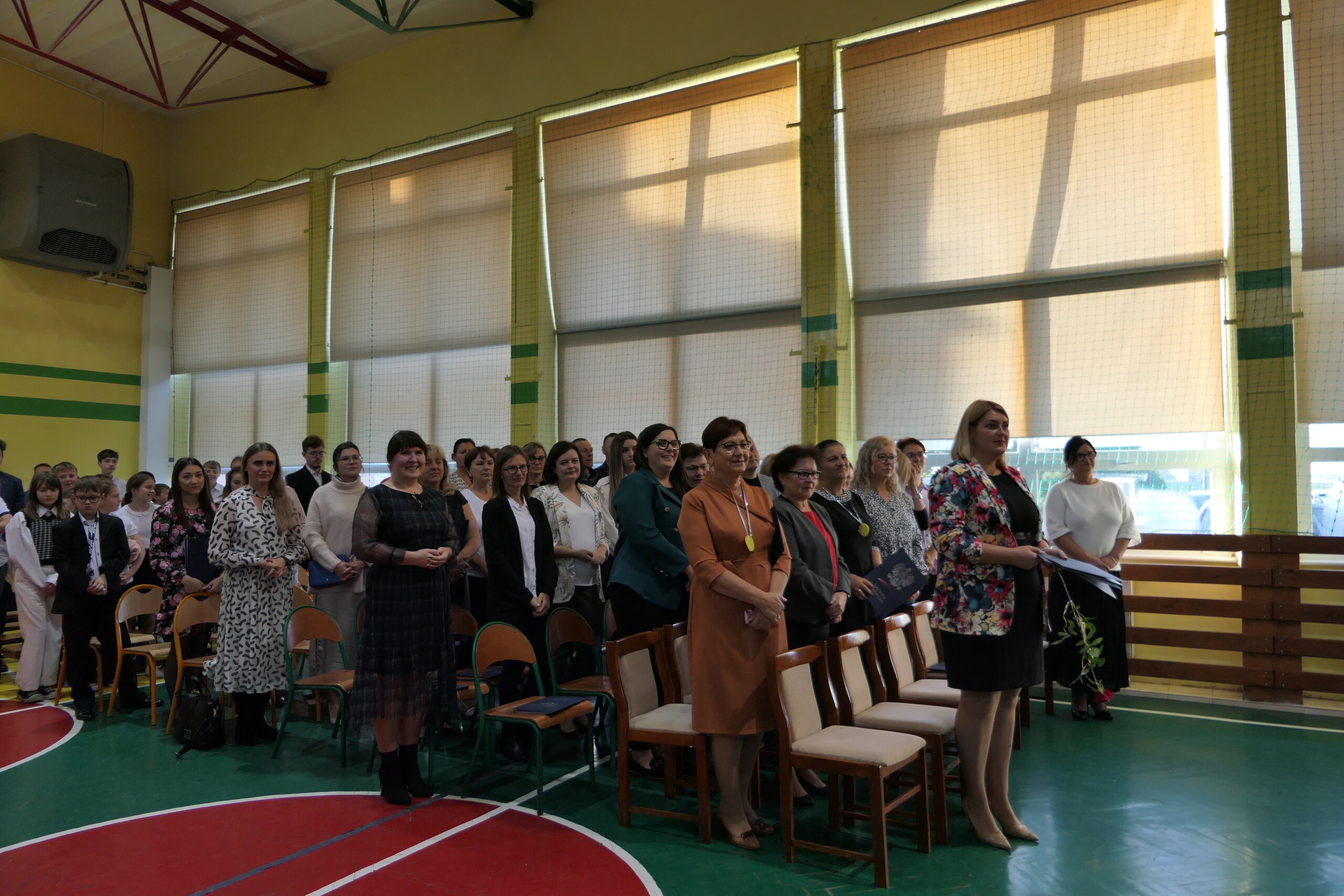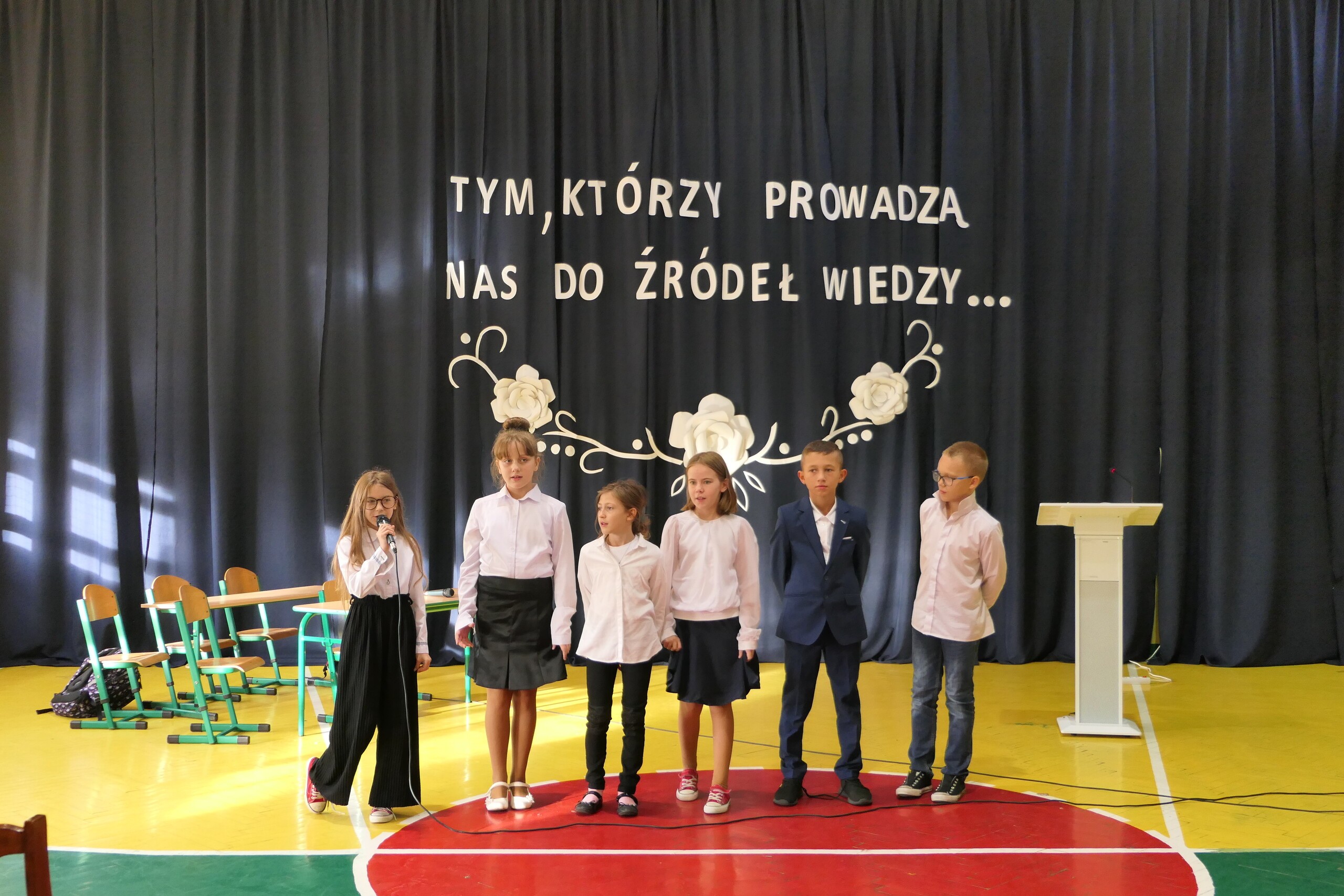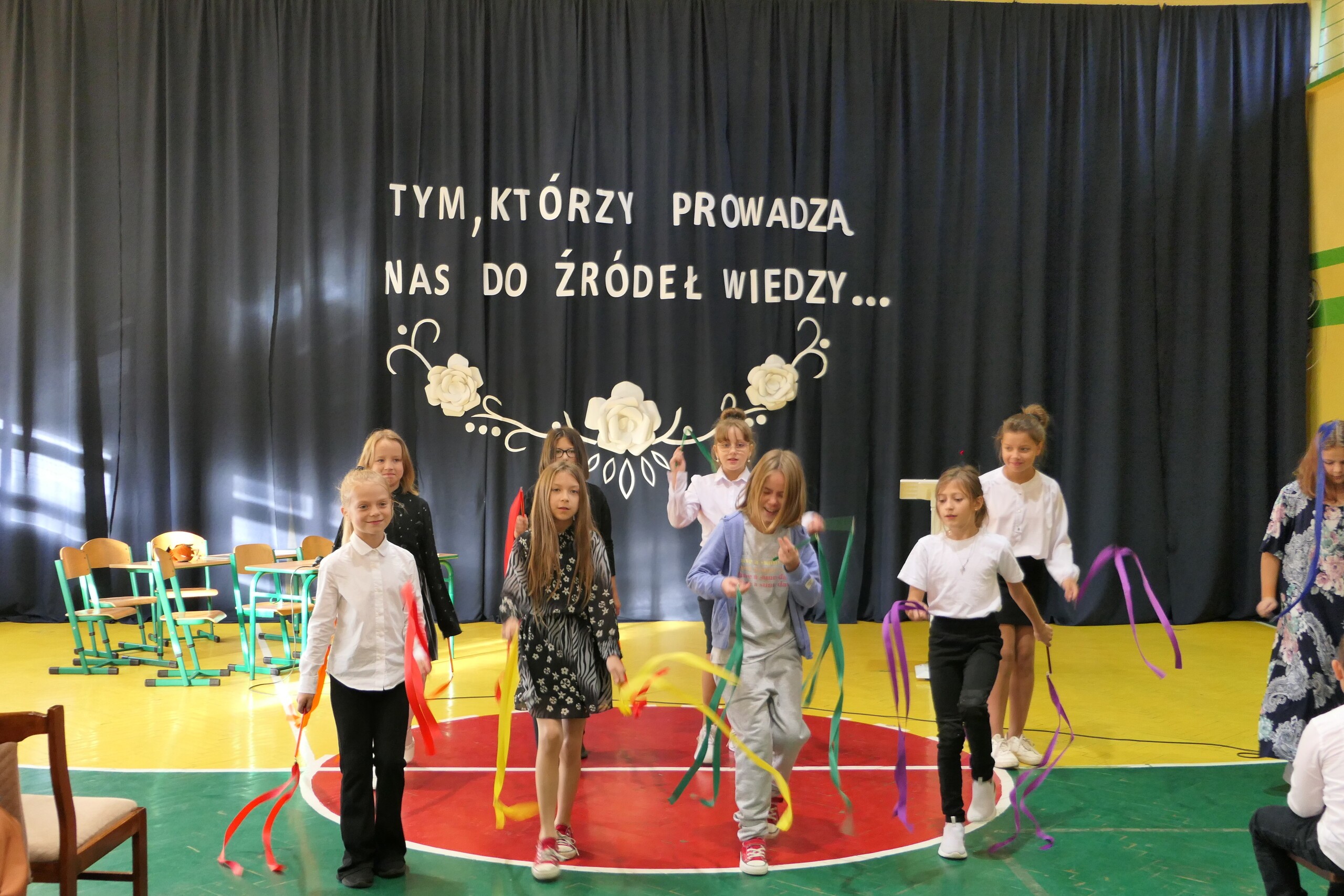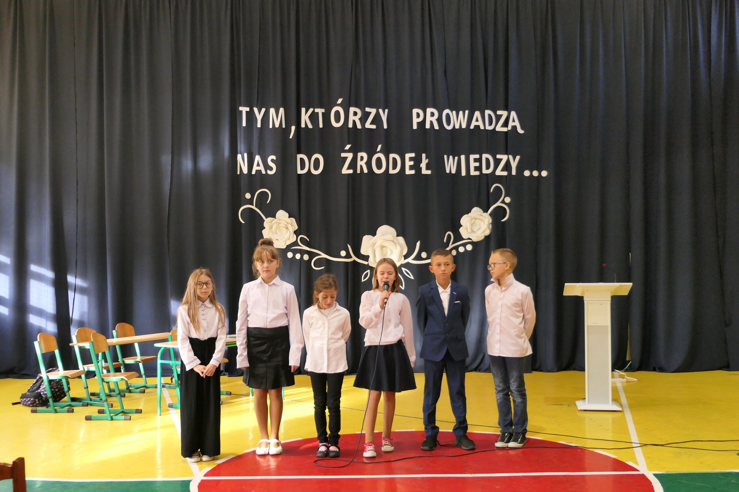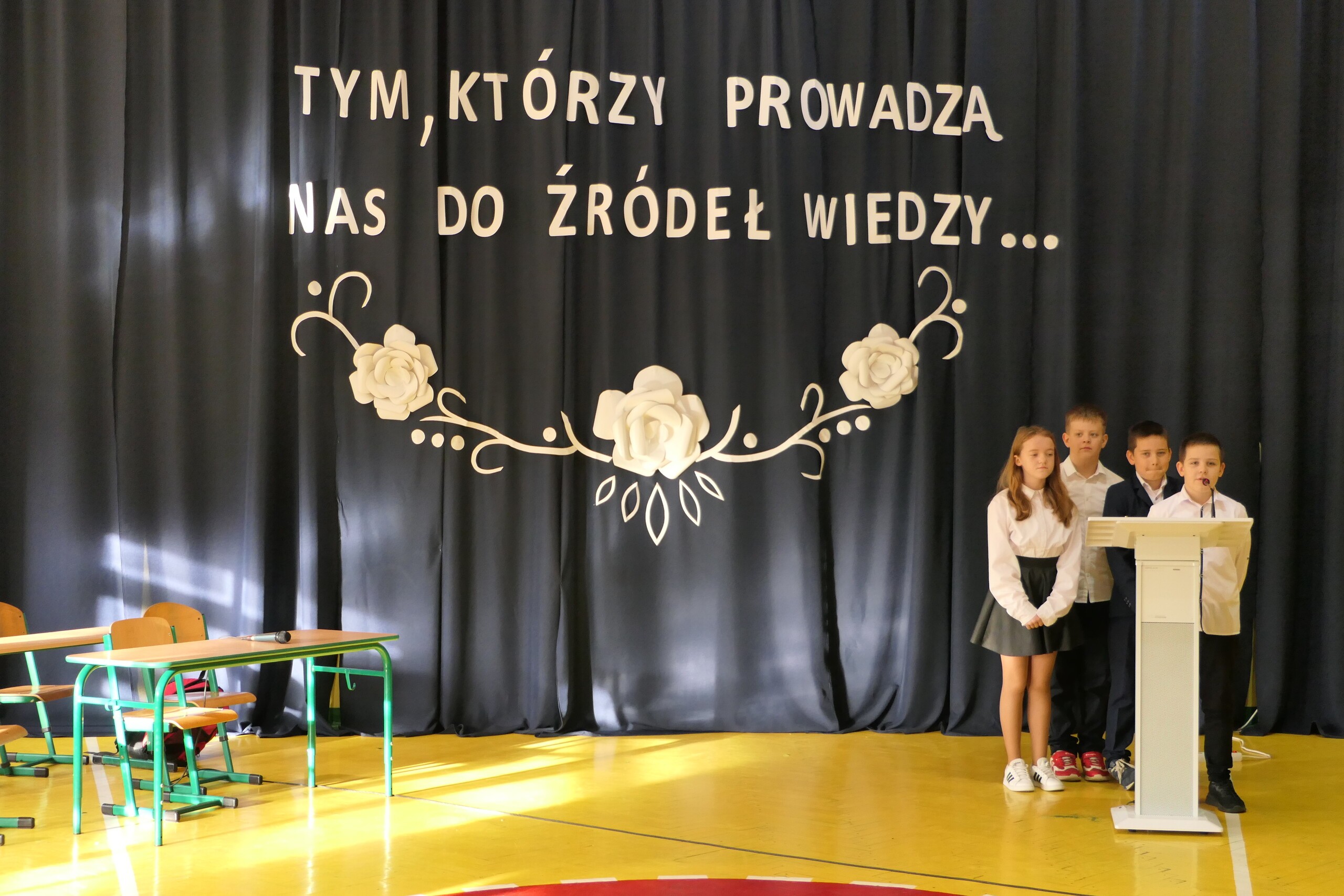 13 października w naszej szkole świętowaliśmy wspólnie Dzień Edukacji Narodowej. Z tej okazji cała społeczność szkoły wzięła udział w uroczystej akademii. Gościliśmy u nas Zastępcę Wójta Gminy Nowa Wieś Lęborska panią Monikę Włusek, przedstawicieli rady Rodziców panie Annę Gibuła i Angelikę Oborzyńską. W części oficjalnej głos zabrała Pani Dyrektor Alicja Guźniczak, która złożyła serdeczne życzenia wszystkim pracownikom szkoły, podziękowała za trud wkładany w kształcenie i wychowanie młodych ludzi. Wszyscy pracownicy szkoły zostali uhonorowani z okazji dzisiejszego święta. Była to także okazja do świętowania jubileuszów : 35. lecia pracy p. dyr. Alicji Guźniczak, 30. lecia pracy p. Marii Cieszkowskiej oraz 20. lecia pracy p. Michała Górskiego. Oprócz tego p. Michał Górski otrzymał nagrodę Wójta Gminy Nowa Wieś Lęborska za szczególne osiągnięcia.