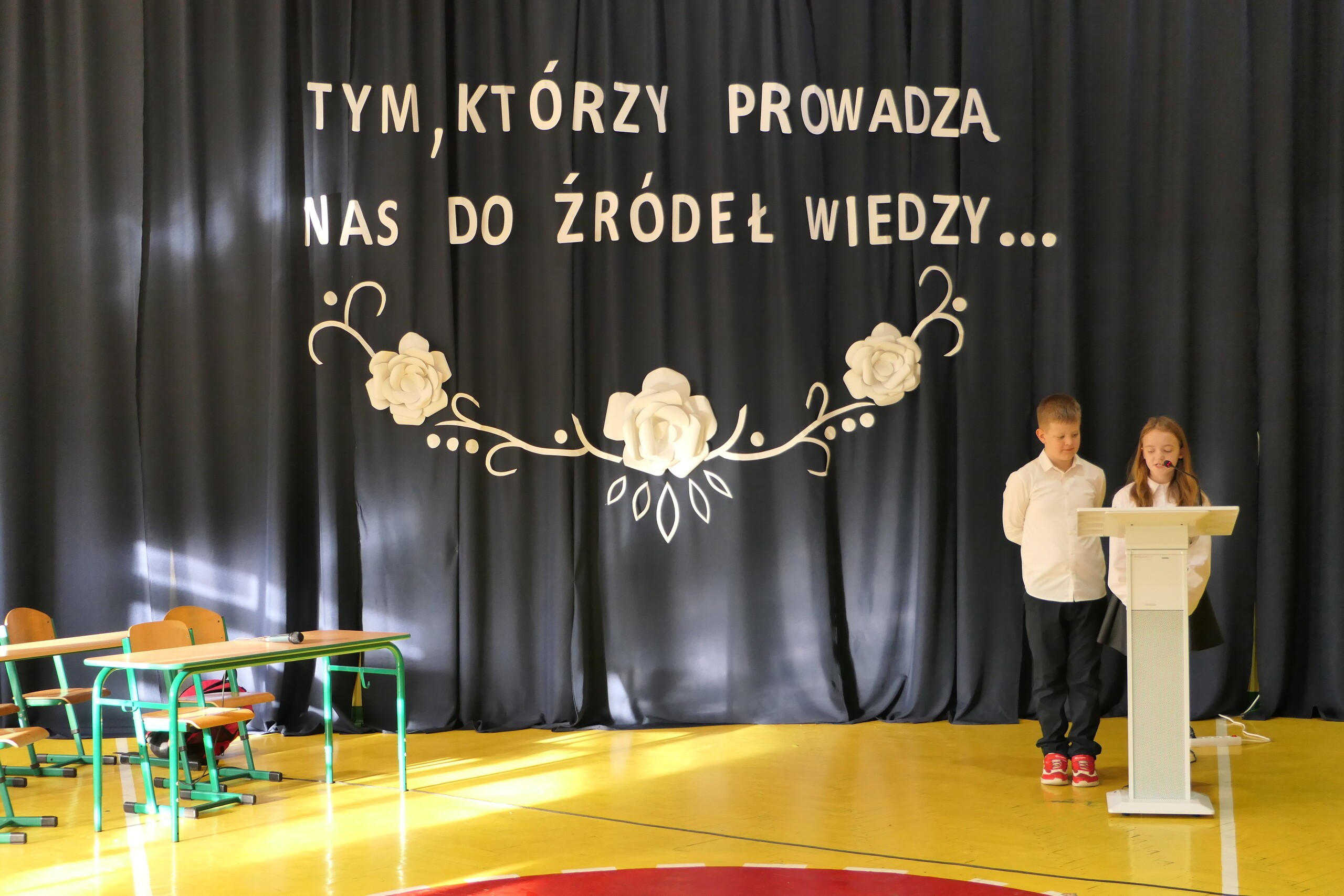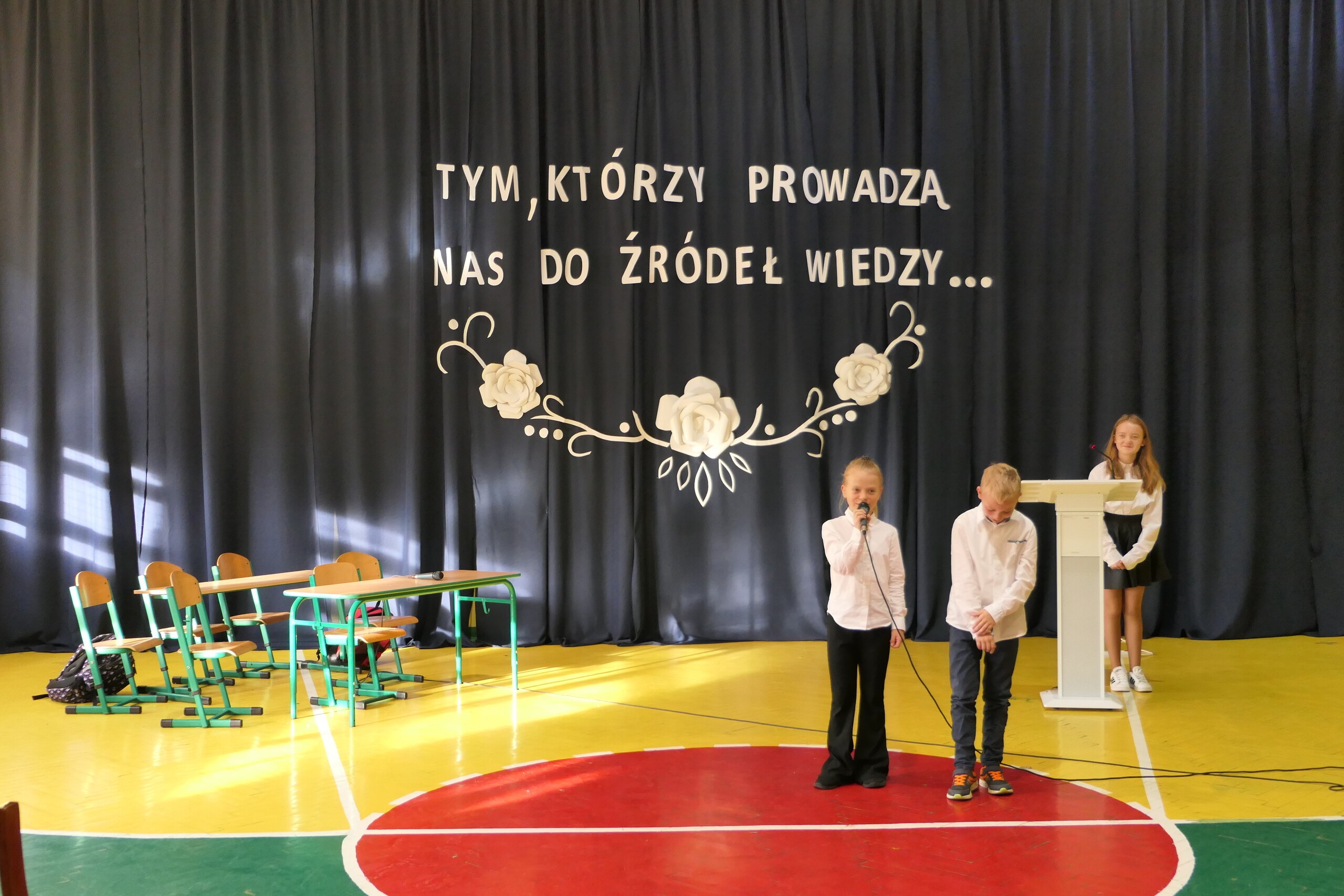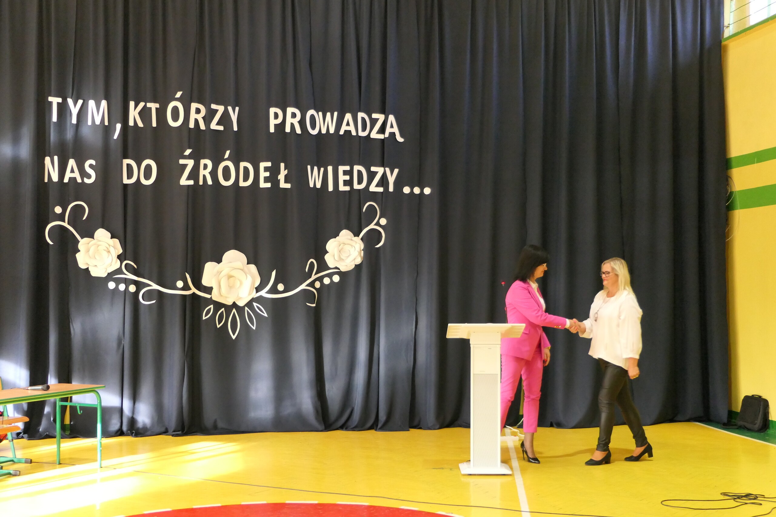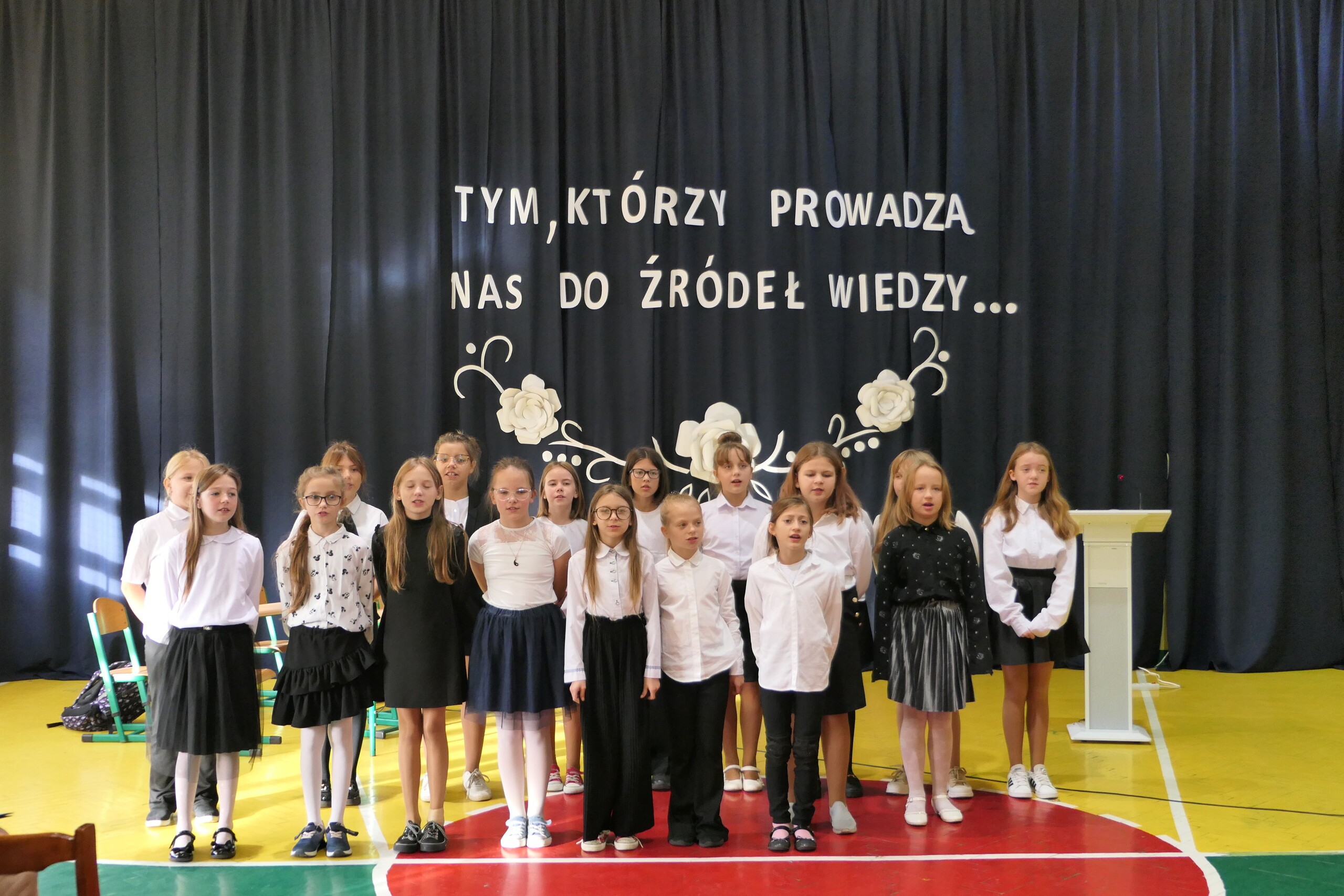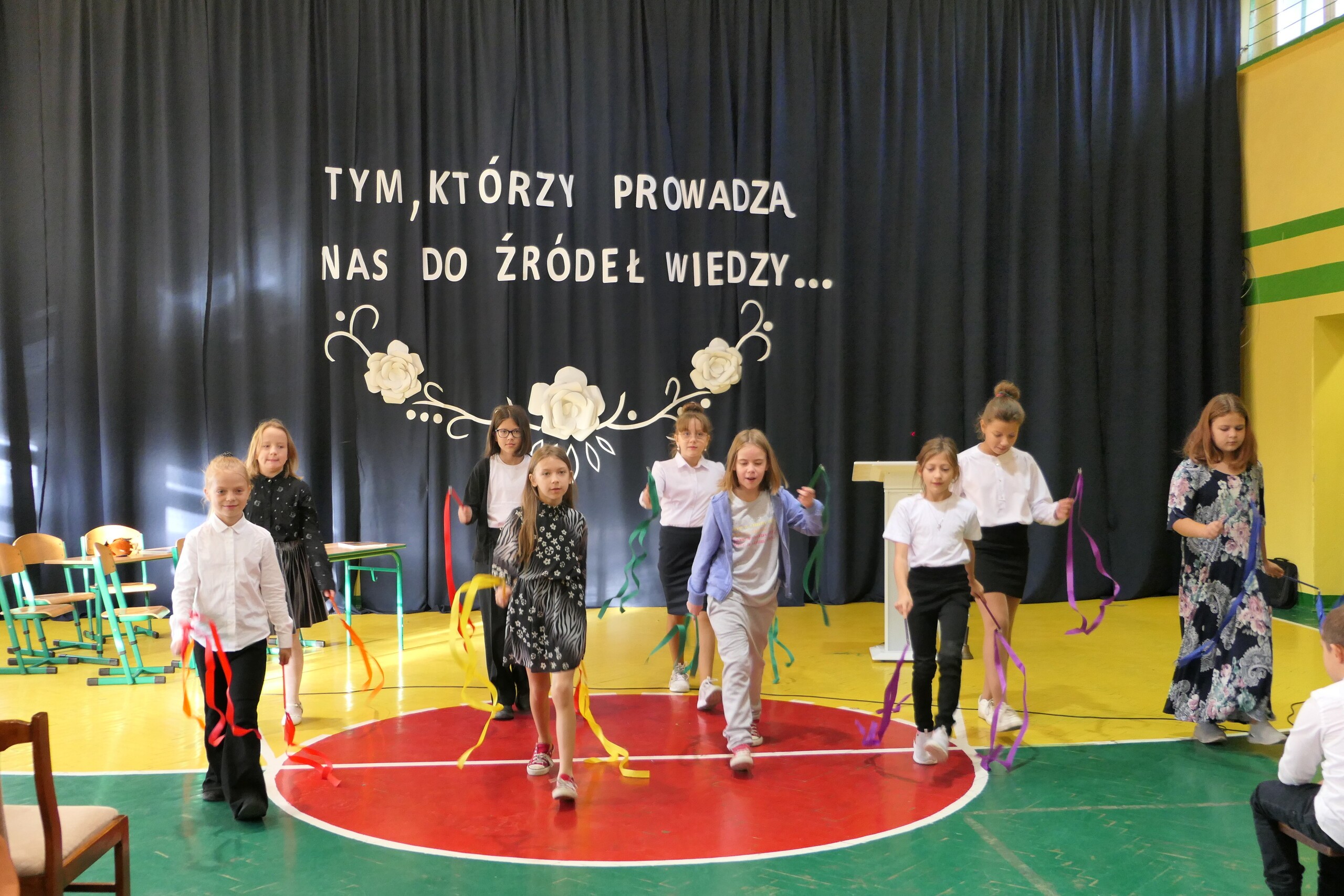 13 października w naszej szkole świętowaliśmy wspólnie Dzień Edukacji Narodowej. Z tej okazji cała społeczność szkoły wzięła udział w uroczystej akademii. Gościliśmy u nas Zastępcę Wójta Gminy Nowa Wieś Lęborska panią Monikę Włusek, przedstawicieli rady Rodziców panie Annę Gibuła i Angelikę Oborzyńską. W części oficjalnej głos zabrała Pani Dyrektor Alicja Guźniczak, która złożyła serdeczne życzenia wszystkim pracownikom szkoły, podziękowała za trud wkładany w kształcenie i wychowanie młodych ludzi. Wszyscy pracownicy szkoły zostali uhonorowani z okazji dzisiejszego święta. Była to także okazja do świętowania jubileuszów : 35. lecia pracy p. dyr. Alicji Guźniczak, 30. lecia pracy p. Marii Cieszkowskiej oraz 20. lecia pracy p. Michała Górskiego. Oprócz tego p. Michał Górski otrzymał nagrodę Wójta Gminy Nowa Wieś Lęborska za szczególne osiągnięcia.