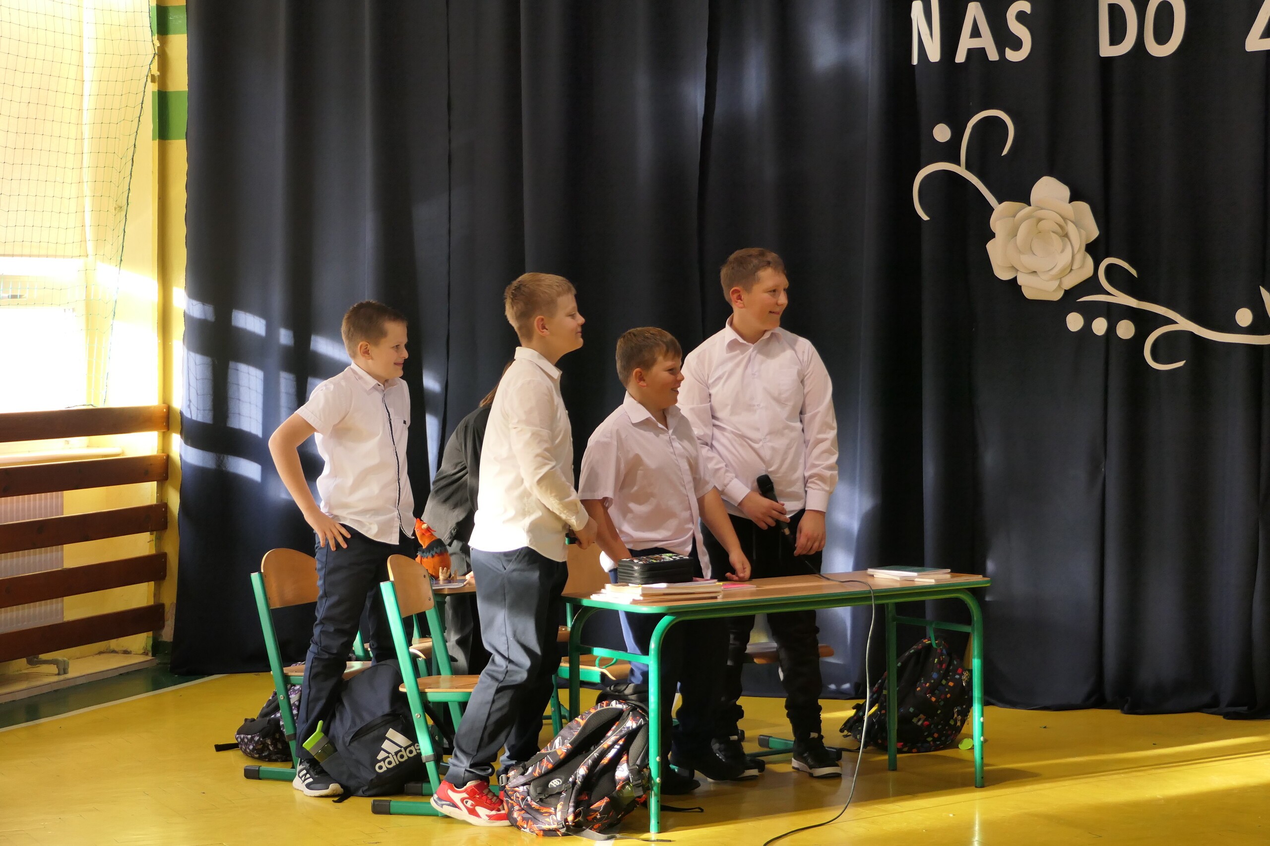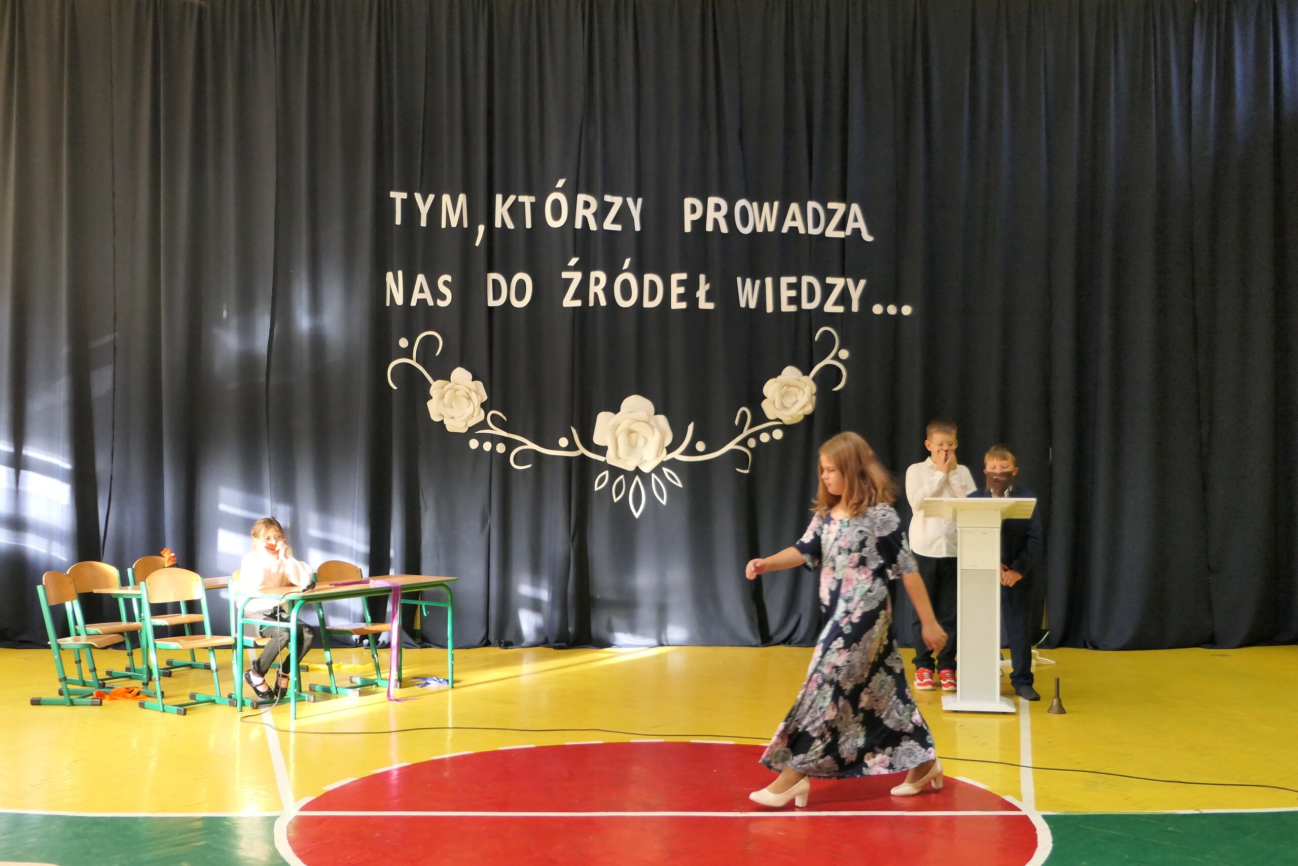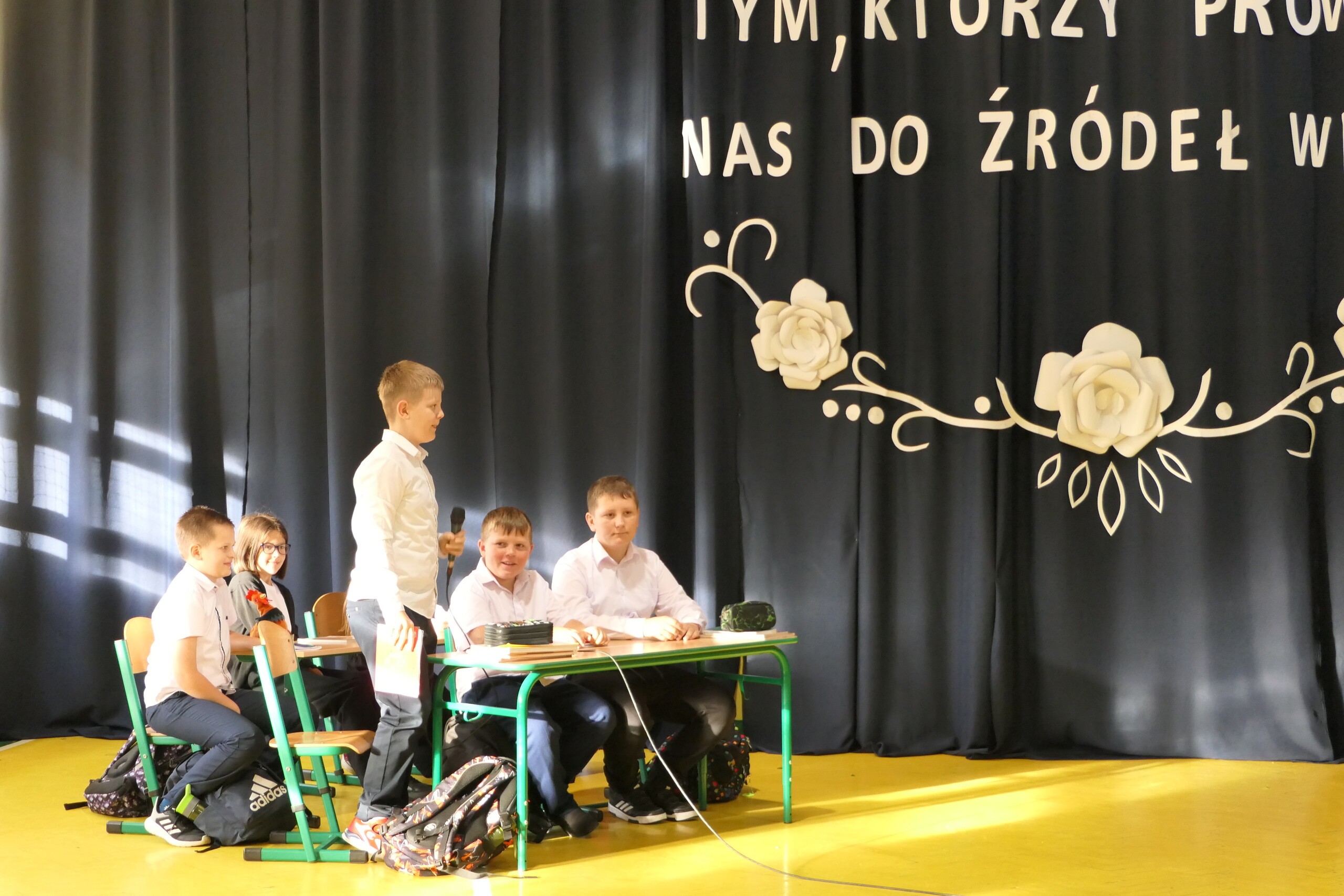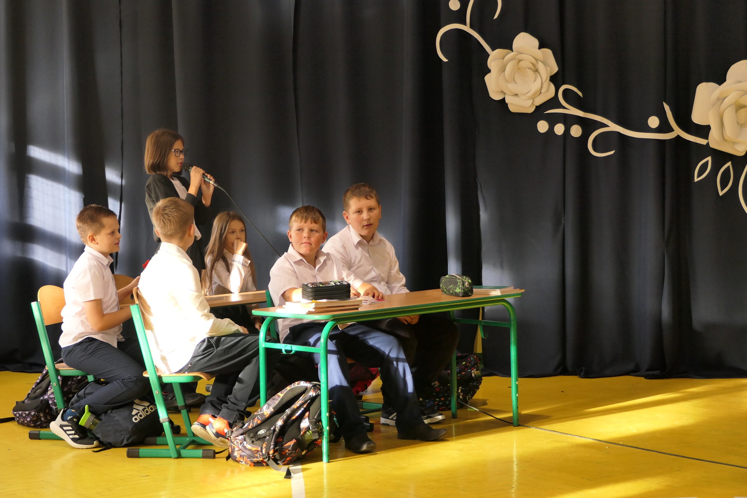 Następnym punktem uroczystości szkolnej była część artystyczna, która utrzymana była w wesołym nastroju. Dowcipne dialogi w odgrywanych przez dzieci scenkach pokazywały szkołę widzianą oczyma uczniów i nauczycieli. Przedstawienie przygotowali uczniowie klasy IV z wychowawcą panią Honoratą Smentoch. Część muzyczną przygotowały panie Romana Kasprzak i Anna Polska, natomiast oprawą techniczną uroczystości zajęli się panowie Tomasz Neubauer i Michał Górski.