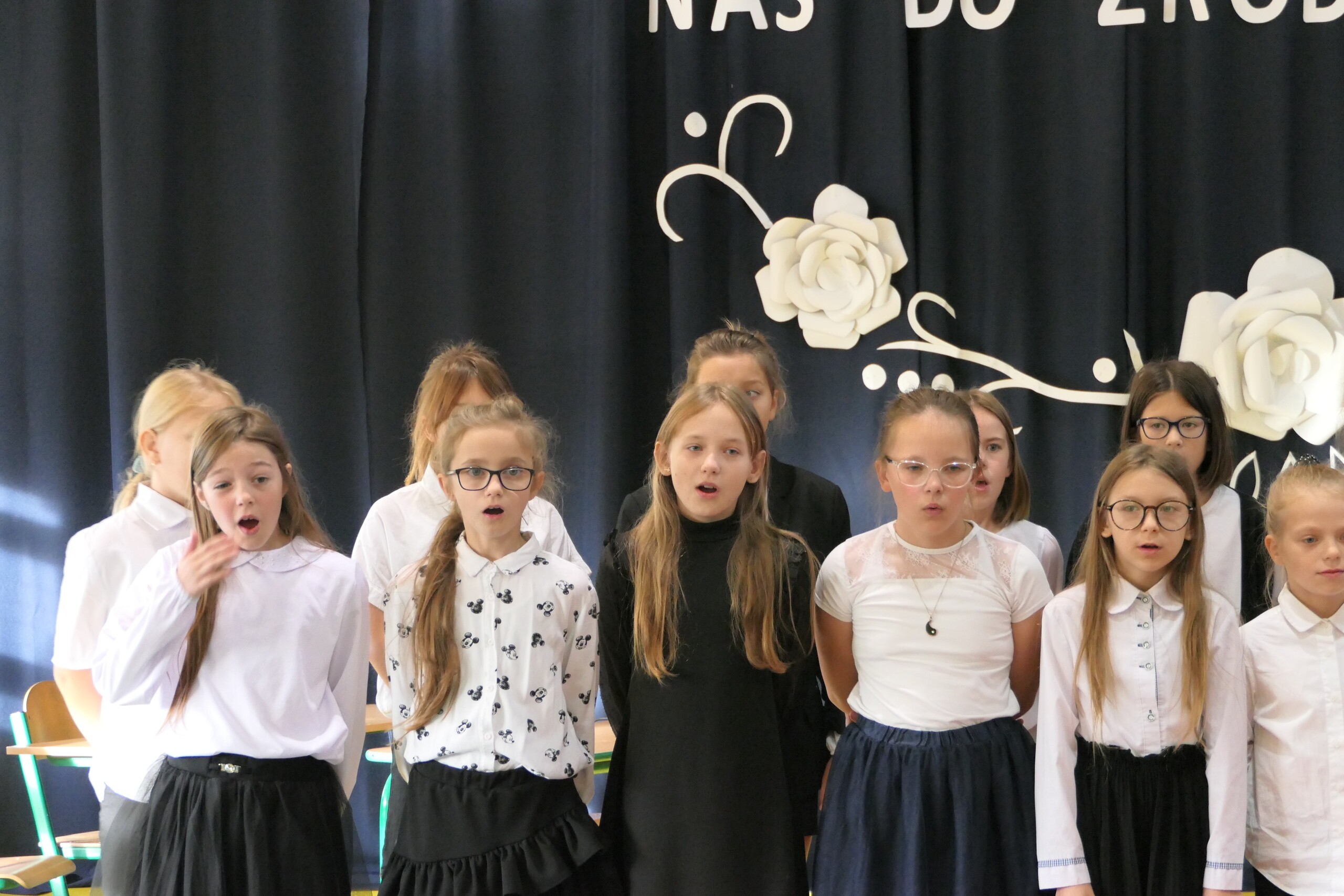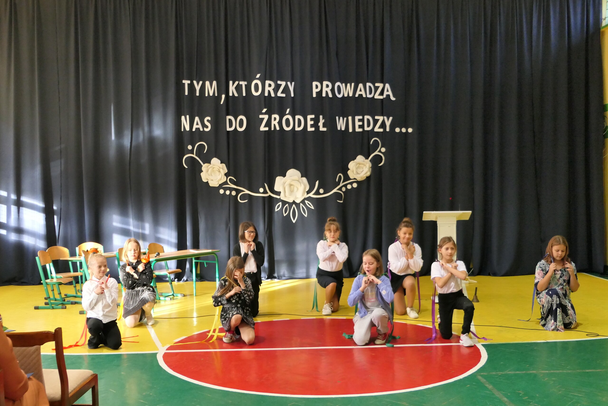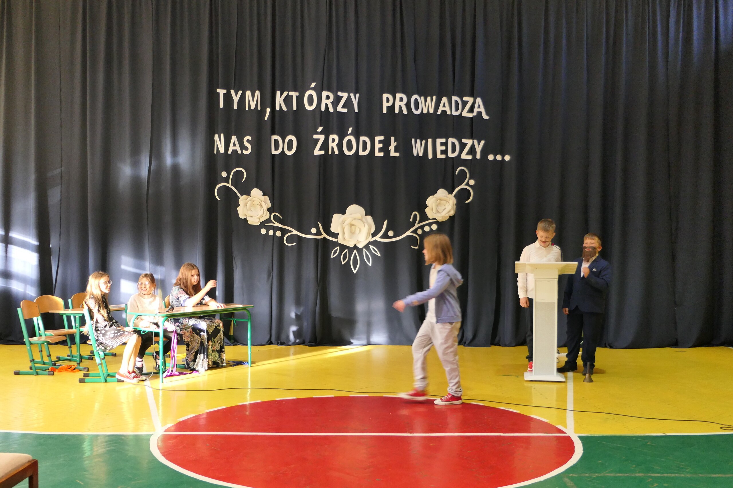 Następnym punktem uroczystości szkolnej była część artystyczna, która utrzymana była w wesołym nastroju. Dowcipne dialogi w odgrywanych przez dzieci scenkach pokazywały szkołę widzianą oczyma uczniów i nauczycieli. Przedstawienie przygotowali uczniowie klasy IV z wychowawcą panią Honoratą Smentoch. Część muzyczną przygotowały panie Romana Kasprzak i Anna Polska, natomiast oprawą techniczną uroczystości zajęli się panowie Tomasz Neubauer i Michał Górski.