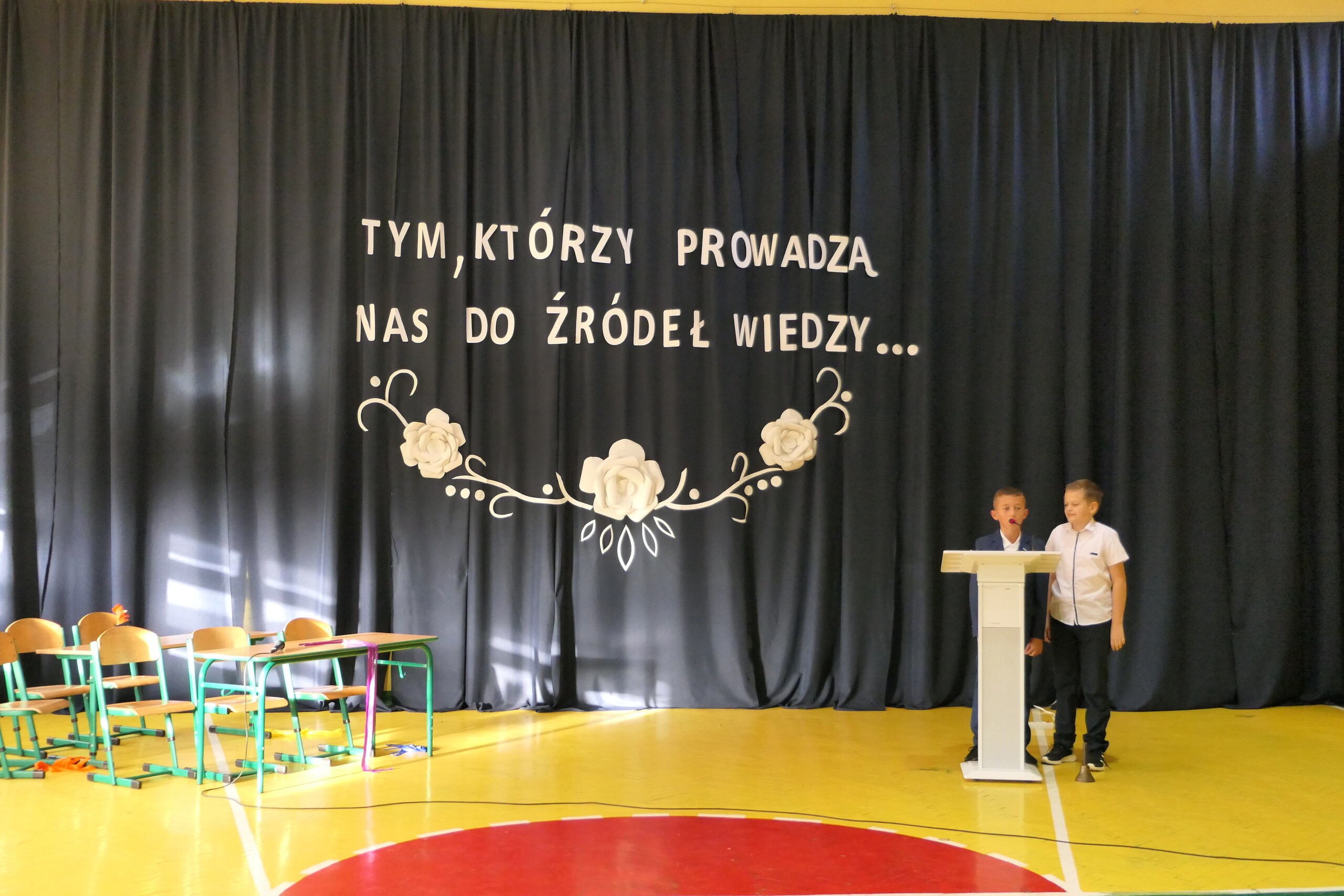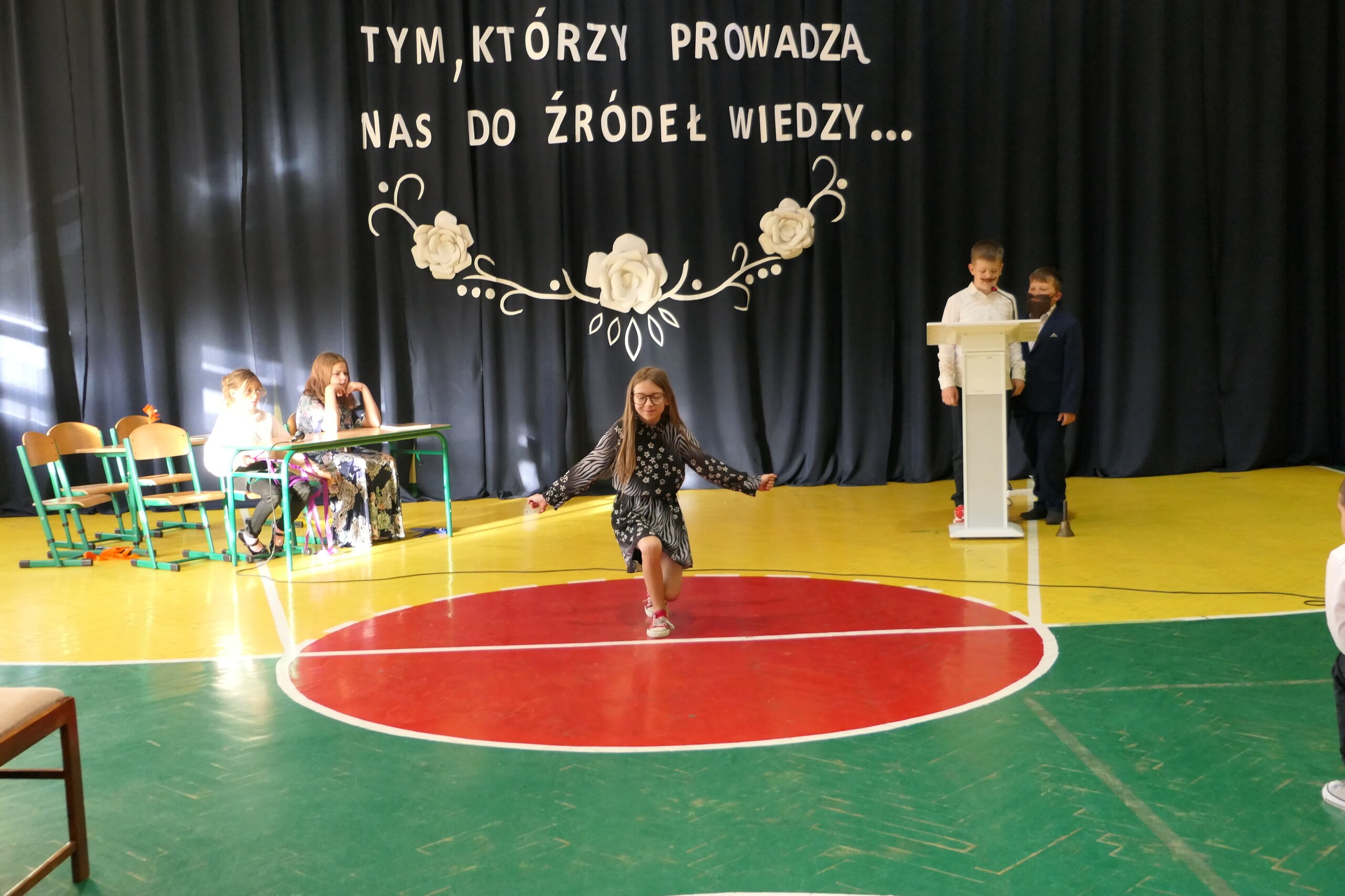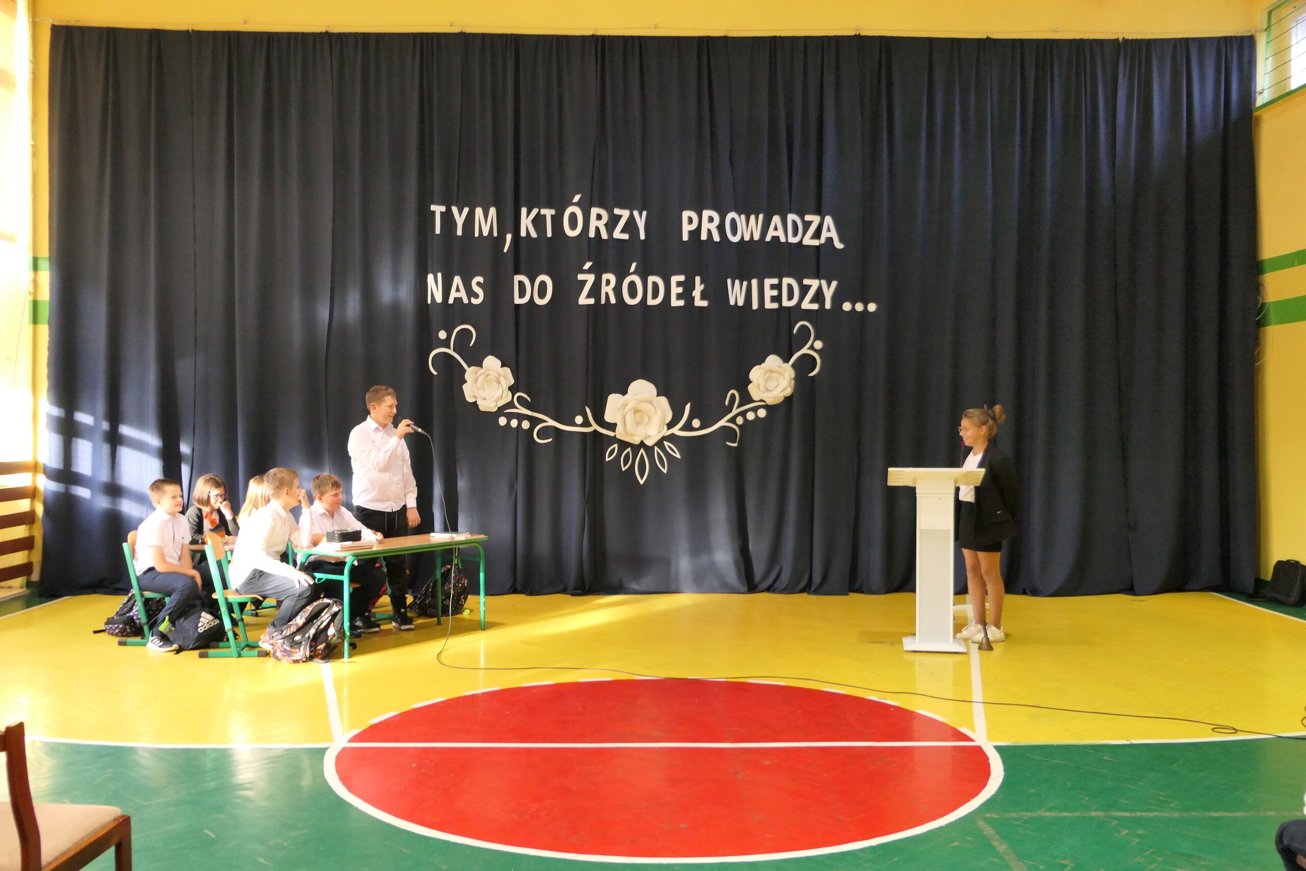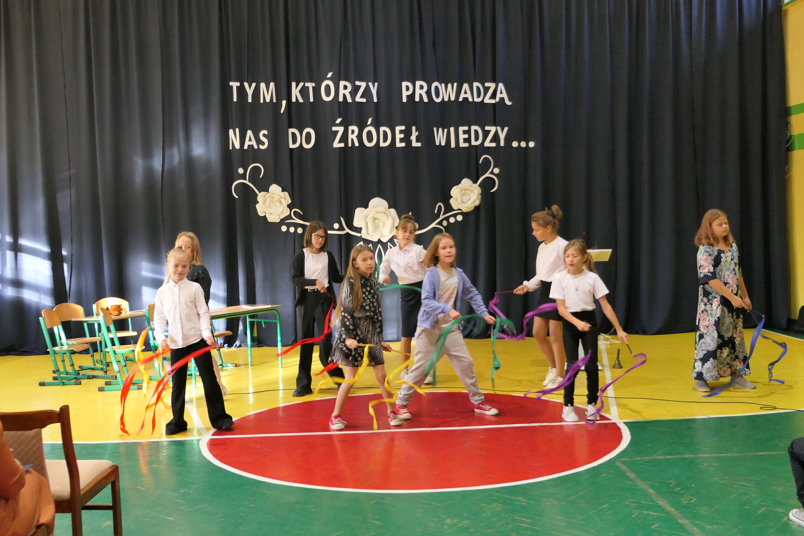 Następnym punktem uroczystości szkolnej była część artystyczna, która utrzymana była w wesołym nastroju. Dowcipne dialogi w odgrywanych przez dzieci scenkach pokazywały szkołę widzianą oczyma uczniów i nauczycieli. Przedstawienie przygotowali uczniowie klasy IV z wychowawcą panią Honoratą Smentoch. Część muzyczną przygotowały panie Romana Kasprzak i Anna Polska, natomiast oprawą techniczną uroczystości zajęli się panowie Tomasz Neubauer i Michał Górski.