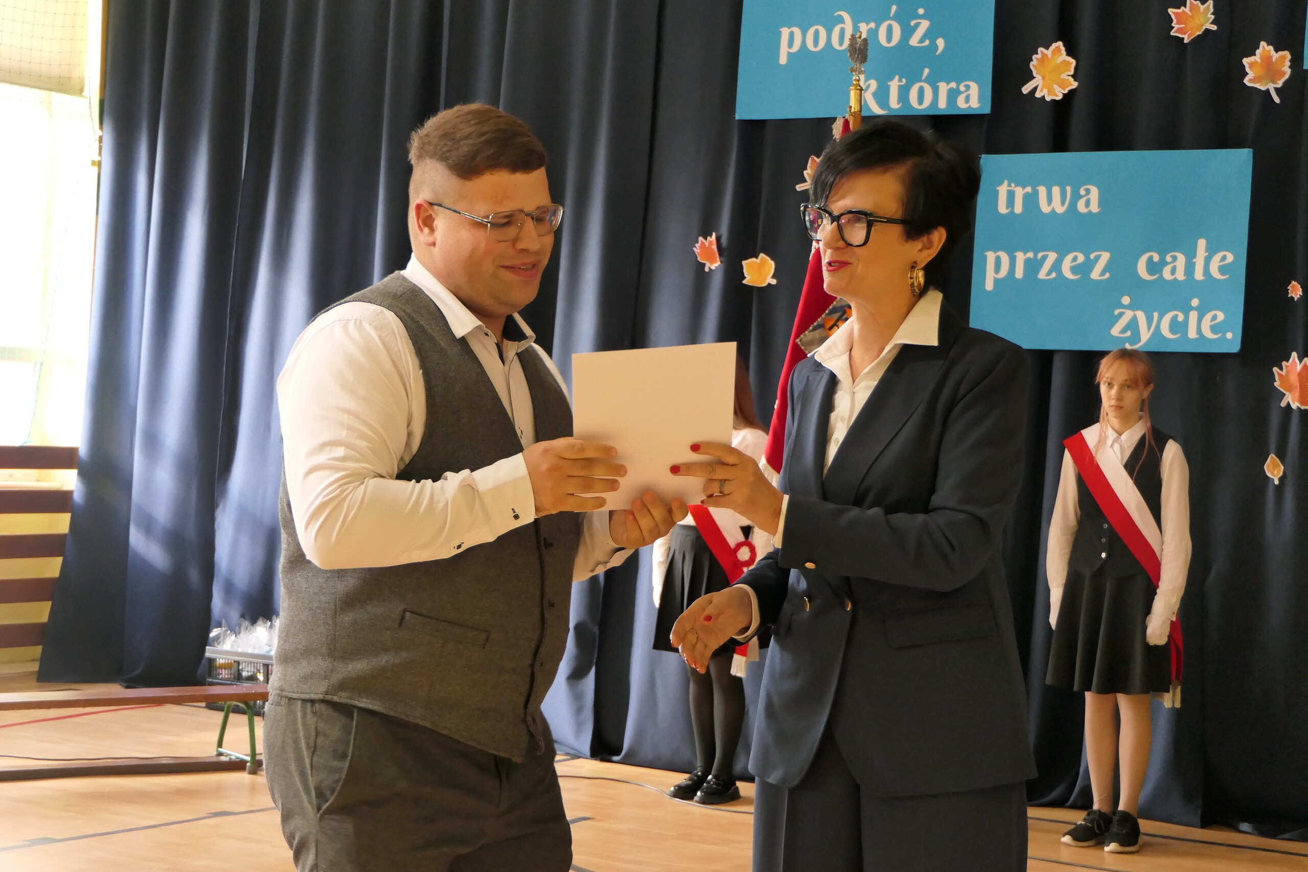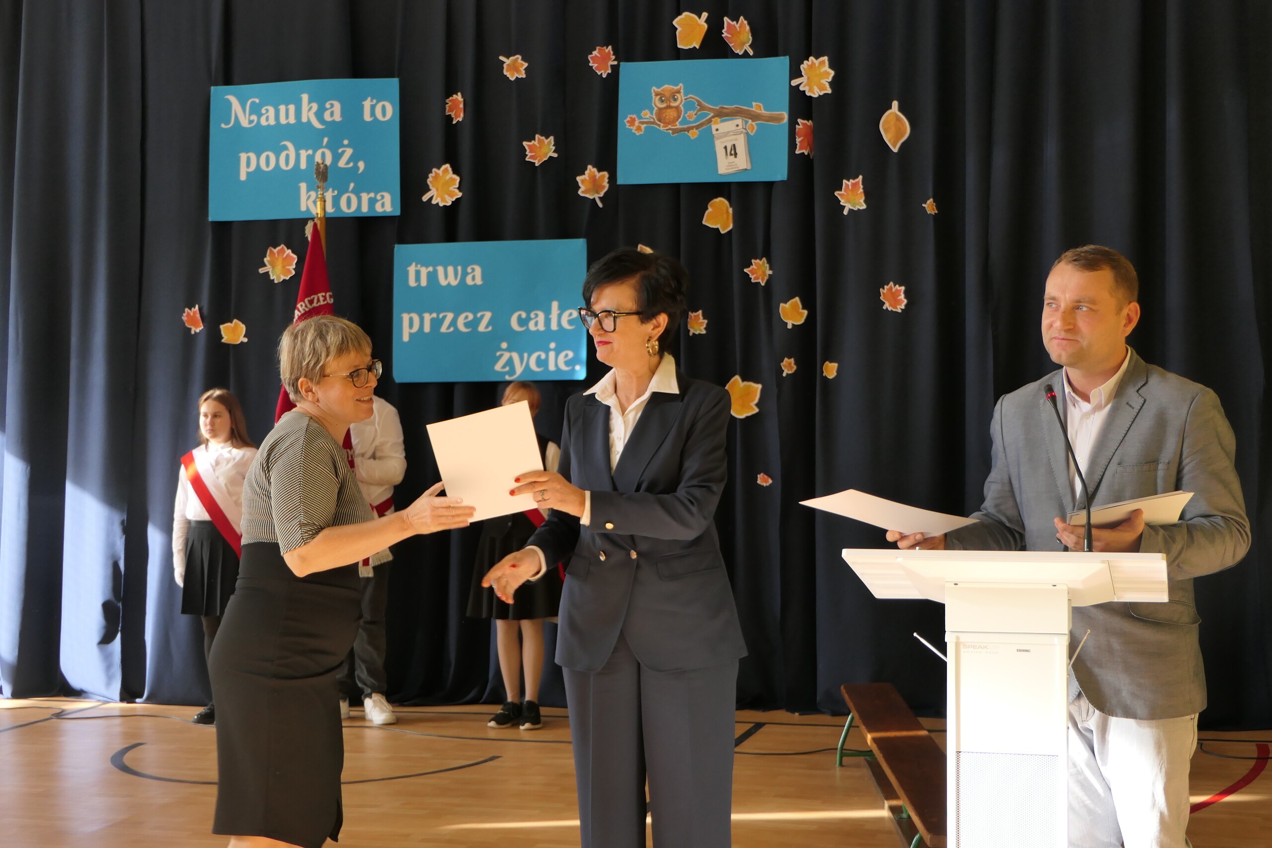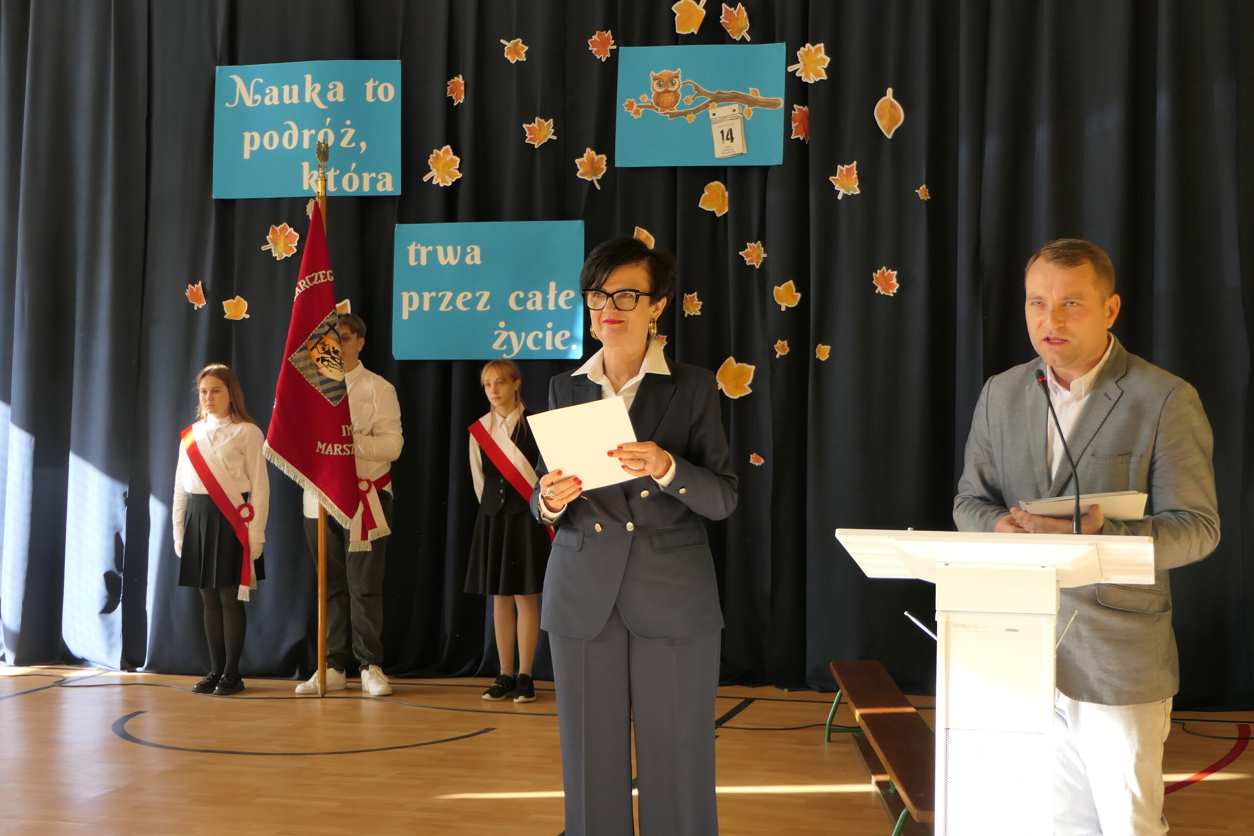 Z okazji Dnia Edukacji Narodowej w Zespole Szkół w Garczegorzu odbył się uroczysty apel. W uroczystości wziął udział Wójt Gminy Nowa Wieś Lęborska Szymon Medalion, który złożył serdeczne życzenia wszystkim nauczycielom i pracownikom szkoły oraz wyraził uznanie dla ich pracy i poświęcenia. Również Pani Dyrektor Alicja Guźniczak złożyła serdeczne podziękowania wszystkim pracownikom szkoły za ich pracę, troskę i wkład w rozwój uczniów. To był wyjątkowy moment, by również uczniowie podziękowali wszystkim nauczycielom i pracownikom szkoły za codzienny trud, zaangażowanie i serce wkładane w edukację młodego pokolenia. Nie zabrakło ciepłych słów, wzruszeń oraz pięknych występów artystycznych przygotowanych przez uczniów klasy IV i uczennicę klasy VI Marcelinę Pawelczyk, która swoim pięknym głosem uświetniła to wyjątkowe wydarzenie. Dzieci wyraziły wdzięczność za wspólnie spędzony czas życząc wszystkim nauczycielom satysfakcji z pracy oraz wielu sukcesów.