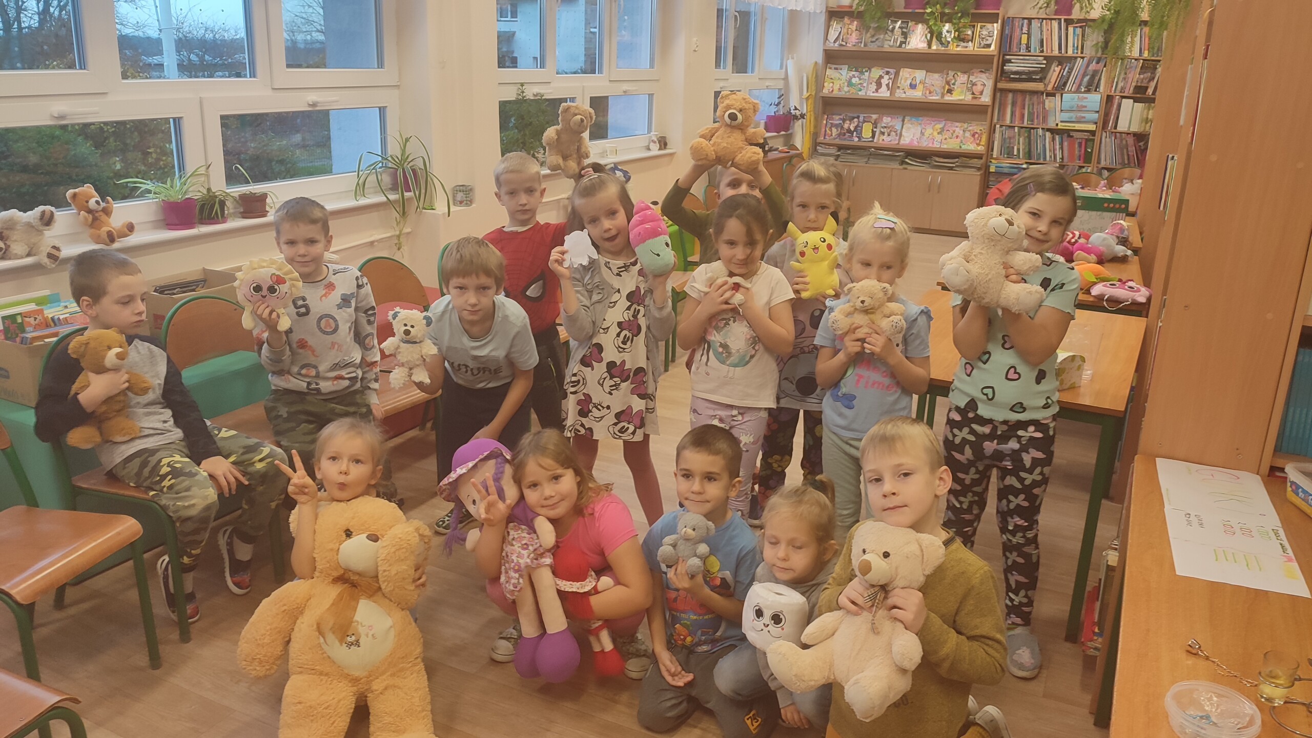 Jak co roku w bibliotece szkolnej obchodziliśmy ŚWIATOWY DZIEŃ PLUSZOWEGO MISIA. Gościliśmy dzieci z przedszkola i klas I-III. Podczas spotkania z ukochanymi przytulankami poznaliśmy historię pluszowego misia, rozróżnialiśmy niedźwiedzie i przypomnieliśmy sobie bohaterów misiowych bajek. Wszyscy bawili się wspaniale razem z misiami.