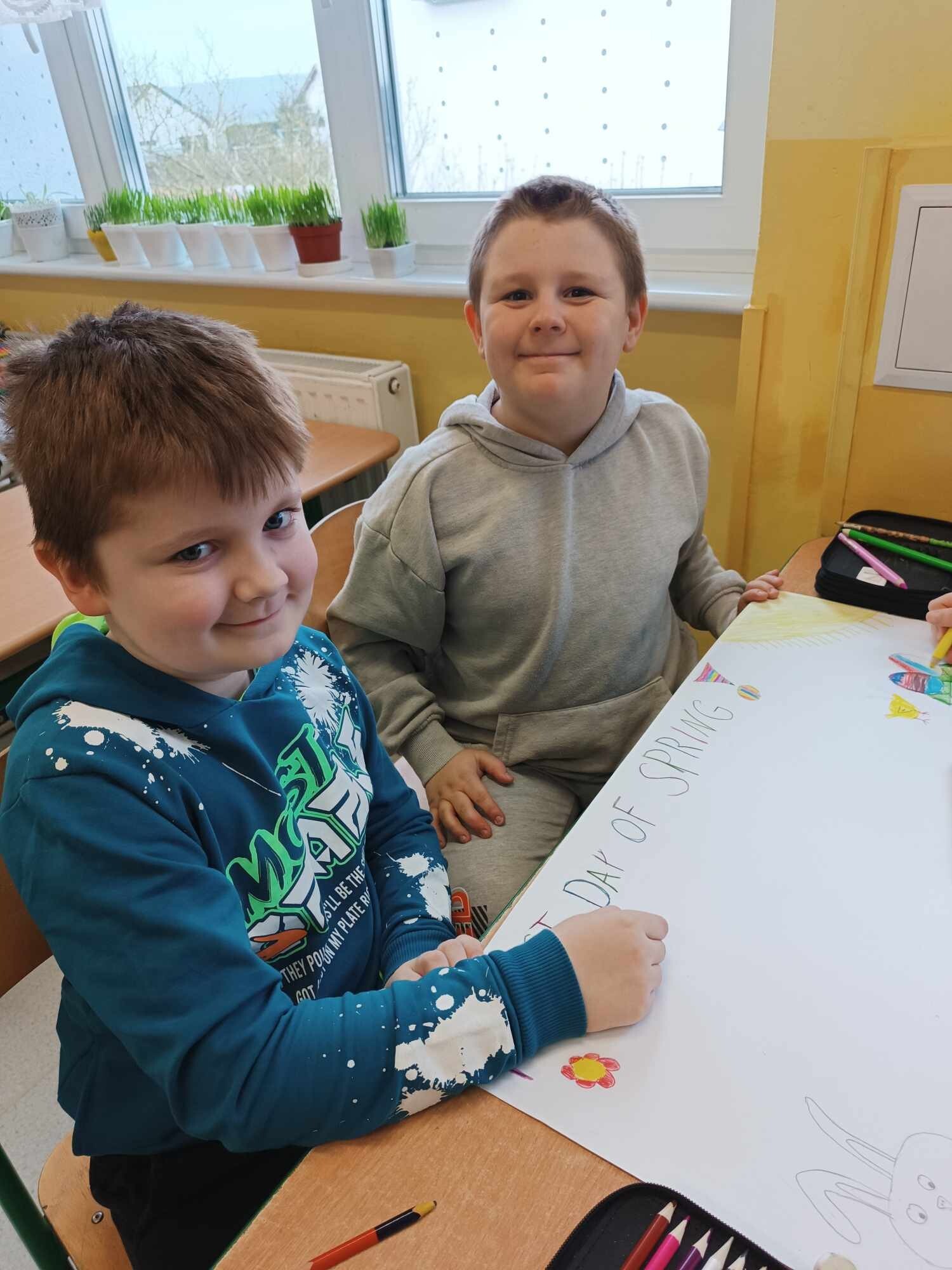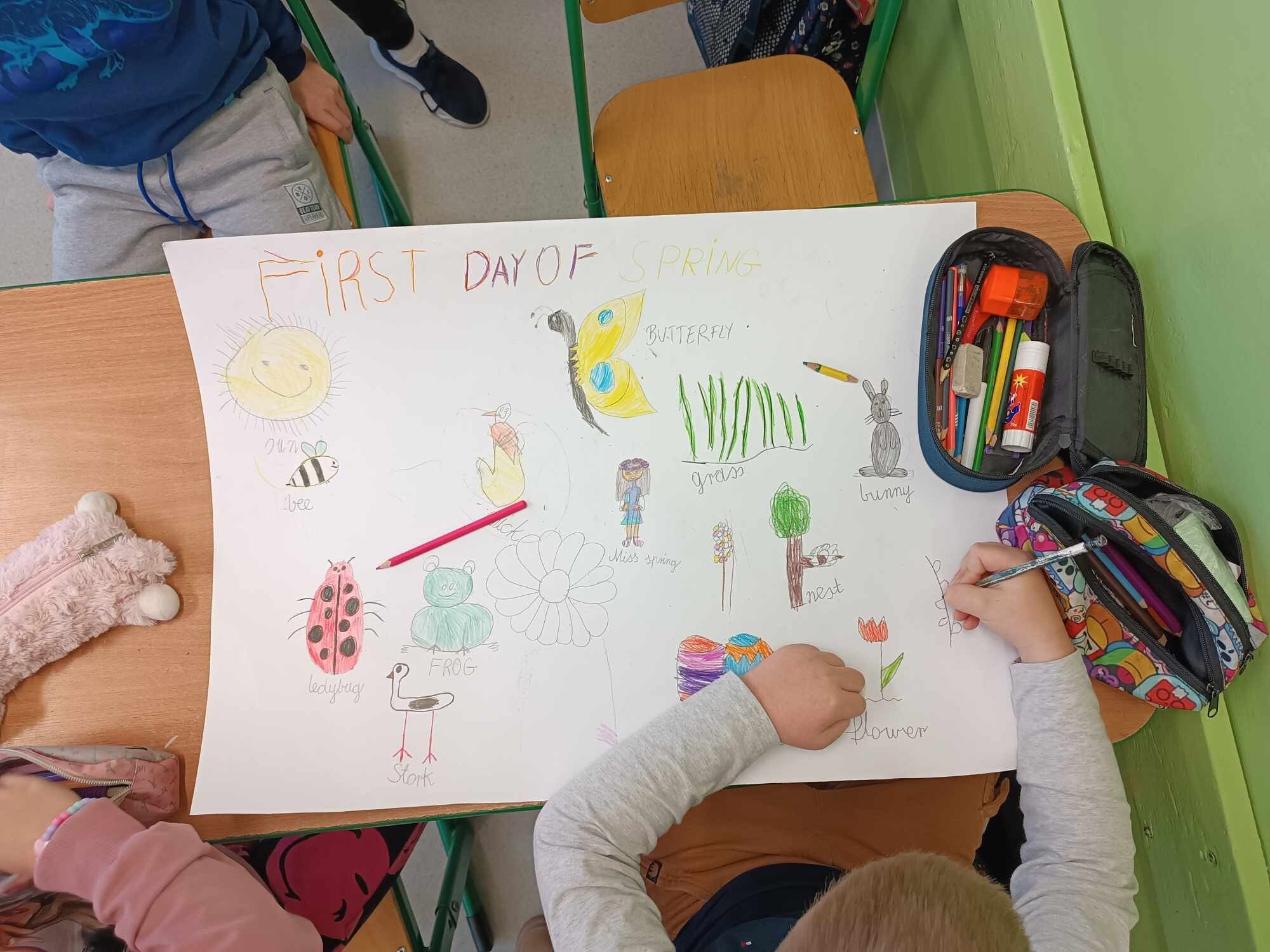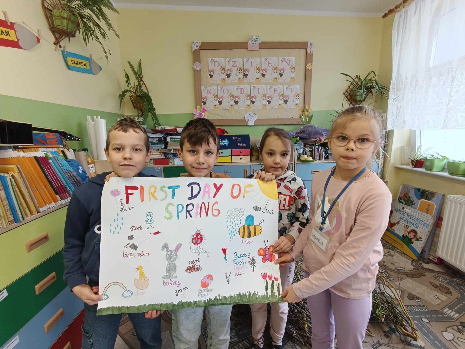 Na dzisiejszej lekcji języka angielskiego uczniowie klasy II wykonali wspaniałe plakaty pt. "First Day of Spring". To doskonały sposób na poznanie słownictwa związanego z Wiosną. Swoje plakaty wywiesili na korytarzu, żeby każdy mógł je zobaczyć.