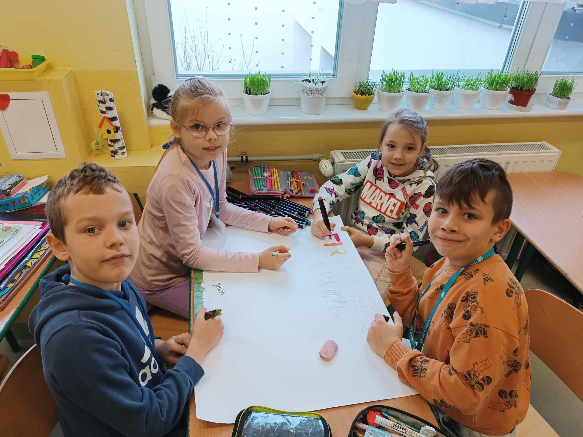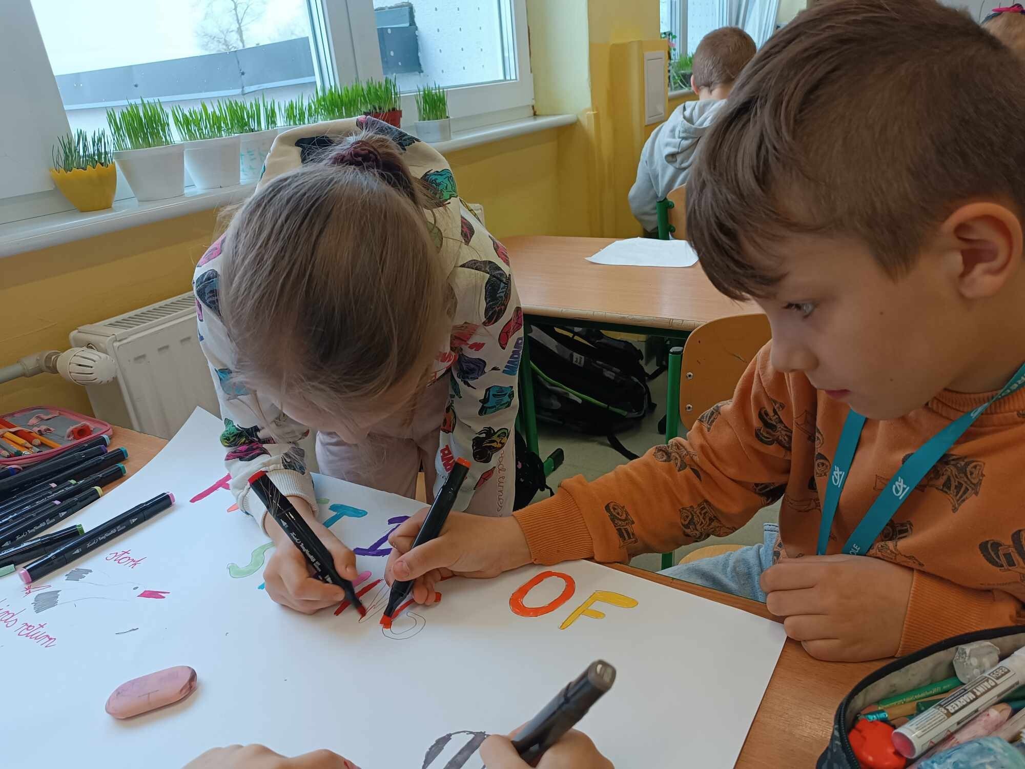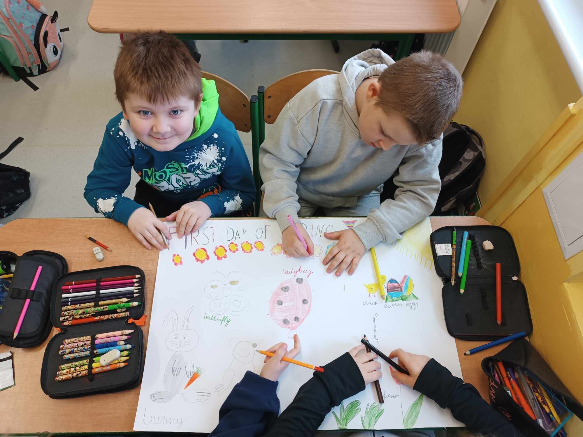 Na dzisiejszej lekcji języka angielskiego uczniowie klasy II wykonali wspaniałe plakaty pt. "First Day of Spring". To doskonały sposób na poznanie słownictwa związanego z Wiosną. Swoje plakaty wywiesili na korytarzu, żeby każdy mógł je zobaczyć.