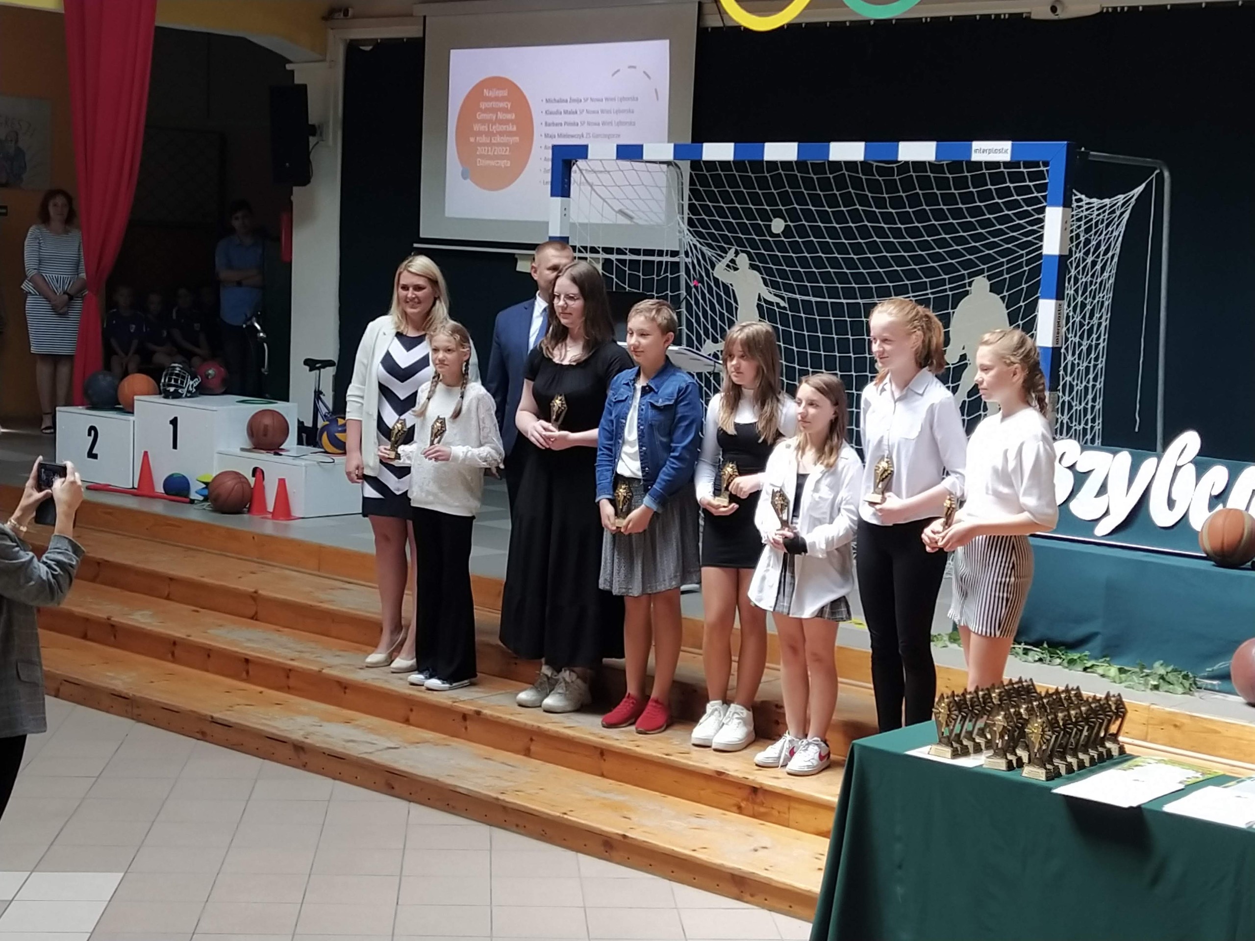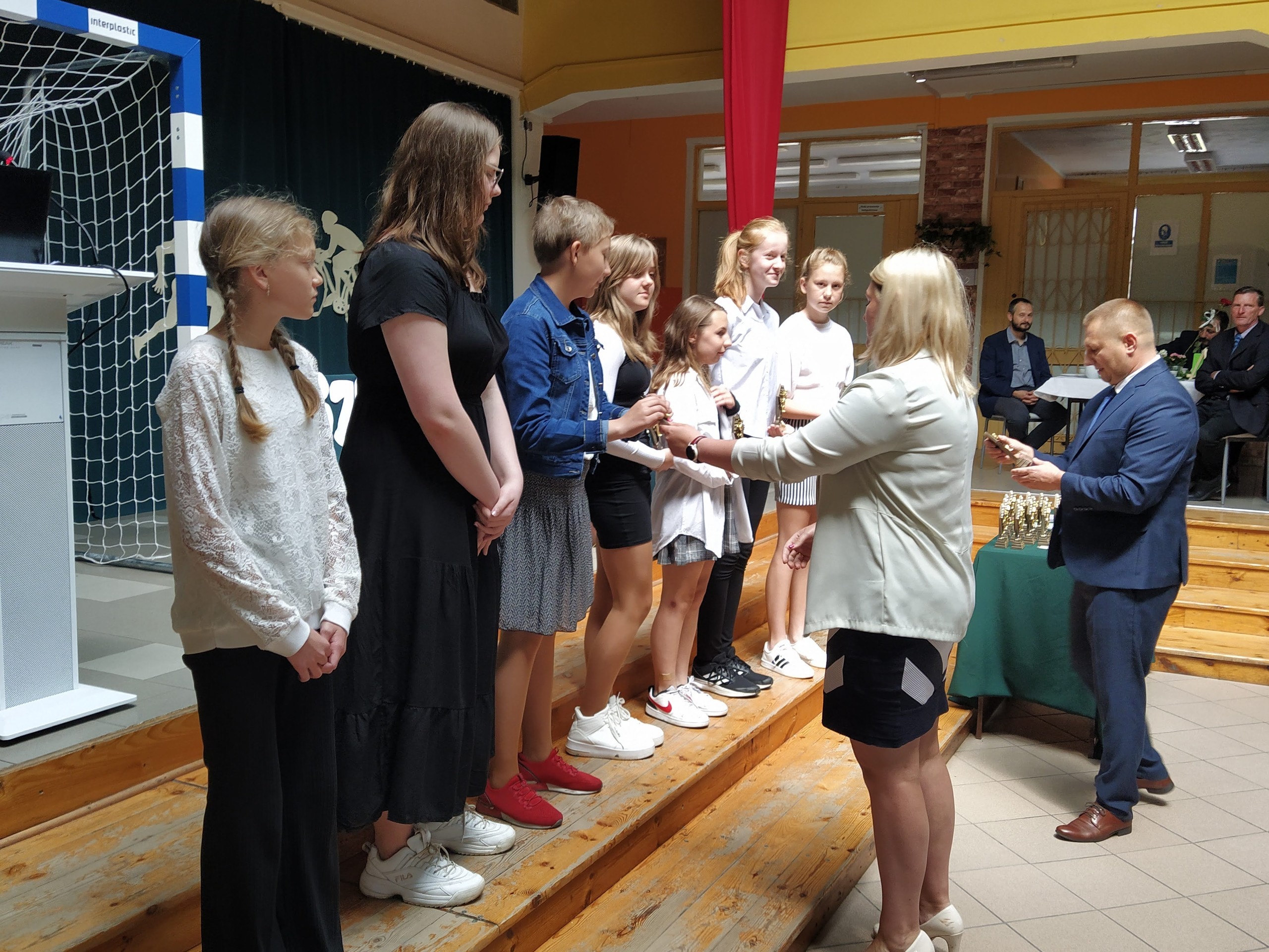 W dniu 22 czerwca w Szkole Podstawowej w Nowej Wsi Lęborskiej odbyła się Gala Sportu, czyli uroczyste podsumowanie roku sportowego Igrzysk Dzieci i Młodzieży. Na uroczystości obecni byli oficjele lokalnych władz, dyrektorzy szkół, nauczyciele wychowania fizycznego oraz bohaterowie dzisiejszego spotkania tj. sportowcy szkół podstawowych z terenu naszej gminy. Uczniowie otrzymali statuetki najlepszego sportowca. Na wszystkich czekał też słodki poczęstunek. W trakcie podsumowania czas umilały nam występy przygotowane przez uczniów ze szkoły w Nowej Wsi Lęborskiej. W klasyfikacji końcowej za rok 2021/2022 w Igrzyskach Dzieci nasza szkoła wywalczyła bardzo wysokie 5 miejsce w powiecie i 81 miejsce w województwie pomorskim (na 338 szkół). Jeszcze raz gratulujemy sukcesów sportowych naszym uczniom.
