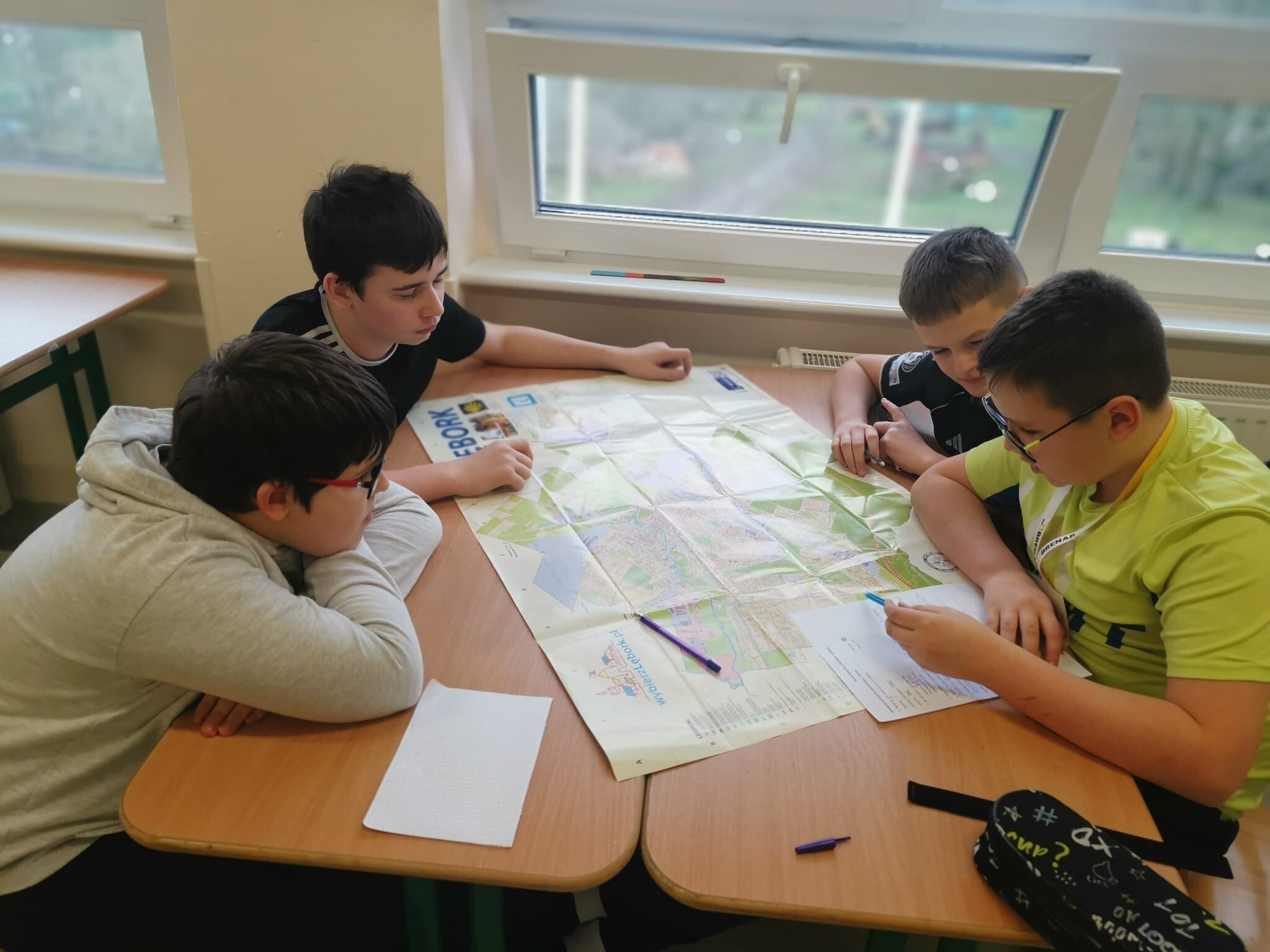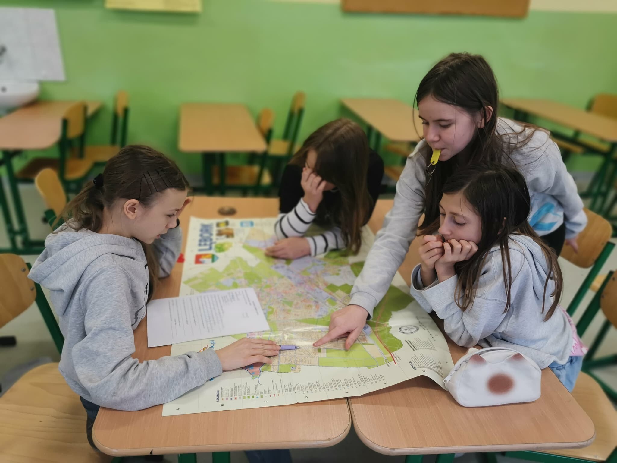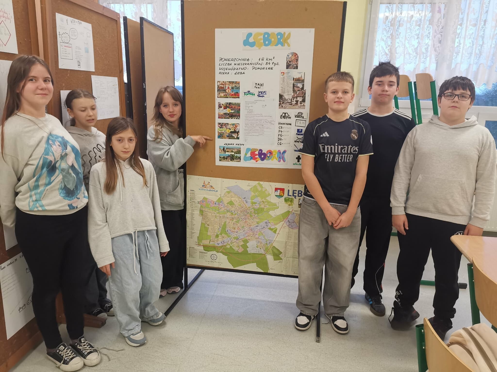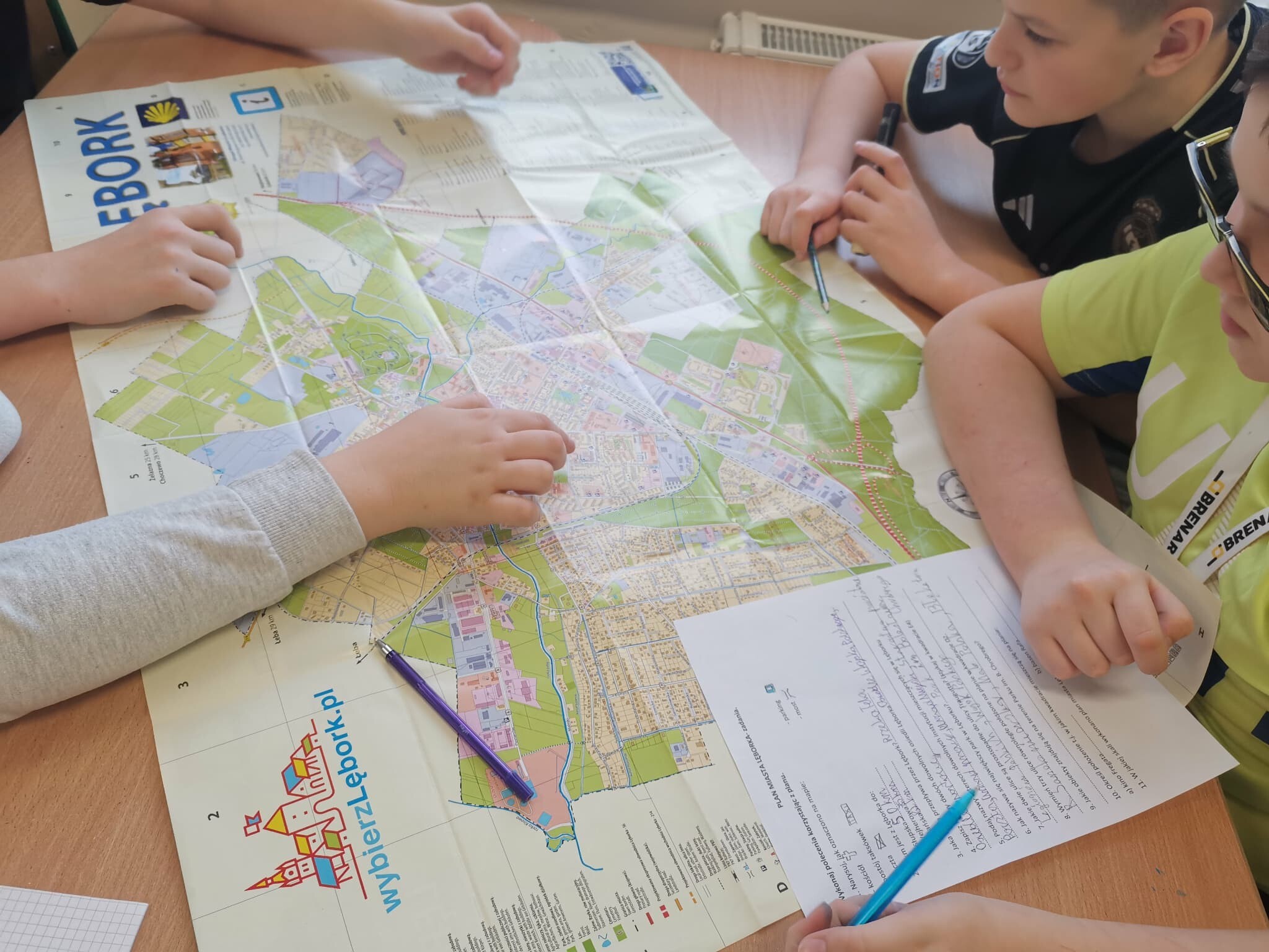 Ostatnie zajęcia matematyczne z projektu w klasie 6 były związane z Lęborkiem. To miasto oddalone około 11 km od Garczegorza. Na początku zajęć odbyła się krótka pogadanka na temat tego, co warto zobaczyć i jak można spędzić czas w tym miejscu. Następnie uczniowie wykonywali kolejne zadania z karty pracy przygotowanej przez p. B. Granzin. Wykorzystując plan miasta Lęborka szukali ulic prostopadłych i równoległych, określali położenie obiektów, obliczali długości ulic na podstawie skali...