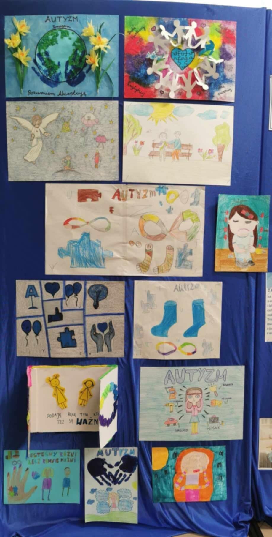 W naszej szkole cały tydzień poszerzaliśmy wiedzę w zakresie autyzmu, dużo rozmawialiśmy, oglądaliśmy, a także wykonywaliśmy prace plastyczne. Odbył się również Konkurs Plastyczny "Z autyzmem za pan brat", który był przeznaczony dla uczniów przedszkoli oraz klas 1-3. Prace wykonali :