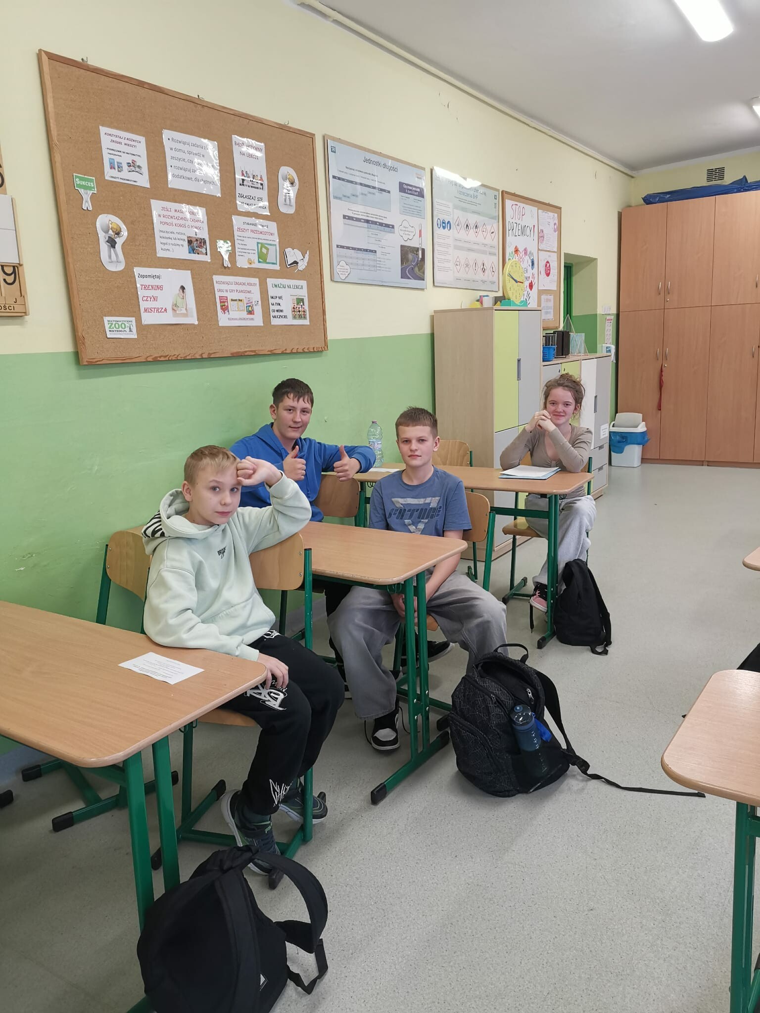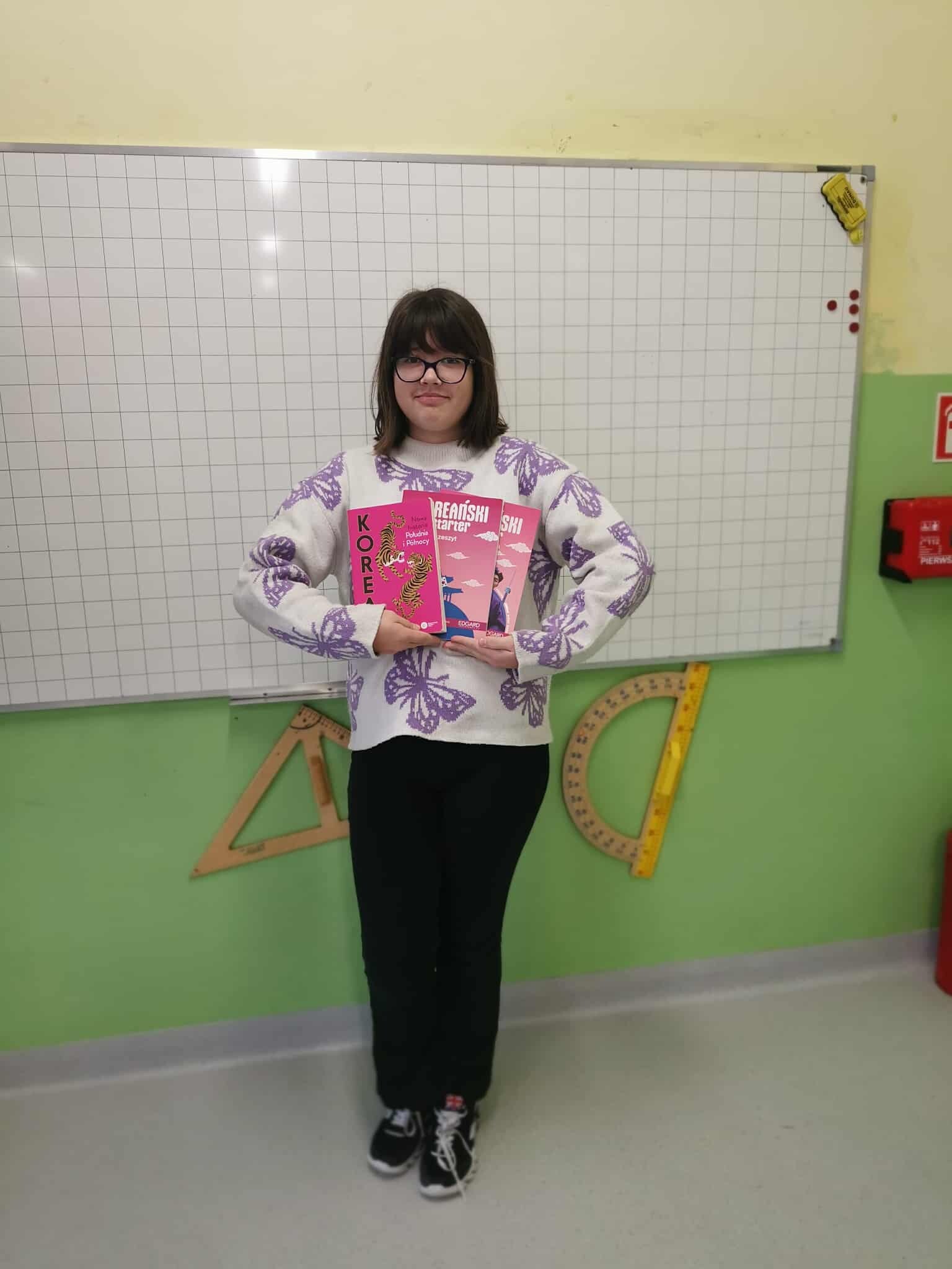 Kolejna lekcja wychowawcza w klasie szóstej była okazją, by zaprezentować swoje zainteresowania. Tym razem wystąpiła Karolina Piórowicz, która sama uczy się języka koreańskiego. Uczennica korzysta z książek, które otrzymała w prezencie od członków rodziny. Karolina ogląda (na Tik Toku) filmiki osób, które mówią po koreańsku i po polsku oraz ogląda filmy w tym języku z polskim napisami. Trzeba przyznać, że nie jest łatwo opanować język koreański. Mieliśmy okazję się o tym przekonać, gdy Karolina wypowiadała różne zwroty. Próbowaliśmy wspólnie powtarzać, tylko z jakim skutkiem...