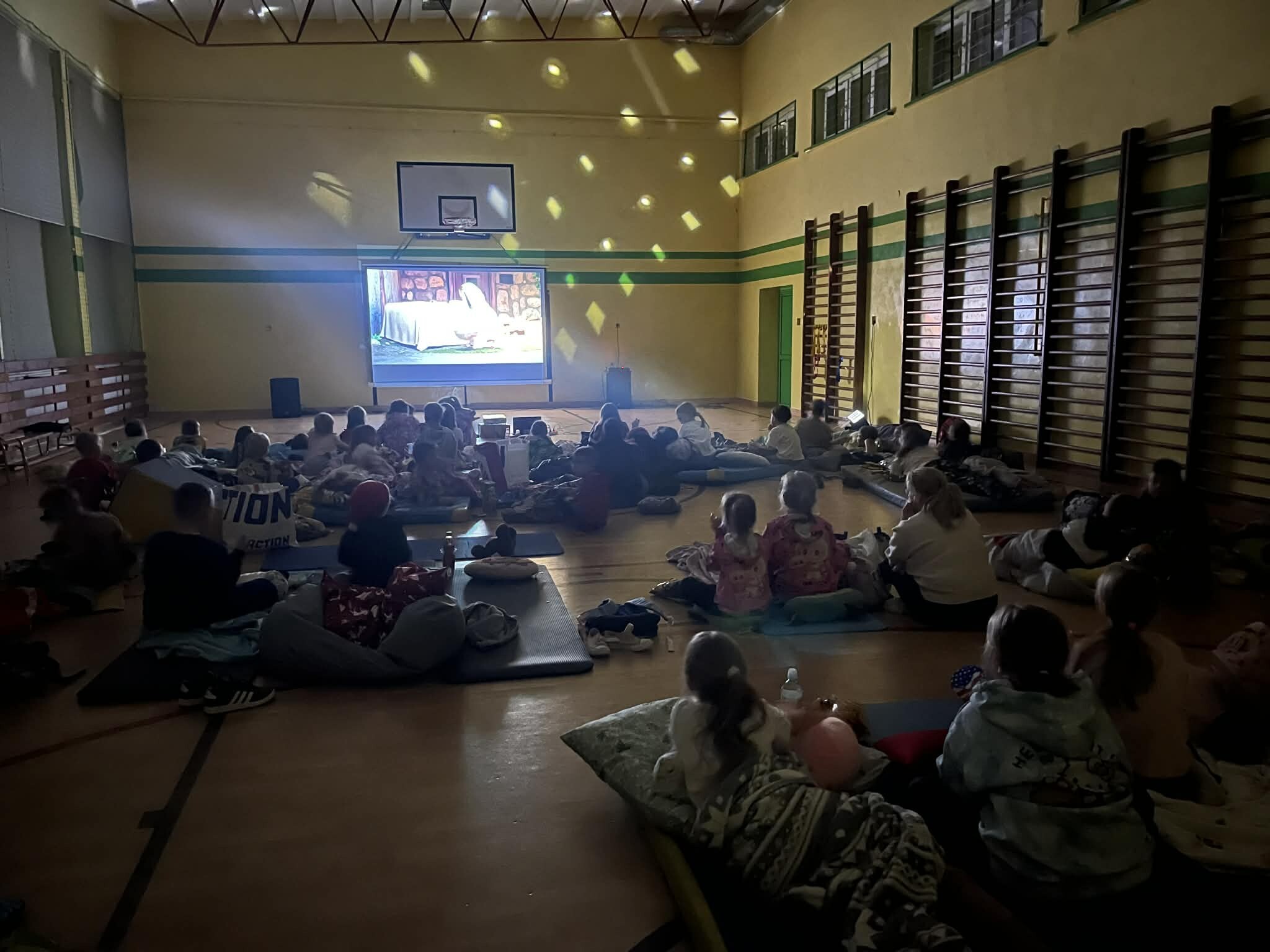 Uczniowie poczuli prawdziwy klimat kina pod chmurką, ponieważ nie siedzieli na tradycyjnych krzesłach. Każdy mógł ułożyć się w dowolnej, wygodnej pozycji na materacach, karimatach czy śpiworach – co sprawiło, że atmosfera była wyjątkowa i sprzyjała relaksowi. Nie zabrakło też tradycyjnych „kinowych przekąsek", które wszyscy przynieśli i chętnie podjadali w trakcie seansów.