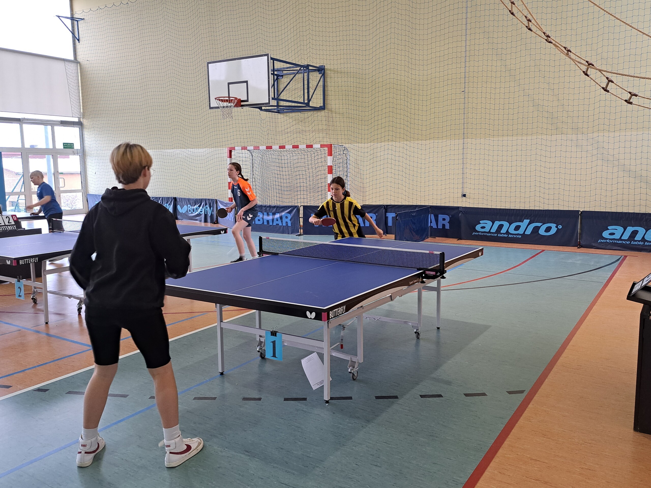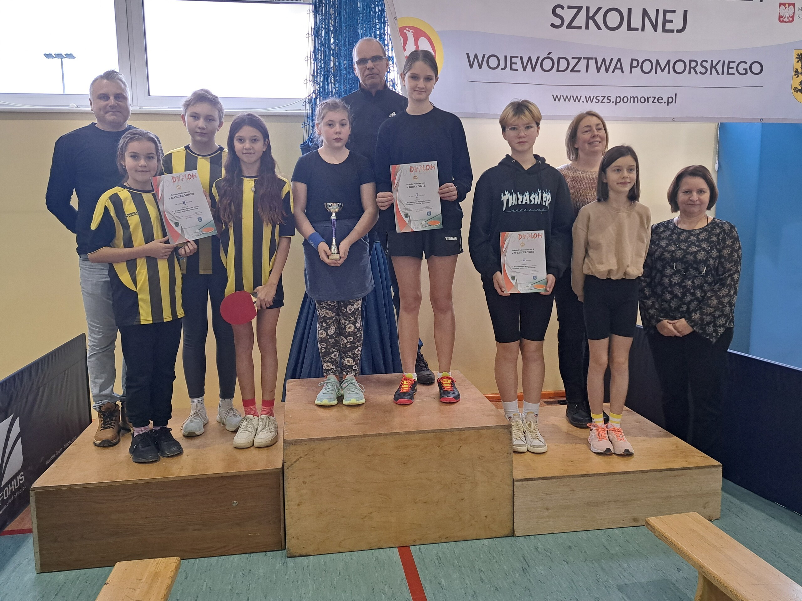 Uczennice z naszej szkoły w składzie Amelia Gerc, Zuzanna Kadłubowska i Sandra Labuda zajęły wspaniałe 2 miejsce w półfinale wojewódzkim w tenisie stołowym. Był to kolejny etap w ramach Igrzysk Dzieci objętych wojewódzkim kalendarzem sportowym. Tym razem dziewczęta rywalizowały z mistrzyniami powiatu wejherowskiego, puckiego i kartuskiego.Przegrały decydujący mecz o 1 miejsce z drużyną, która miała w swoim składzie zawodniczkę sklasyfikowaną na 9 miejscu w Polsce. Gratulujemy!!