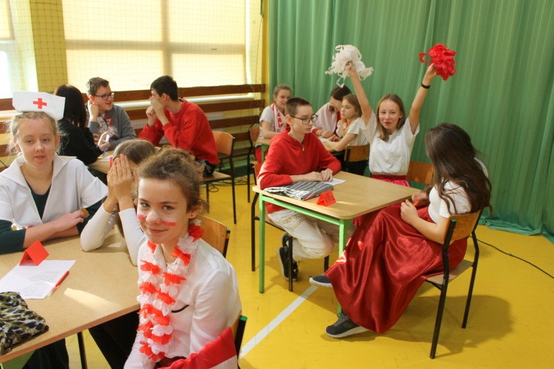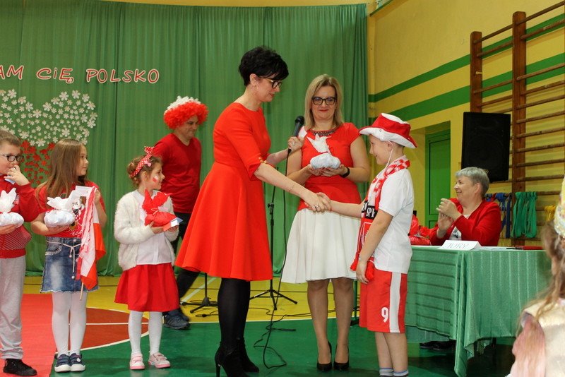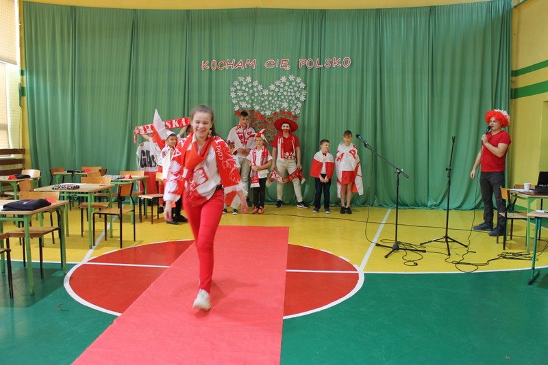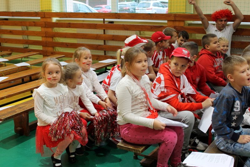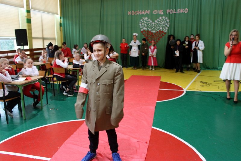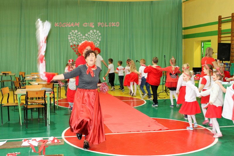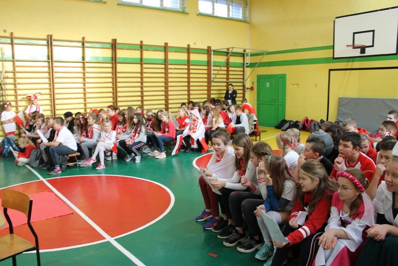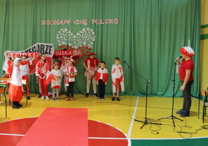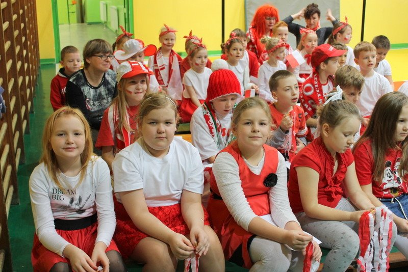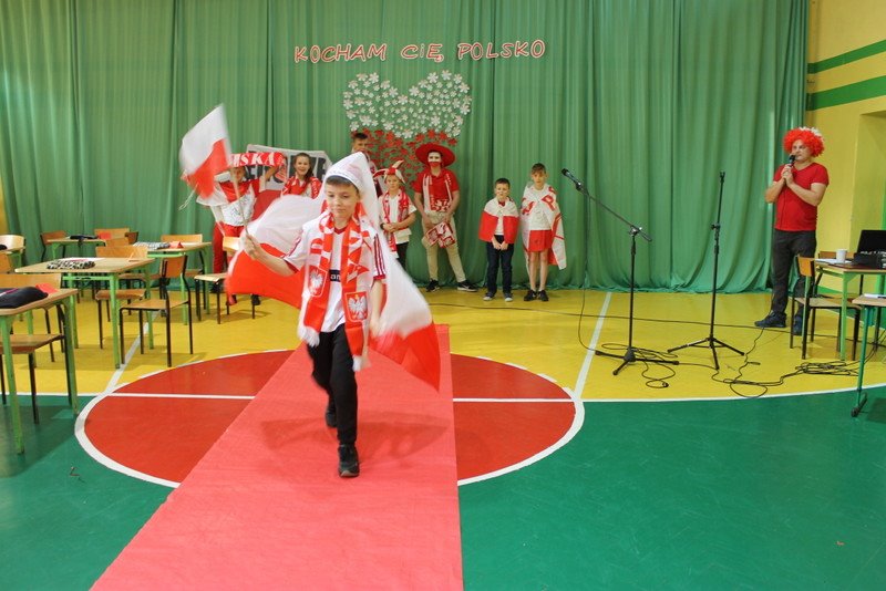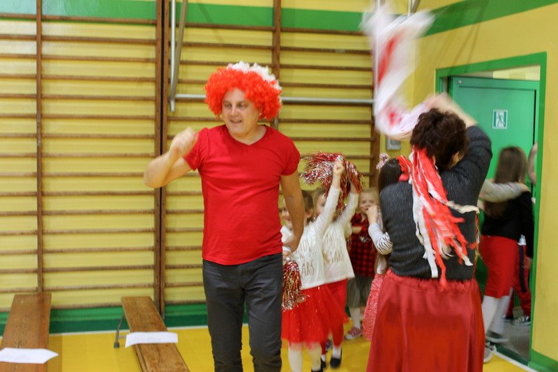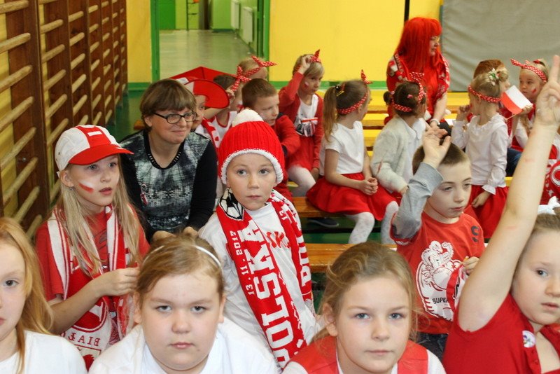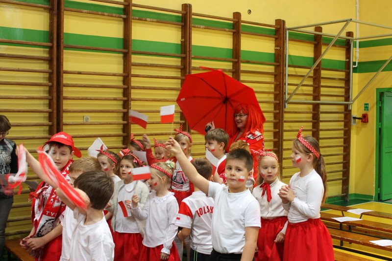 Listopad to miesiąc, który kojarzyć nam się będzie z odzyskaniem przez Polskę niepodległości. I z tej okazji w naszej szkole został zorganizowany turniej "Kocham Cię Polsko". W czwartek,28 listopada, od samego rana widać było,że dzień będzie wyjątkowy. Dzieci pięknie ubrane, w nasze barwy narodowe, z niecierpliwością czekały na turniej. Odbył się on oddzielnie dla klas "O" - III i oddzielnie dla klas IV- VIII. Przewodnią piosenką był przebój "Kocham Cię Polsko", który uczniowie z wielkim entuzjazmem śpiewali. Atmosfera była wspaniała, dzieci chętnie brały udział w konkurencjach, przedstawiały wylosowane wcześniej postaci związane z historią Polski. Odwiedził nas sam Adam Mickiewicz, Fryderyk Chopin, Mikołaj Kopernik, Józef Piłsudski, Powstaniec warszawski, Irena Sendlerowa, Maria Curie - Skłodowska, królowa Bona i królowa Jadwiga. Dzieci układały puzzle, rysowały z zawiązanymi oczami kontur Polski, odgadywały zagadki historyczne, na czerwonym dywanie prezentowali się super kibice. Jury miało ciężki orzech do zgryzienia, nikt ostatecznie nie wyszedł bez nagrody. Słodkie cukiereczki otrzymała każda klasa, oprócz tego atrakcją były nagrody w postaci dnia bez jedynki bez kartkówki czy ze swoją zabawką (zeróweczka). Dziękujemy wszystkim za świetną zabawę.