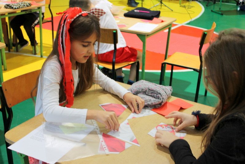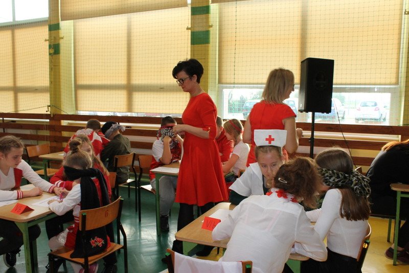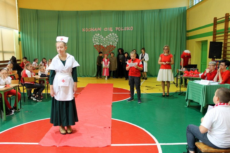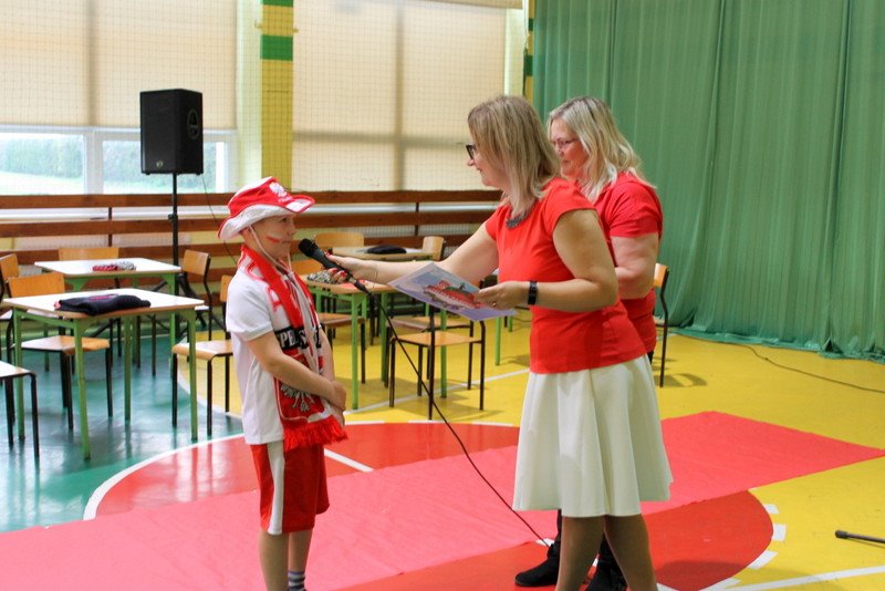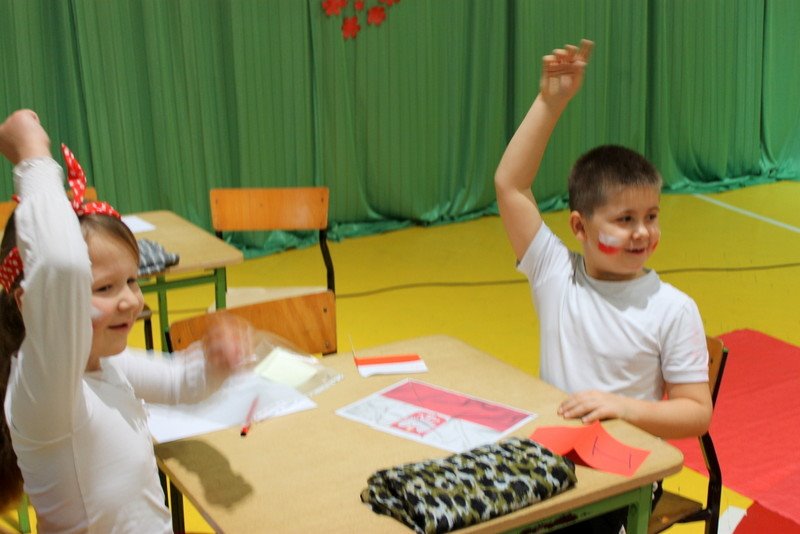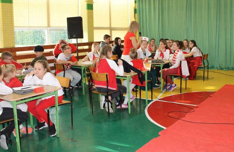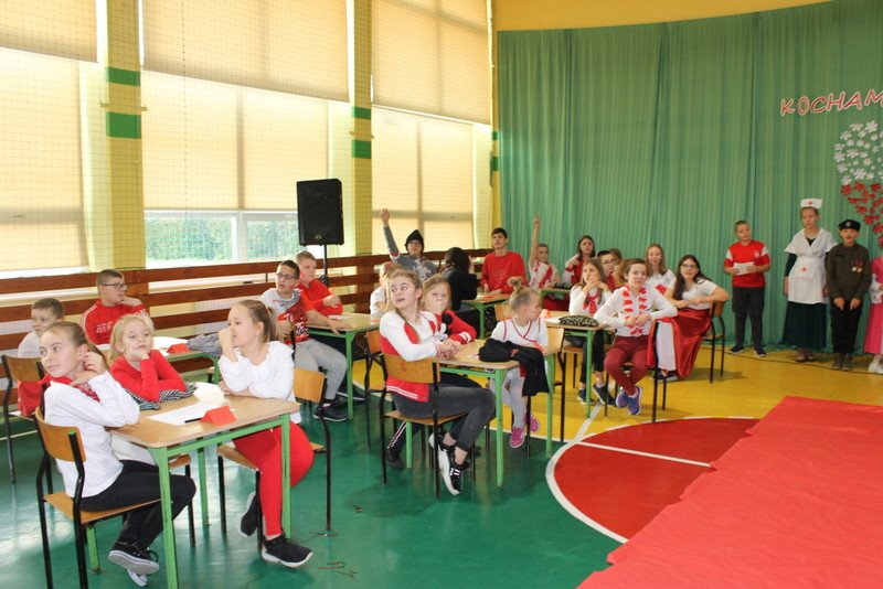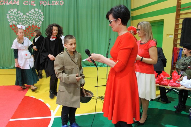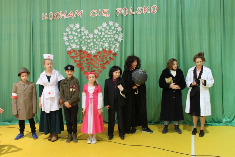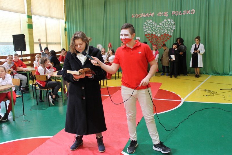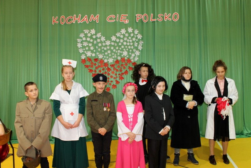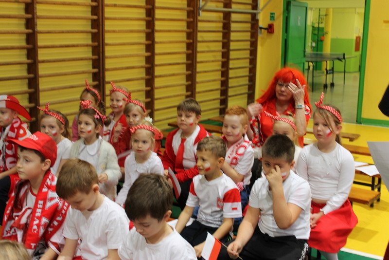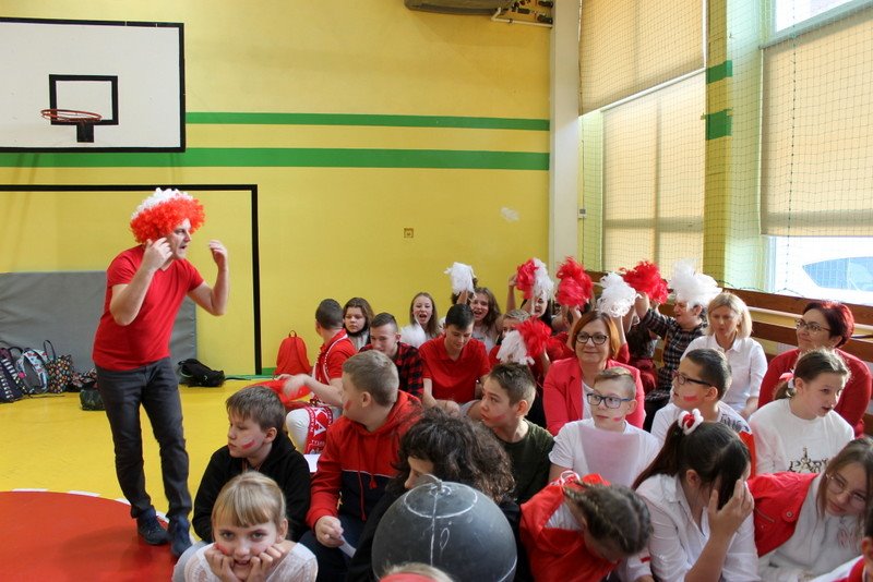 Listopad to miesiąc, który kojarzyć nam się będzie z odzyskaniem przez Polskę niepodległości. I z tej okazji w naszej szkole został zorganizowany turniej "Kocham Cię Polsko". W czwartek,28 listopada, od samego rana widać było,że dzień będzie wyjątkowy. Dzieci pięknie ubrane, w nasze barwy narodowe, z niecierpliwością czekały na turniej. Odbył się on oddzielnie dla klas "O" - III i oddzielnie dla klas IV- VIII. Przewodnią piosenką był przebój "Kocham Cię Polsko", który uczniowie z wielkim entuzjazmem śpiewali. Atmosfera była wspaniała, dzieci chętnie brały udział w konkurencjach, przedstawiały wylosowane wcześniej postaci związane z historią Polski. Odwiedził nas sam Adam Mickiewicz, Fryderyk Chopin, Mikołaj Kopernik, Józef Piłsudski, Powstaniec warszawski, Irena Sendlerowa, Maria Curie - Skłodowska, królowa Bona i królowa Jadwiga. Dzieci układały puzzle, rysowały z zawiązanymi oczami kontur Polski, odgadywały zagadki historyczne, na czerwonym dywanie prezentowali się super kibice. Jury miało ciężki orzech do zgryzienia, nikt ostatecznie nie wyszedł bez nagrody. Słodkie cukiereczki otrzymała każda klasa, oprócz tego atrakcją były nagrody w postaci dnia bez jedynki bez kartkówki czy ze swoją zabawką (zeróweczka). Dziękujemy wszystkim za świetną zabawę.