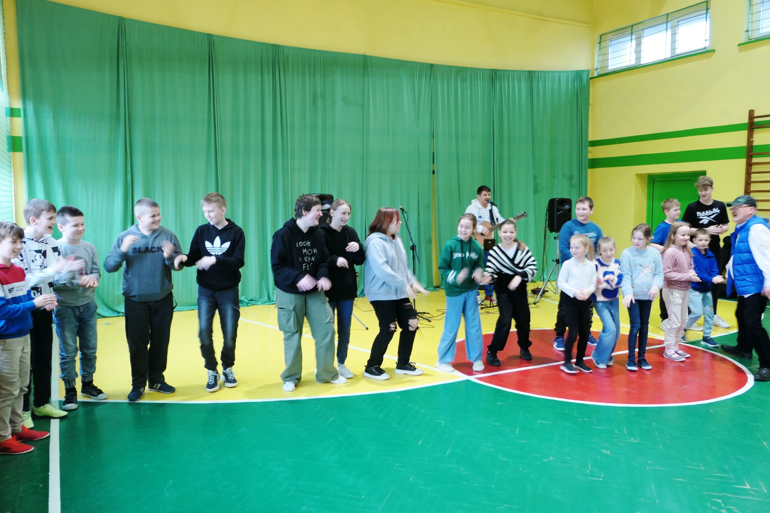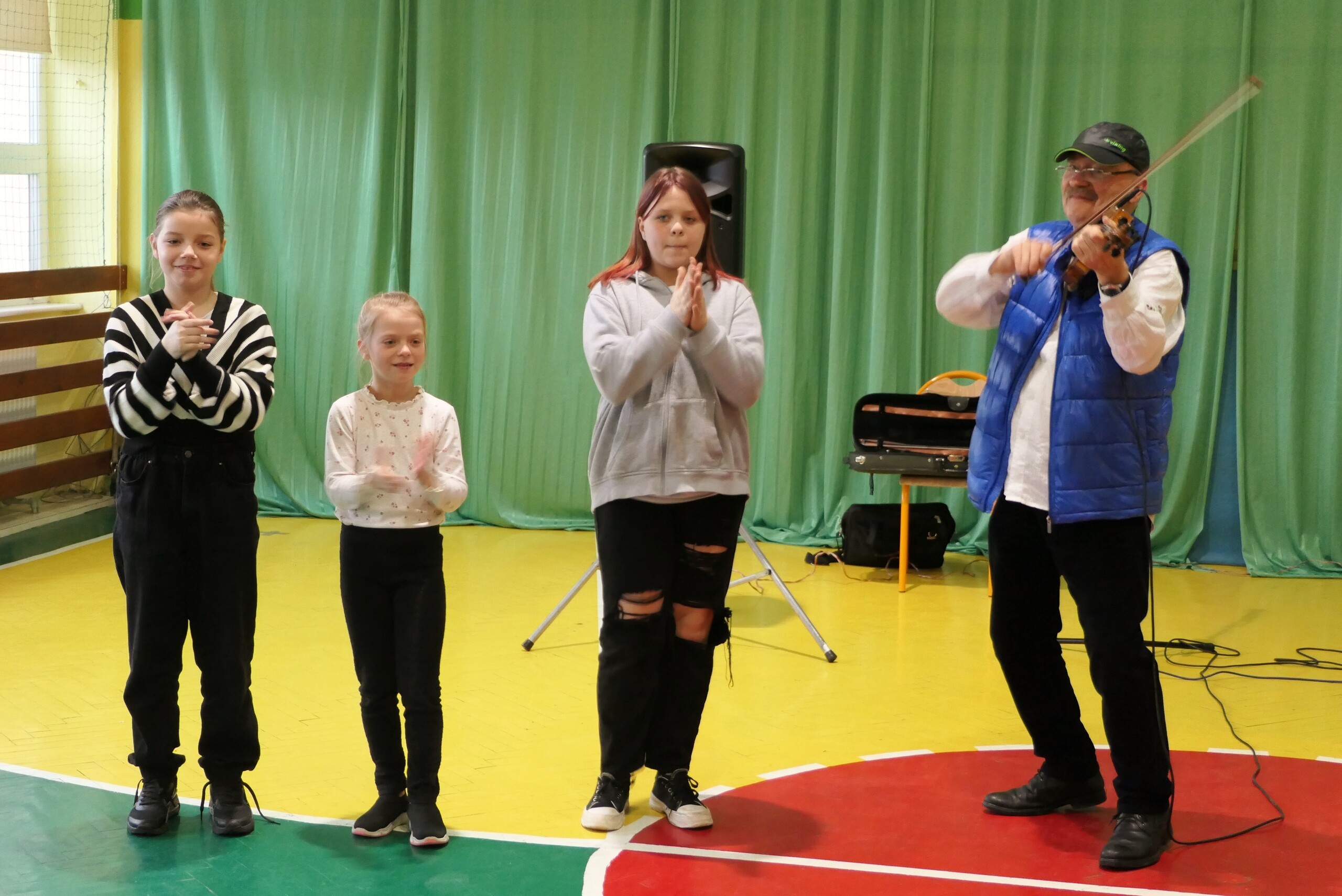 31marca odbył się w naszej szkole koncert okazji Dnia Jedności Kaszubów w wykonaniu pana Leszka Boliboka grającego na skrzypcach oraz pana Rafała Rompcy grającego na gitarze. Obaj panowie są członkami zespołu i przedstawiają muzykę folkową: irlandzką, bretońską i szkocką. Zespół może się również pochwalić tworzeniem własnych kompozycji do tekstów w języku kaszubskim. Szanty i pieśni morskie również znajdują się w repertuarze tego zespołu. Podczas koncertu nasi uczniowie mieli okazję śpiewać, tańczyć i zademonstrować tekst piosenki w języku kaszubskim. Koncert był wspaniałą okazją do ujrzenia naszej rodzimej kultury kaszubskiej na tle folkloru z innych krajów. Nogi i ręce same rwały się wszystkim do tańca.