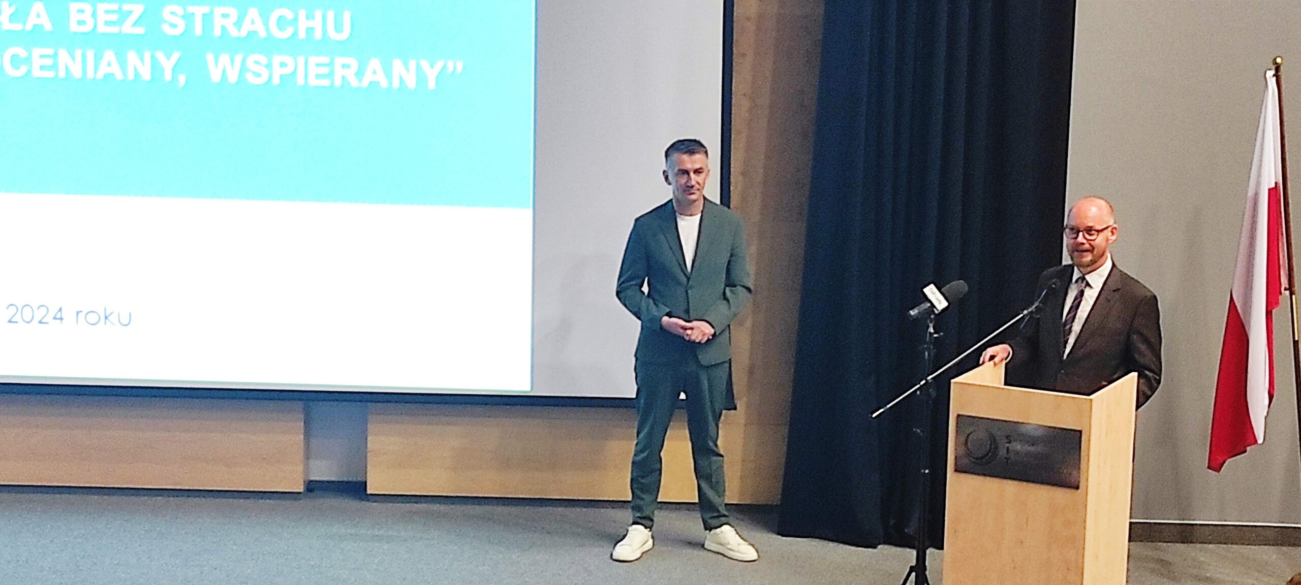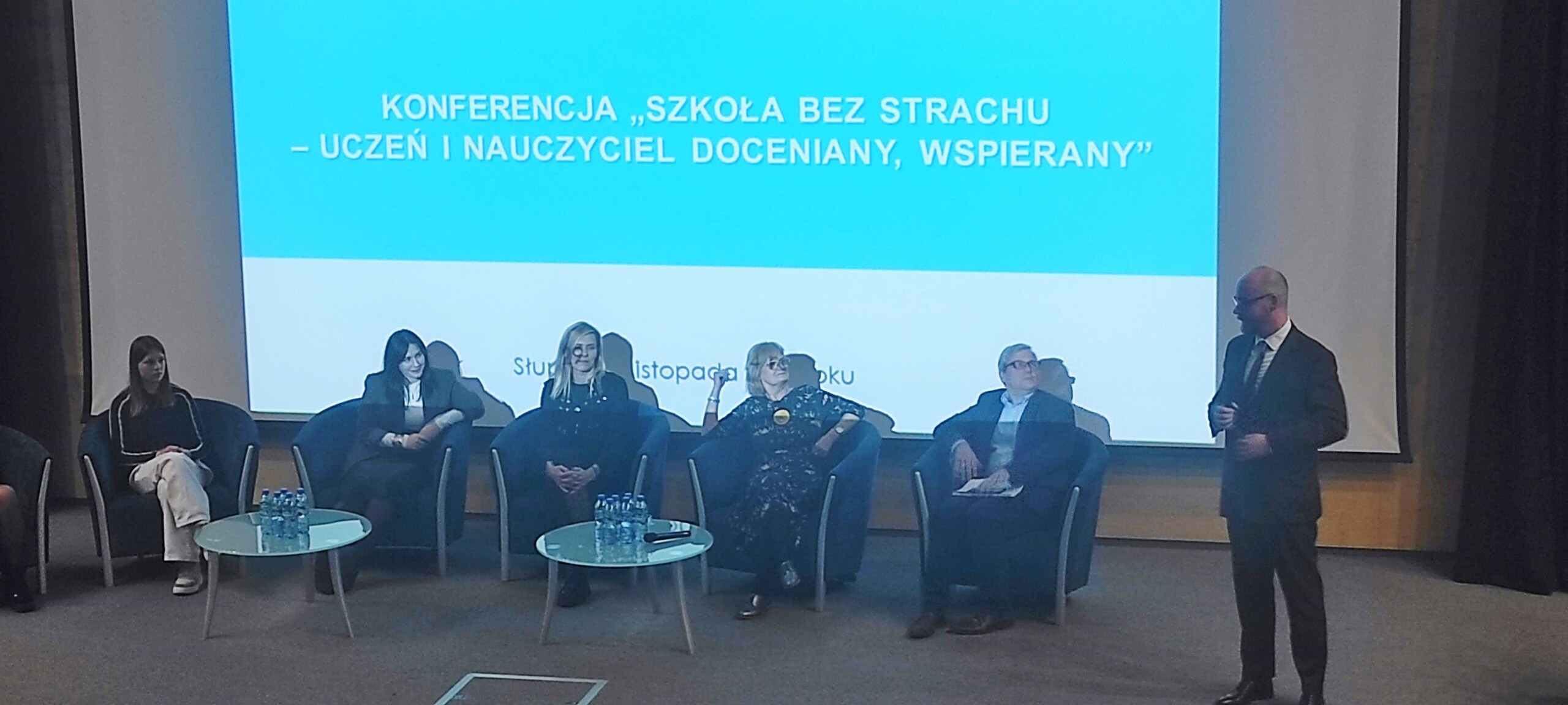 29.11.24r. pięcioosobowa delegacja (dwoje uczniów i nauczycieli) z panią dyrektor na czele, wzięła udział w w konferencji "Szkoła bez strachu - uczeń i nauczyciele doceniany, wspierany". Spotkanie delegacji z całego województwa zaszczyciła również Pani Ministra Edukacji Barbara Nowacka i Pomorski Kurator Oświaty p. Grzegorz Kryger. Tematem konferencji było zastosowanie w edukacji oceniania kształtującego (bez wstawiania ocen!).