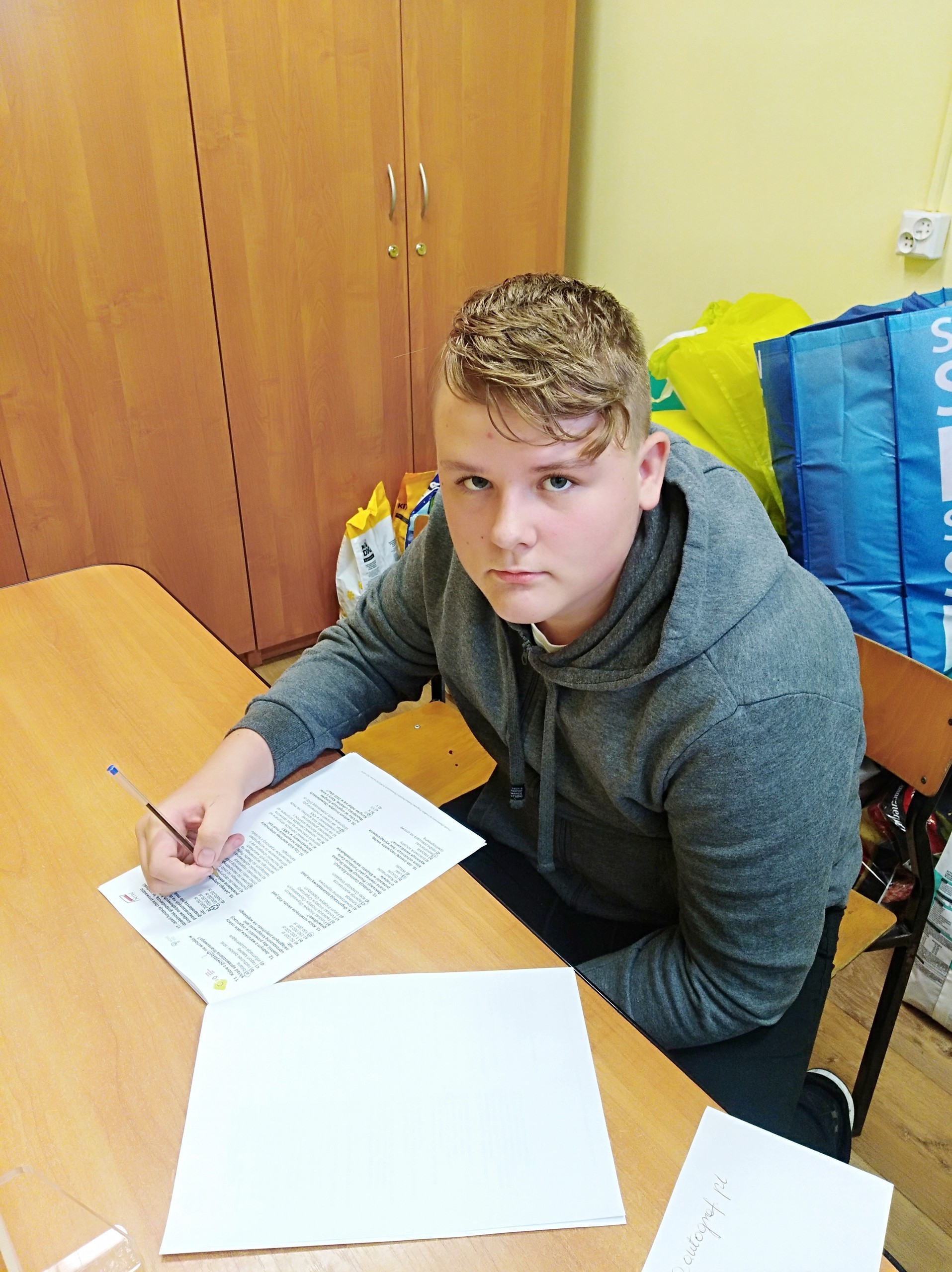 Należało wykazać się wiedzą m.in. o ustawach dotyczących wolontariatu, stowarzyszeń, działalności pożytku publicznego.Aby zakwalifikować się do II etapu trzeba było stworzyć projekt społeczny. Wiktor przygotował prezentację o wolontariacie.