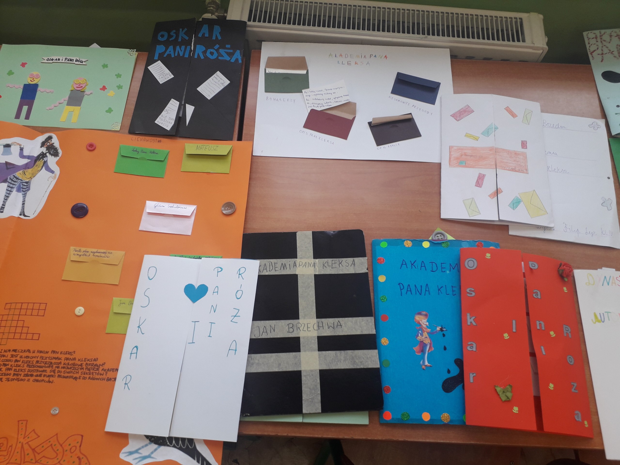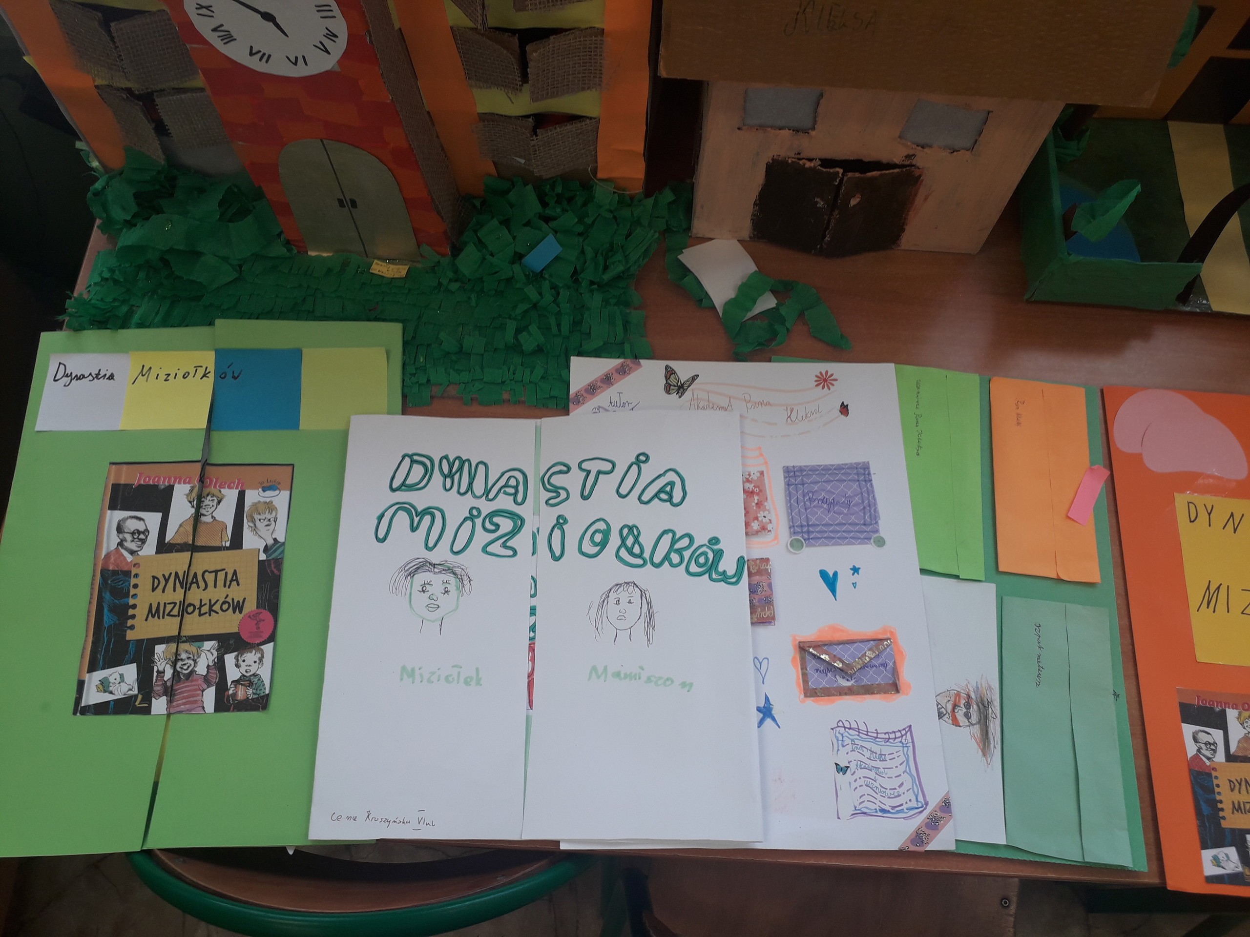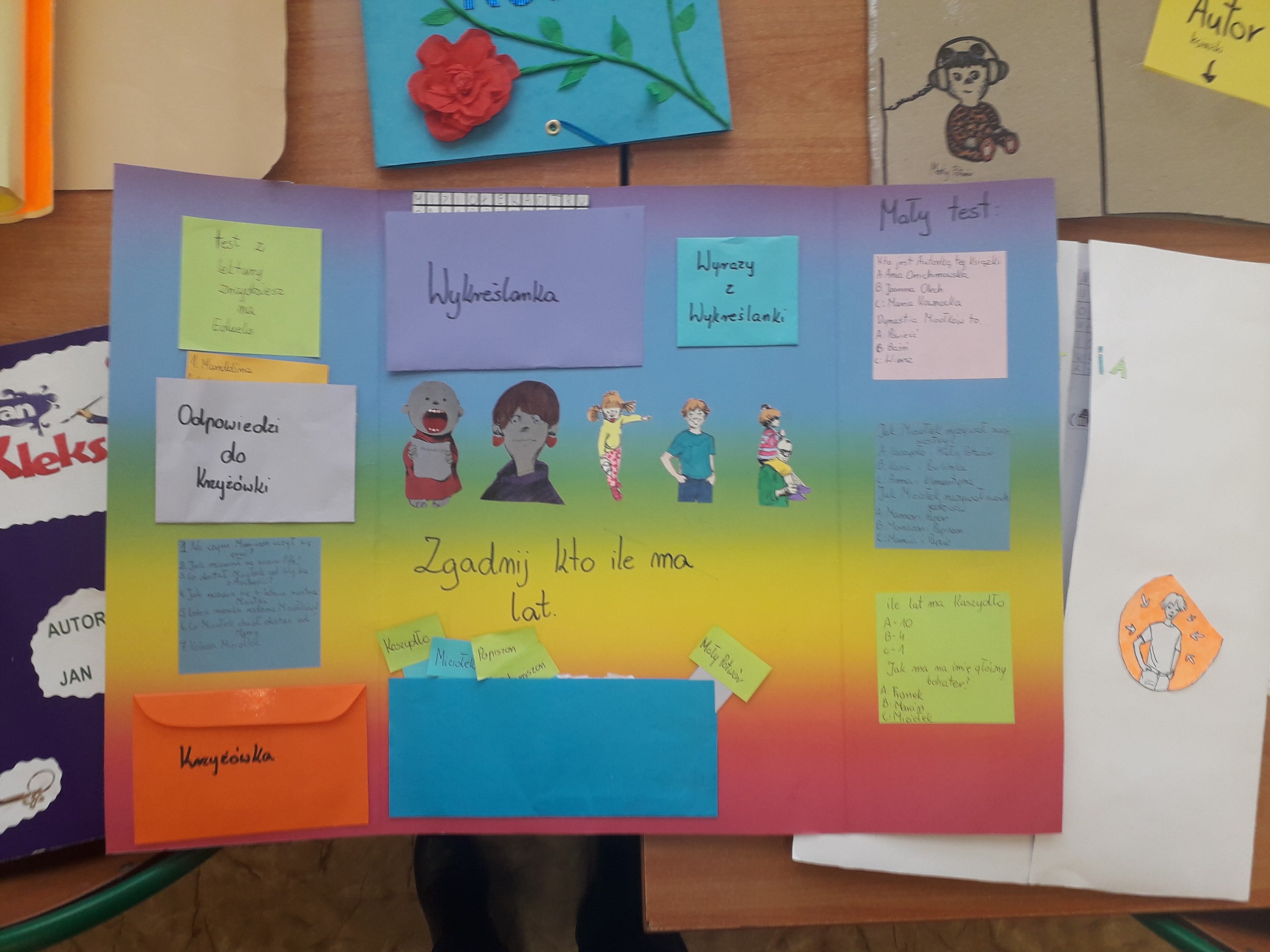 Klasa 4, 6 i 8a pracowały ostatnio nad lekturami. W kl.4 była to Akademia Pana Kleksa, w kl.6- Dynastia Miziołków, w kl.8a- Oskar i Pani Róża. Aby uporządkować informacje o bohaterach, wydarzeniach i autorach tych książek, uczniowie wykonali lapbooki, czyli tzw. książki na kolanie. Prace były pięknie wykonane, rzetelnie przygotowane i zawierały wiele informacji i ciekawostek dotyczących przerabianych lektur. Uczniowie wykazali się ogromną pomysłowością w zastosowaniu różnych form przekazania tego, co w lekturach było wg nich najciekawsze i co im się najbardziej podobało. Kilku czwartaków przygotowało także modele akademii, do której trafił Adaś Niezgódka. Wszystkie prace znalazły się na wystawie w naszej szkolnej bibliotece. Brawo za kreatywność !!!