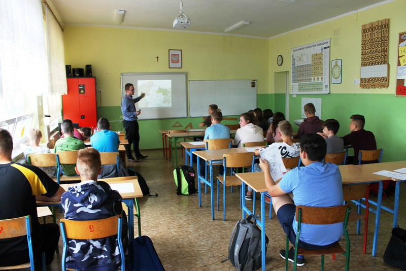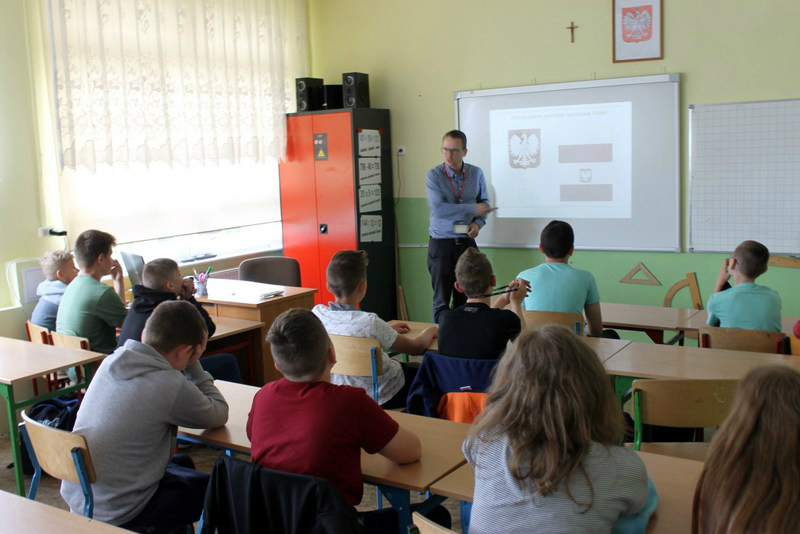 Dnia 22 maja naszą szkołę odwiedził Pan Daniel Sieczkowski z Instytutu Pamięci Narodowej z Gdańska. Pan Daniel poprowadził zajęcia z klasą siódmą na temat "Zbrodnia w Piaśnicy". Młodzież z zainteresowaniem słuchała prelekcji o tak ciężkiej tematyce, związanej z naszym najbliższym regionem. Klasy IV, V, i VI miały okazję natomiast uczestniczyć w bardzo pouczających zajęciach na temat "Z flagą narodową przez najnowszą historię Polski". Współpraca z Instytutem Pamięci Narodowej to jedno z wielu działań związanych z tegoroczną 100 rocznicą Odzyskania Niepodległości przez Polskę.
