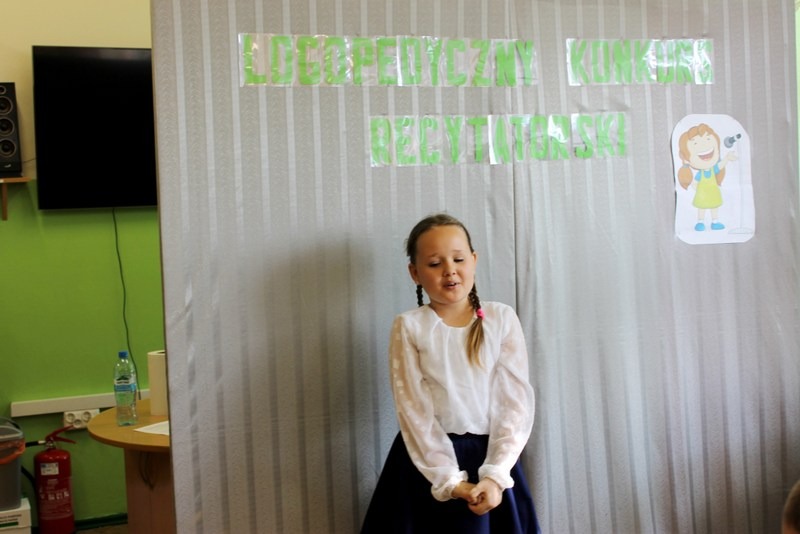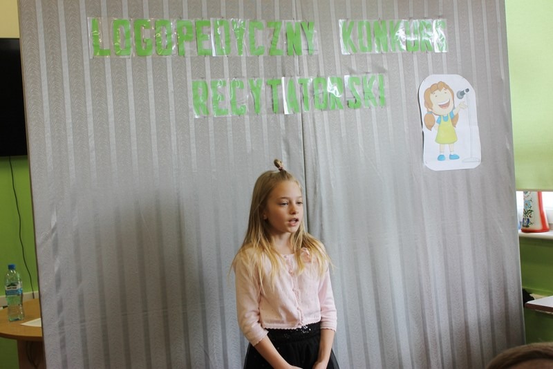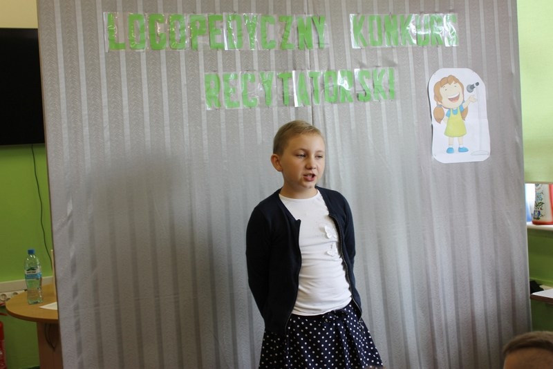 16 maja 2019r. odbył się logopedyczny konkurs recytatorski. Do konkursu przystąpiło 25 uczniów. Uczestnicy recytowali wiersze z zakresu literatury dla dzieci, wybrane przez siebie jak również przez logopedę w przypadku osób uczęszczających na terapię logopedyczną...