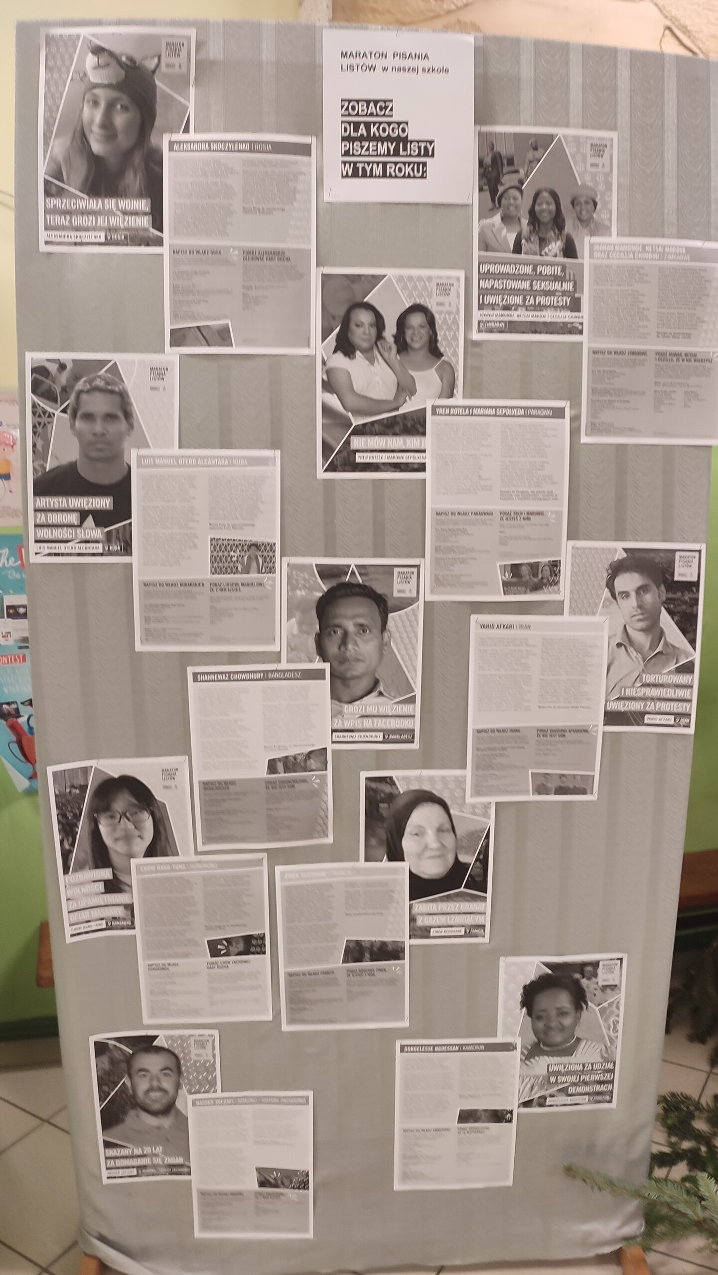 - napisać list w domu (korzystając z wzoru listu na stronie Maratonu lub napisać słowa wsparcia dla więzionych) i dostarczyć do szkoły do 12 XII, a zostanie on wysłany