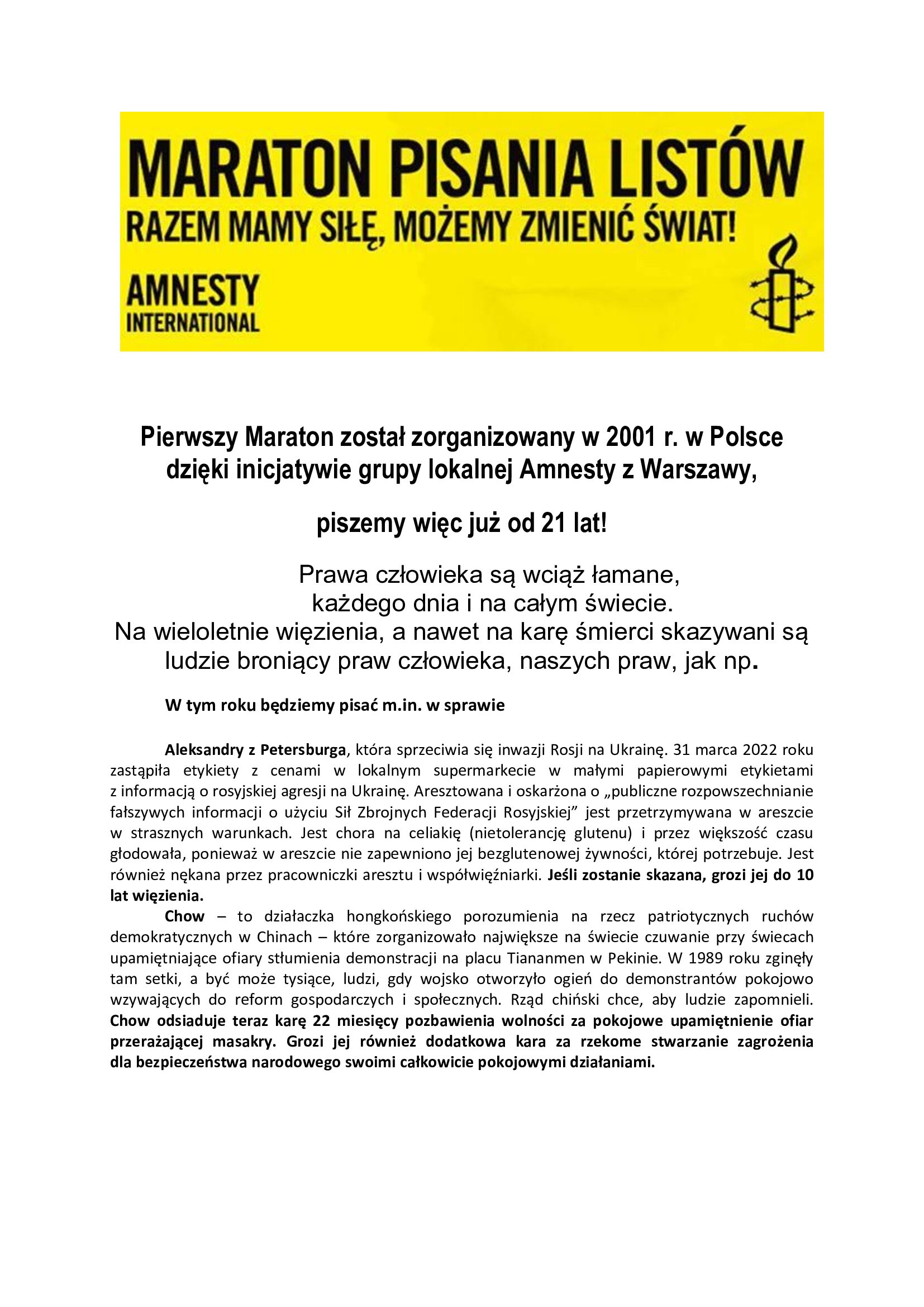 Maraton Pisania Listów to inicjatywa Polaków, działaczy Amnesty International.