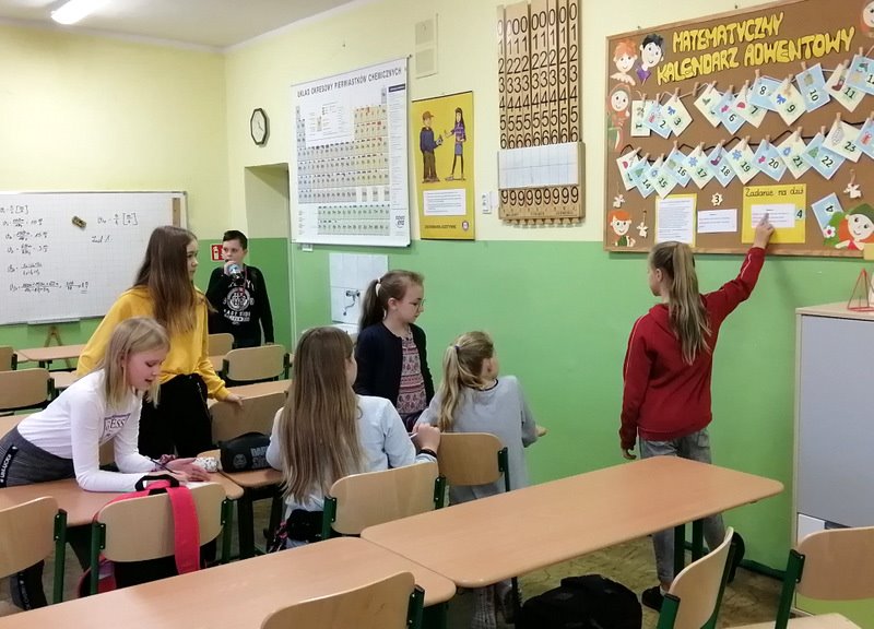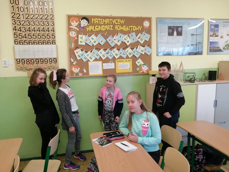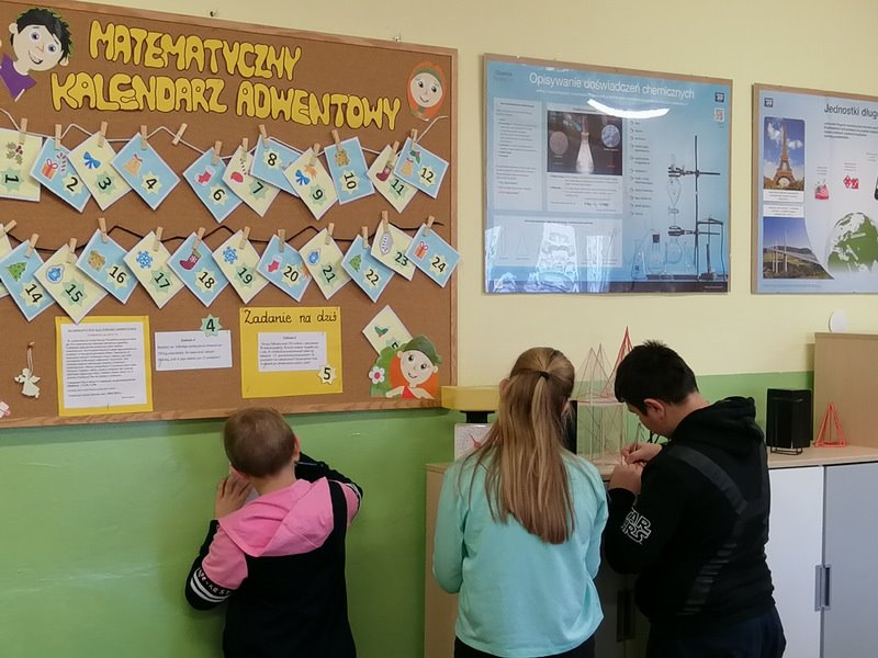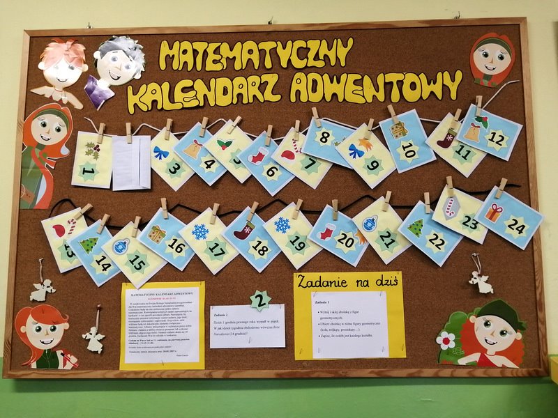 W oczekiwaniu na Święta Bożego Narodzenia uczniowie klas IV-VI uczestniczą w konkursie: Matematyczny kalendarz adwentowy. Na każdy dzień przygotowano jedno zadanie! Codziennie, w sali nr 11, na dużej przerwie spotykają się chętni uczniowie, którzy przepisują z gazetki jedno zadanie matematyczne i wykonują je potem w domu. Rozwiązania kolejnych zadań zaprezentują na kartkach i w ten sposób powstanie album. Koniecznie muszą tam umieścić informacje: numer zadania, jego treść, rozwiązanie (obliczenia) i odpowiedź. Oczywiście mile widziane będą też dekoracyjne elementy świąteczno - matematyczne. Albumy mogą być wykonane w dowolnym formacie. Ostatnie zadanie ukaże się 20 grudnia. Ostateczny termin zbierania prac: 10.01.2019 r. Zachęcam do udziału w konkursie!