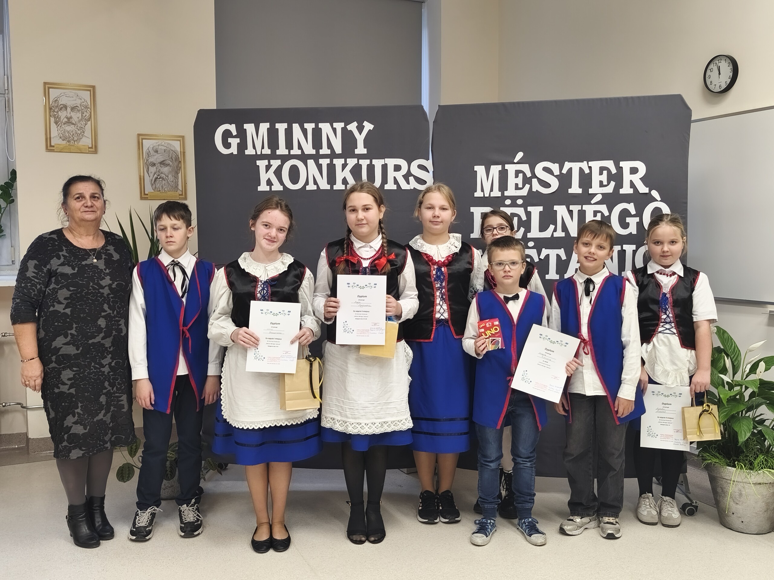 26 listopada uczniowie naszej szkoły po raz kolejny wzięli udział w Gminnym Konkursie Czytania-„Méster Bëlnégò Czëtaniô”. Uczniowie prezentowali się w czterech kategoriach wiekowych. Po wylosowaniu tekstu uczniowie odczytali tekst przed komisją konkursową. Wśród laureatów byli także nasi uczniowie: