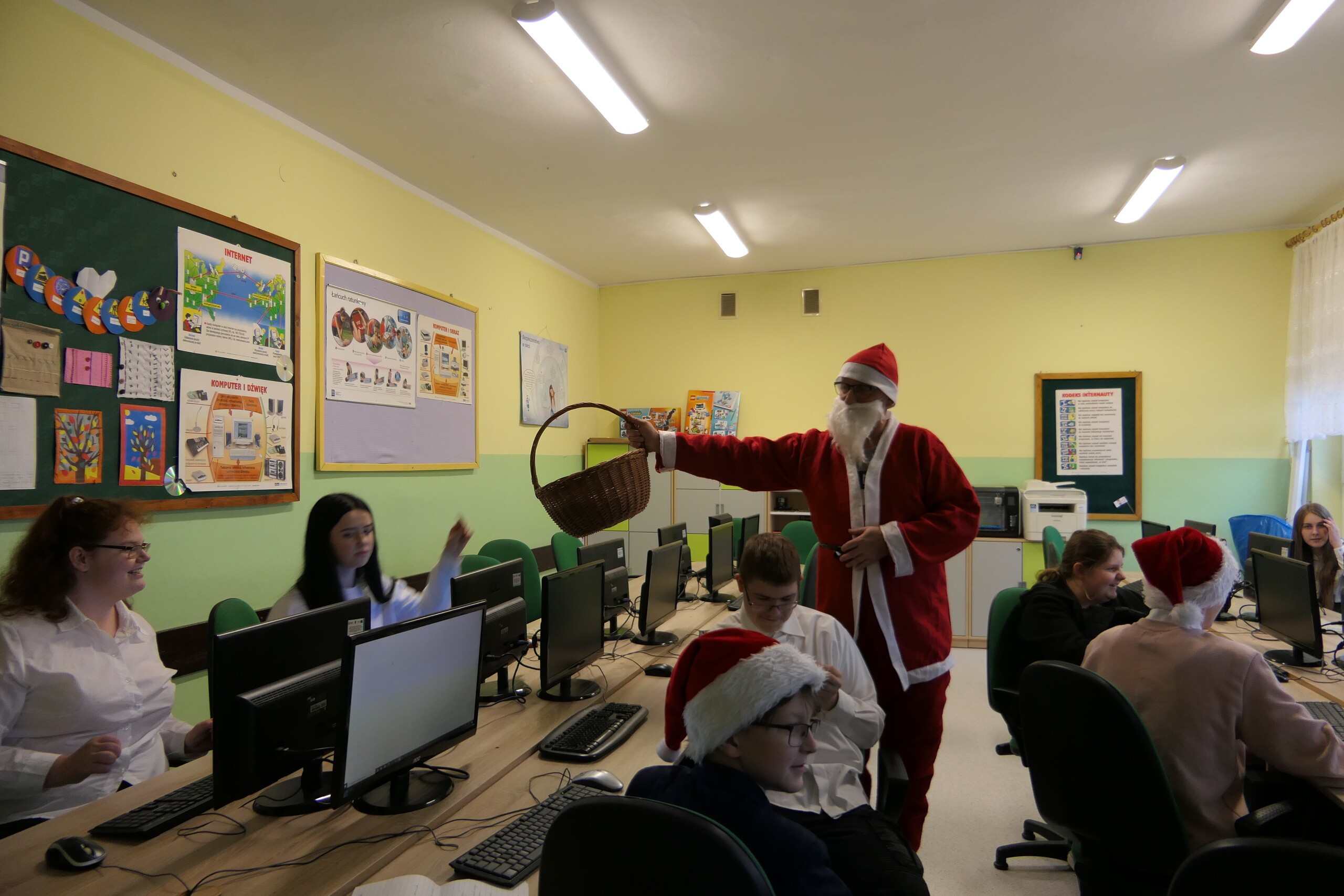 6 grudnia jak wszyscy wiecie Mikołaj chodzi po świecie oczywiście zawitał również w naszej szkole i rozdał każdemu po małym upominku. Uczniowie klasy pierwszej, drugiej i trzeciej przywitały Mikołaja śpiewając piosenkę świąteczną.