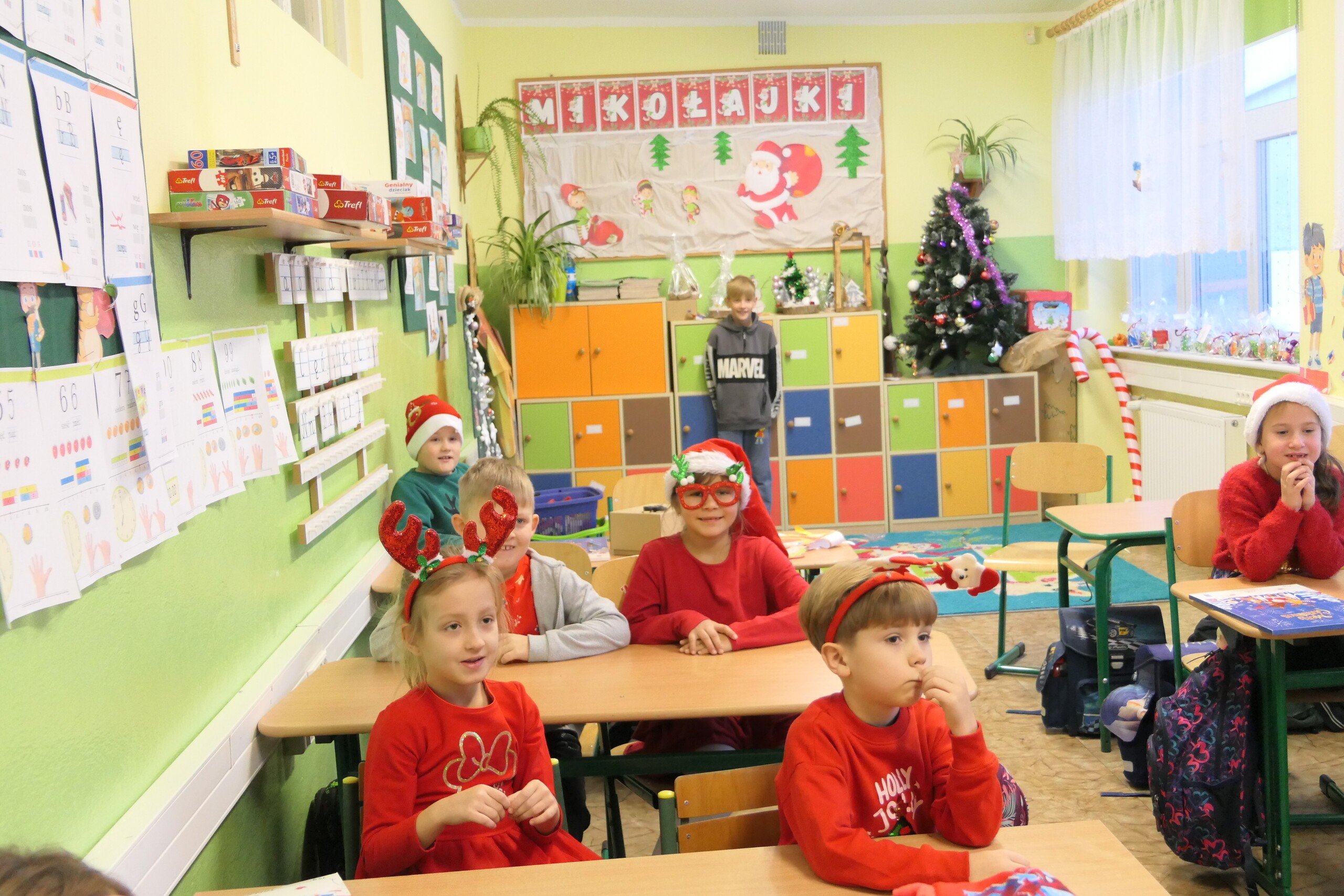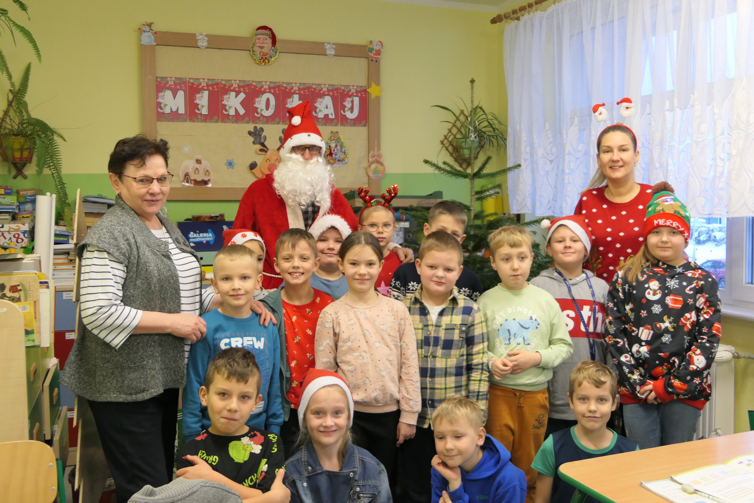 6 grudnia - to ulubiony dzień w naszej szkole. Panuje wtedy wyjątkowa atmosfera. Słychać śpiew kolęd uczniów przygotowujących się do występów na kiermaszu świątecznym. Na korytarzach można spotkać renifery i elfy, no i oczywiście nie może zabraknąć św. Mikołaja. W związku z tym, iż w naszej szkole wszystkie dzieci są grzeczne, Mikołaj obdarował każdego słodkościami. Młodsi uczniowie zaśpiewali dla niego pastorałki. Mikołaju, zapraszamy za rok!!!