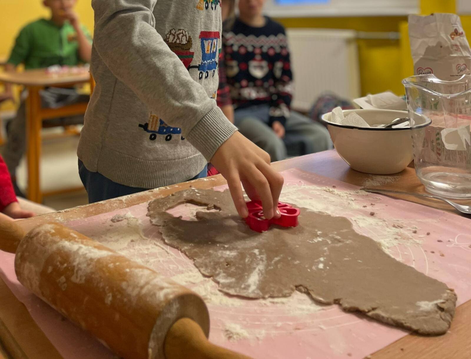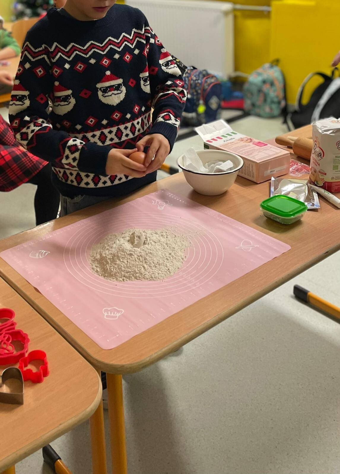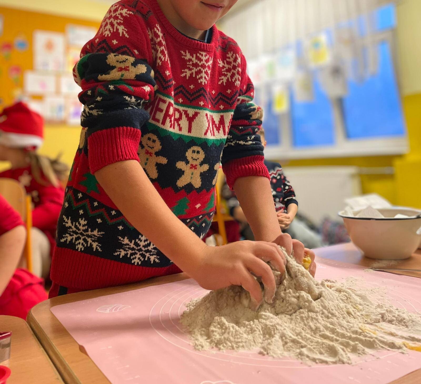 Klasa 1b świętowała Mikołajki w wyjątkowej, pełnej radości i świątecznego ciepła atmosferze. Dzieci rozpoczęły dzień od wspólnego wypieku pierniczków, a zapach korzennych przypraw szybko wypełnił całą salę. Po upieczeniu uczniowie z zapałem przystąpili do ich dekorowania. Następnie pierwszoklasiści wykonali własnoręczne bombki, w które włożyli wiele serca i pomysłowości. Gotowe ozdoby zawisły później na klasowej choince, którą dzieci wspólnie przystroiły, nadając jej niepowtarzalnego charakteru. To był magiczny i pełen uśmiechu dzień, który pozwolił wszystkim poczuć zbliżające się święta i wprowadził klasę 1b w piękny, świąteczny nastrój.