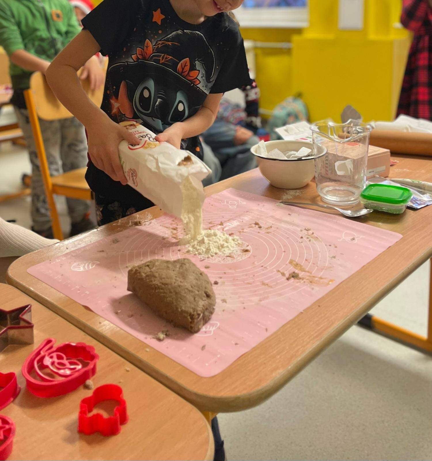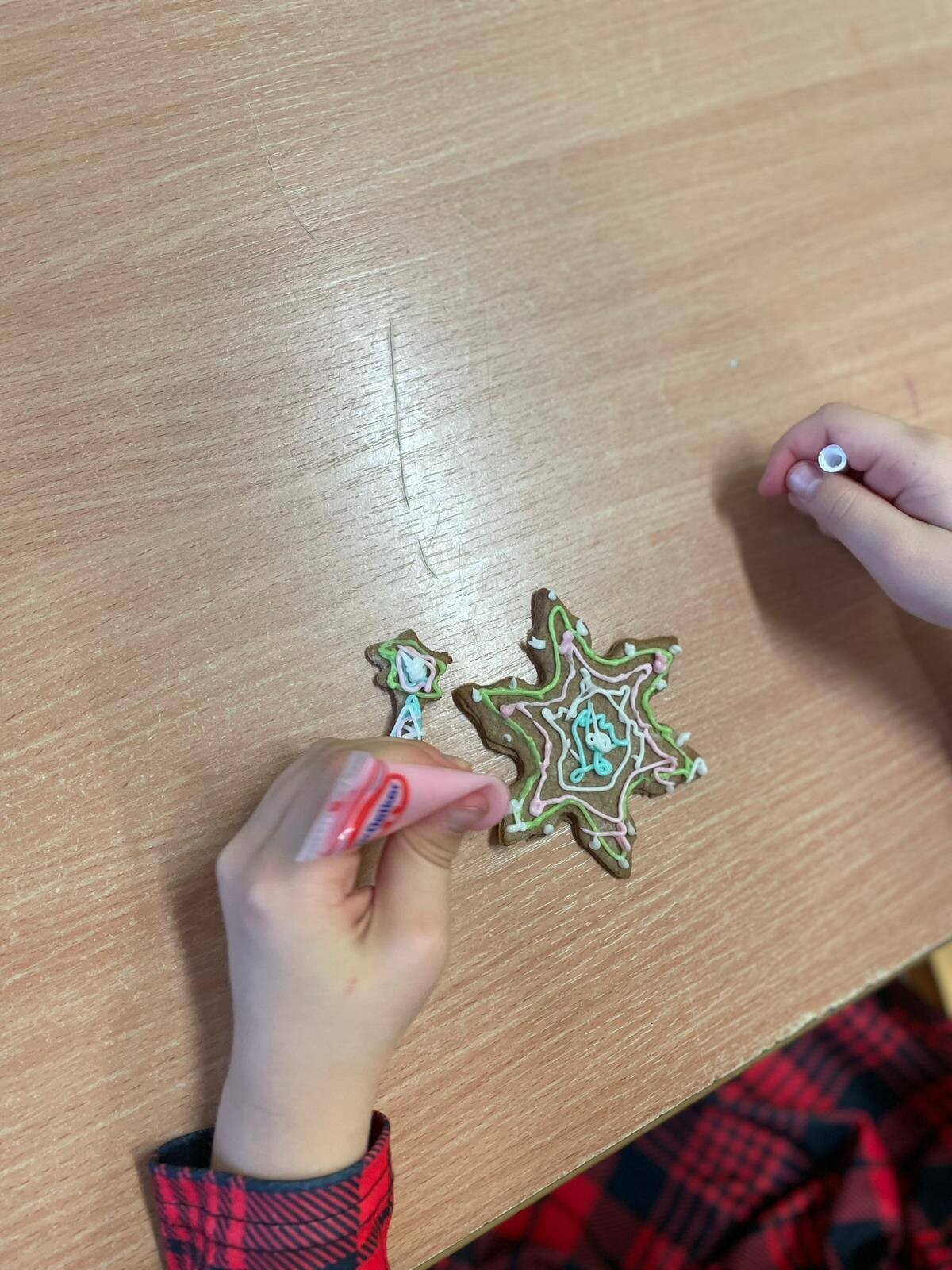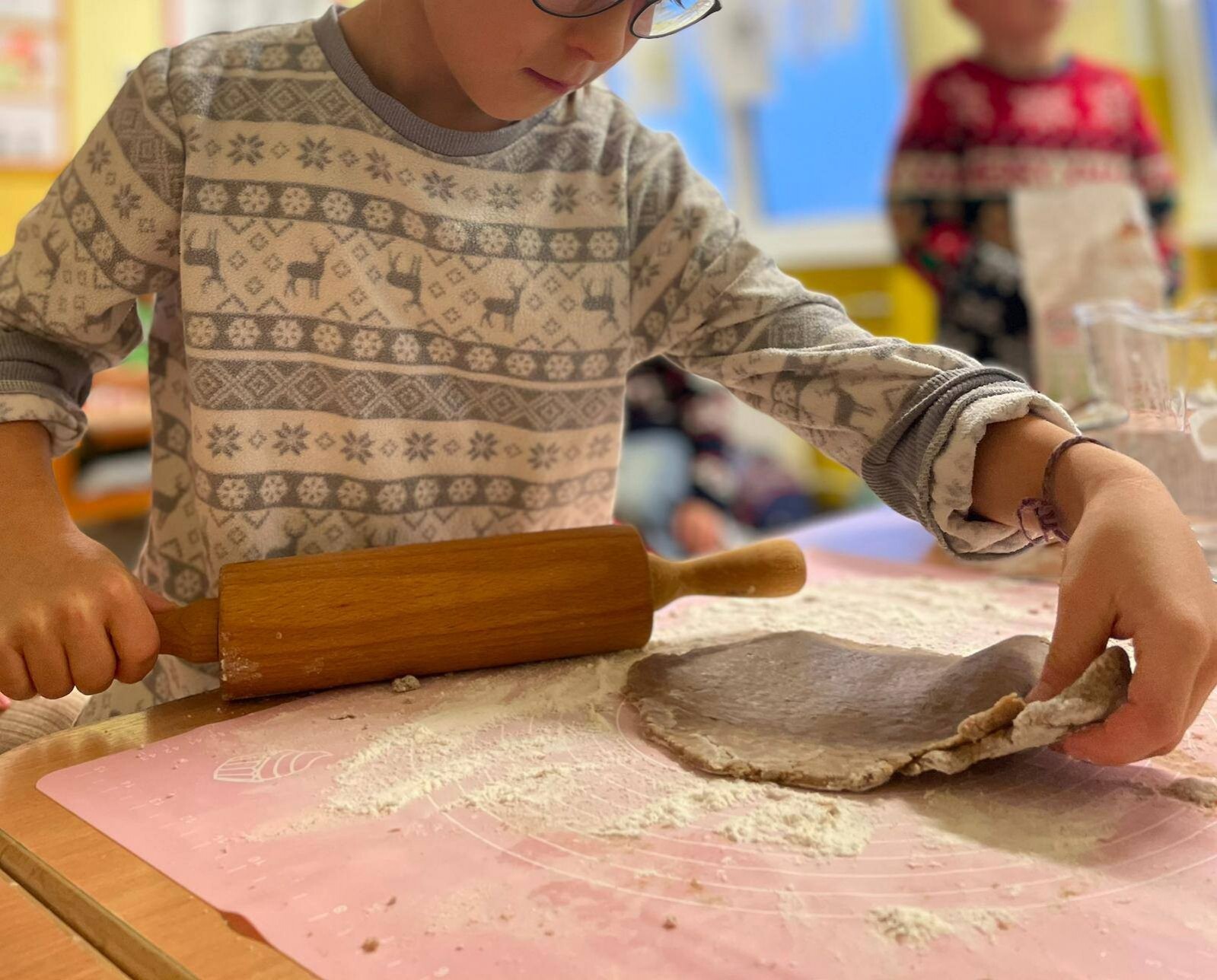 Klasa 1b świętowała Mikołajki w wyjątkowej, pełnej radości i świątecznego ciepła atmosferze. Dzieci rozpoczęły dzień od wspólnego wypieku pierniczków, a zapach korzennych przypraw szybko wypełnił całą salę. Po upieczeniu uczniowie z zapałem przystąpili do ich dekorowania. Następnie pierwszoklasiści wykonali własnoręczne bombki, w które włożyli wiele serca i pomysłowości. Gotowe ozdoby zawisły później na klasowej choince, którą dzieci wspólnie przystroiły, nadając jej niepowtarzalnego charakteru. To był magiczny i pełen uśmiechu dzień, który pozwolił wszystkim poczuć zbliżające się święta i wprowadził klasę 1b w piękny, świąteczny nastrój.