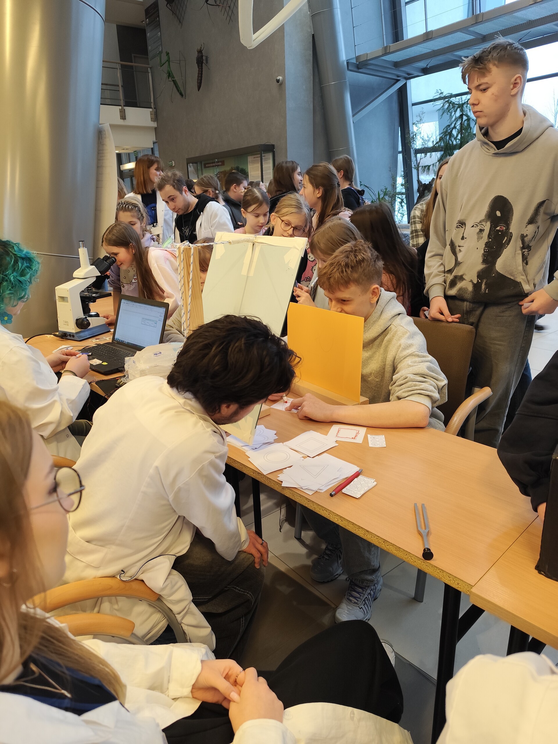 Wyjazd uczniów na Noc Biologów na Uniwersytecie Gdańskim. Uczniowie naszej szkoły wzięli udział w ogólnopolskim wydarzeniu popularnonaukowym „Noc Biologów”, które odbyło się na Uniwersytecie Gdańskim. Inicjatywa ta ma na celu popularyzację nauk biologicznych oraz przybliżenie młodzieży świata akademickiego poprzez bezpośredni kontakt z nauką. Podczas wizyty uczniowie uczestniczyli w warsztatach, pokazach laboratoryjnych prowadzonych przez pracowników naukowych i studentów uczelni. Program obejmował zagadnienia z zakresu biologii, biotechnologii, ochrony środowiska oraz nauk medycznych, prezentowane w przystępnej i atrakcyjnej formie. Wyjazd był doskonałą okazją do poszerzenia wiedzy i rozwijania zainteresowań przyrodniczych. Uczniowie z dużym zaangażowaniem uczestniczyli w zajęciach i mieli możliwość samodzielnego wykonywania prostych doświadczeń. Udział w Nocy Biologów stanowił wartościowe uzupełnienie szkolnej edukacji oraz inspirację do dalszego zgłębiania nauk przyrodniczych. Wyjazd zorganizowały: pani Karolina Naczk i Justyna Rosik