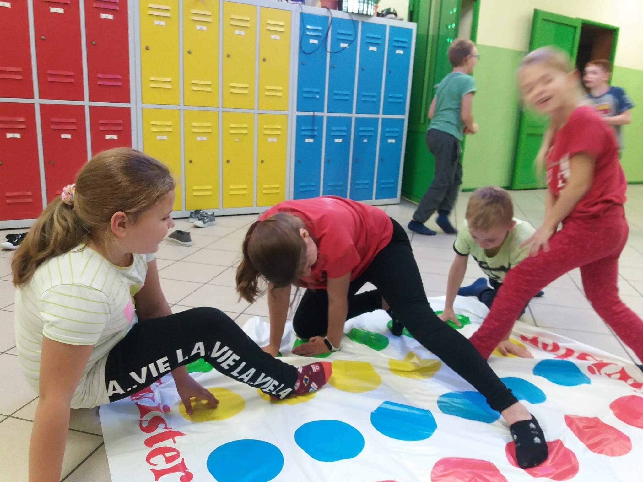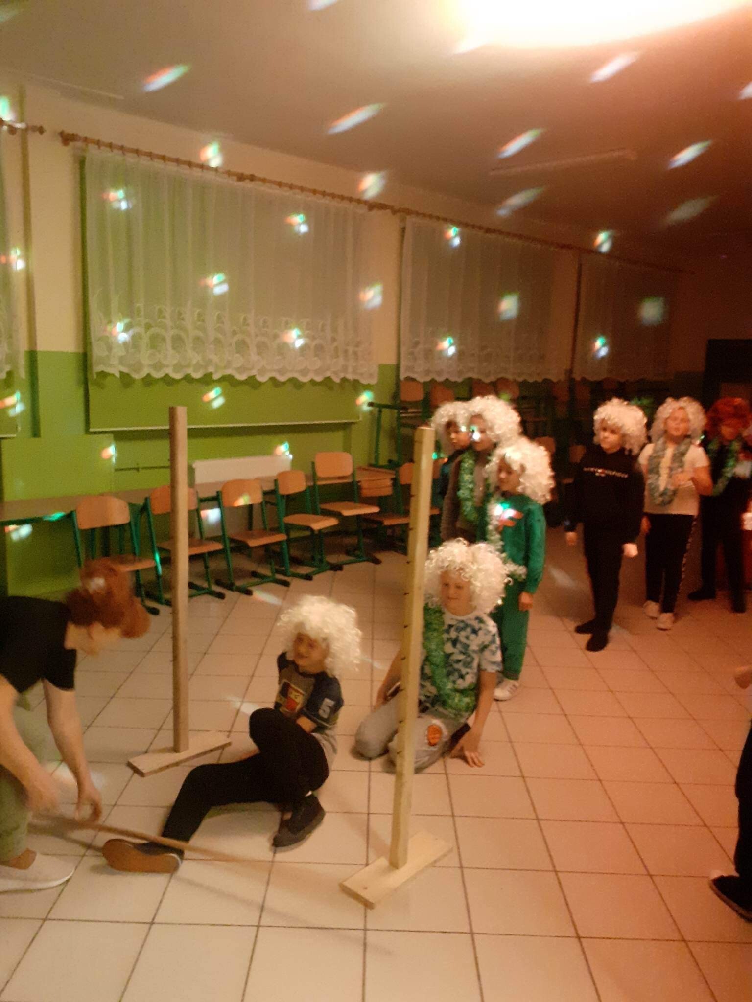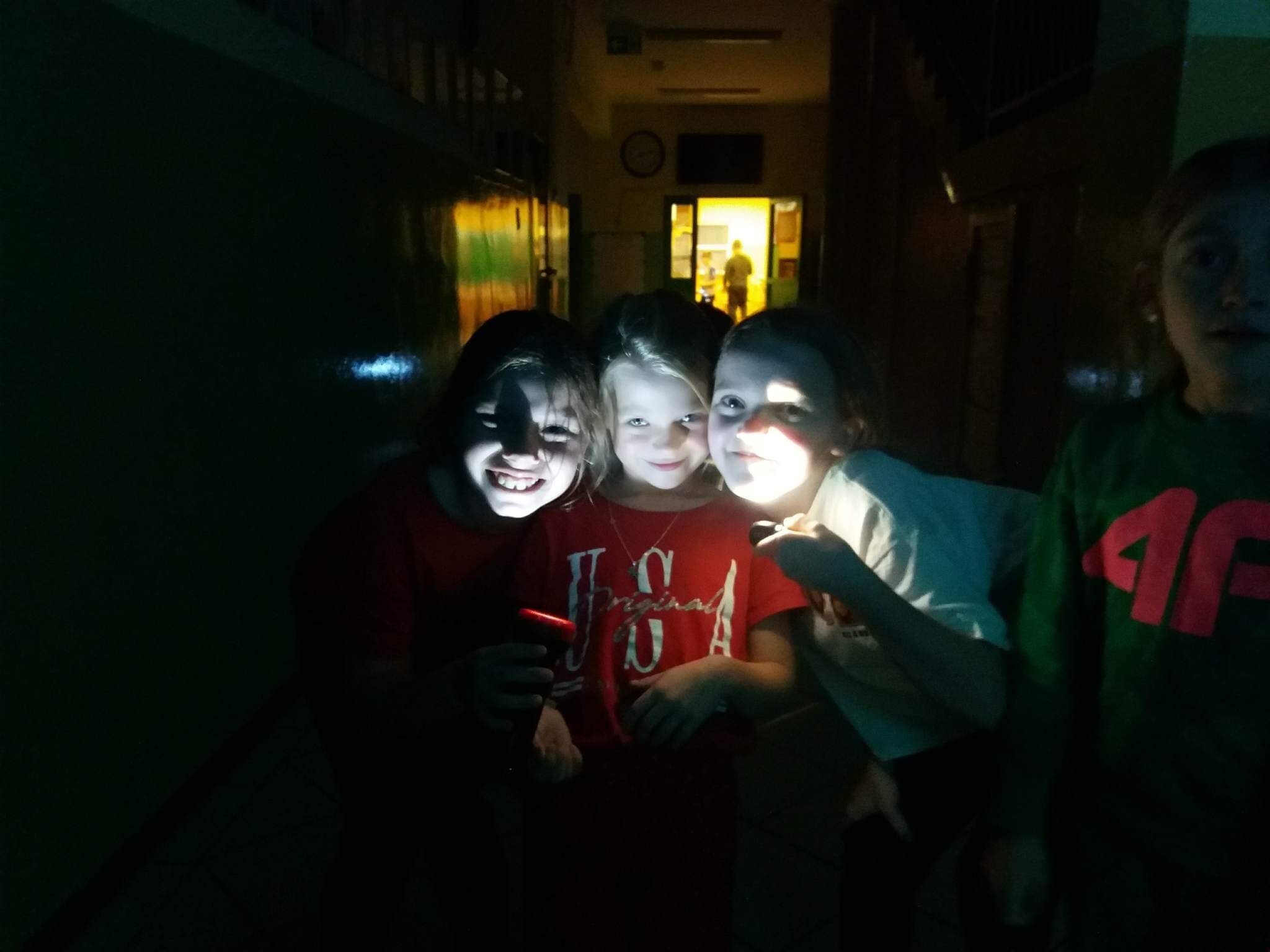 Wieczór i noc obfitowały w wiele atrakcji: były tańce i harce przy muzyce, zadanie detektywistyczne z latarkami, skręcanie balonów, zabawa w chowanego, a na sali gimnastycznej rozgrywały się wielce emocjonujące mecze. Dla wszystkich na kolację zaserwowana została smakowita pizza. Tuż po północy rozpoczął się seans filmowy. Ostatnią rzeczą, którą uczniowie chcieli robić w czasie nocowania było .. spanie. Ale jednak nawet najwytrwalszych w końcu sen zmorzył. To była intensywna noc, a rano.... porządki, sprzątnie i wszyscy podążyli do domu, aby .... odespać. Na szczęście była sobota, a w zapasie jeszcze niedziela. Niektórzy już się nie mogą doczekać, kiedy będzie następne nocowanie w szkole.